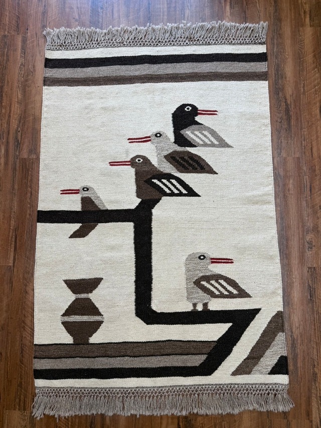 新品 ペルシャ絨毯 手織り キリム 草木染め ウール 鳥