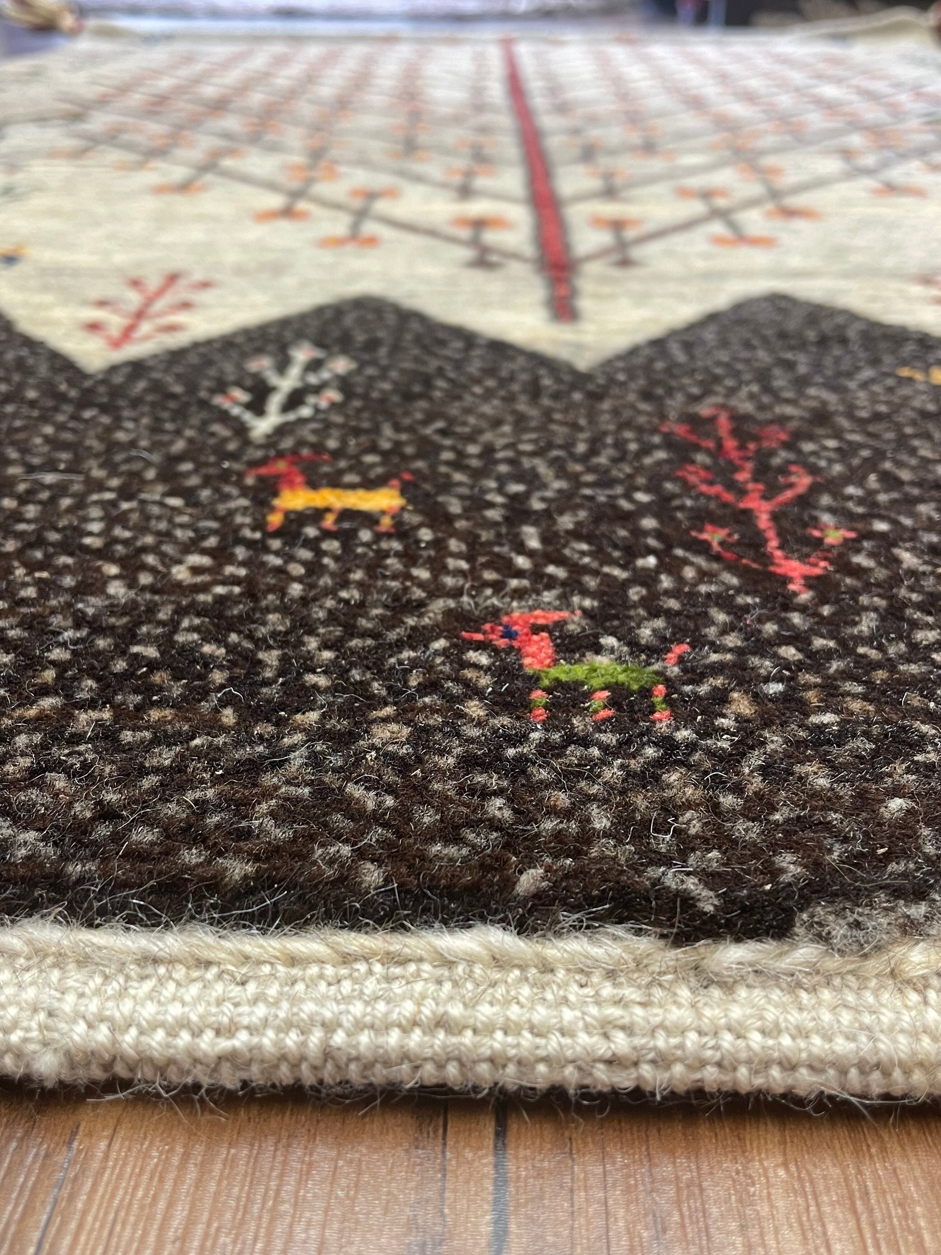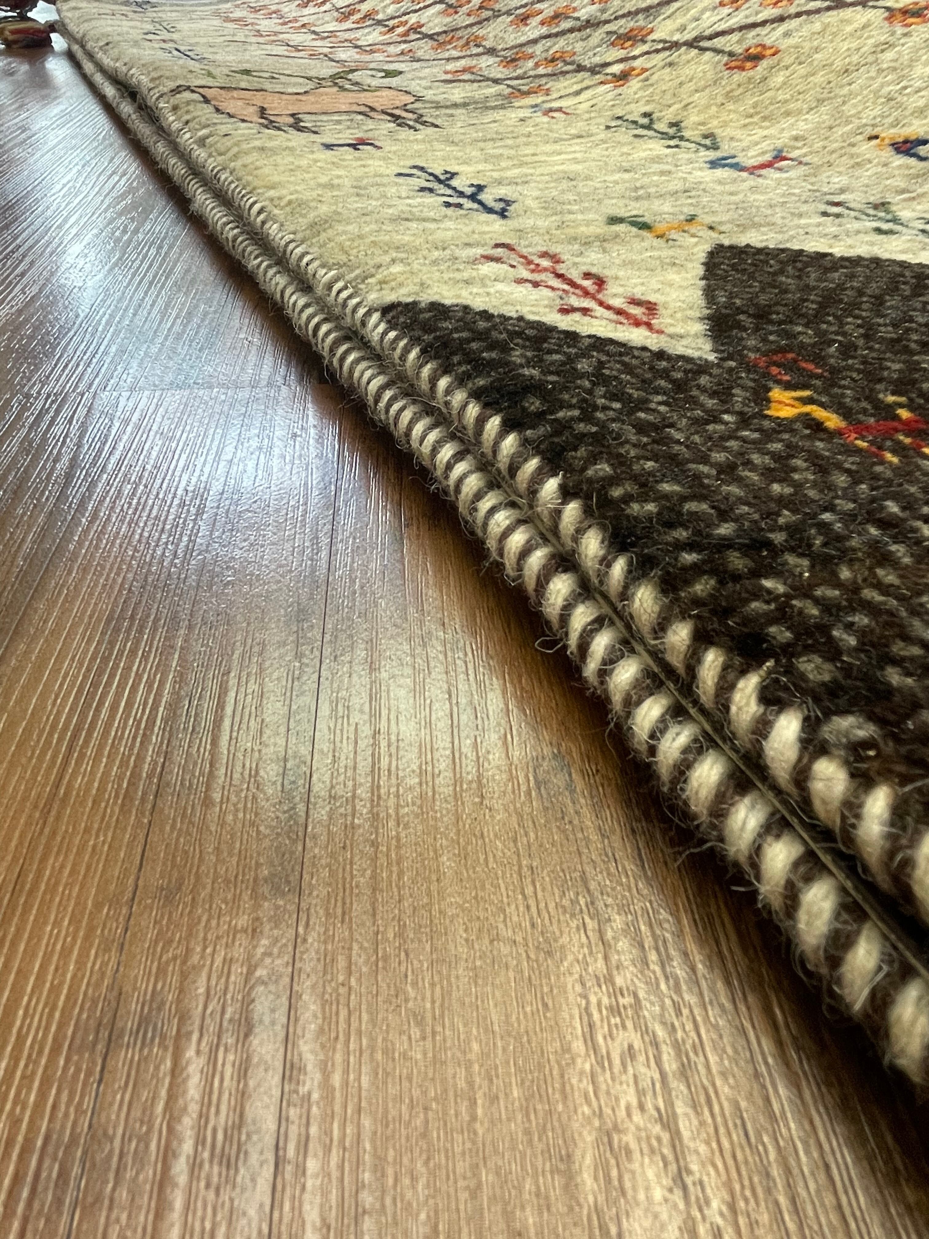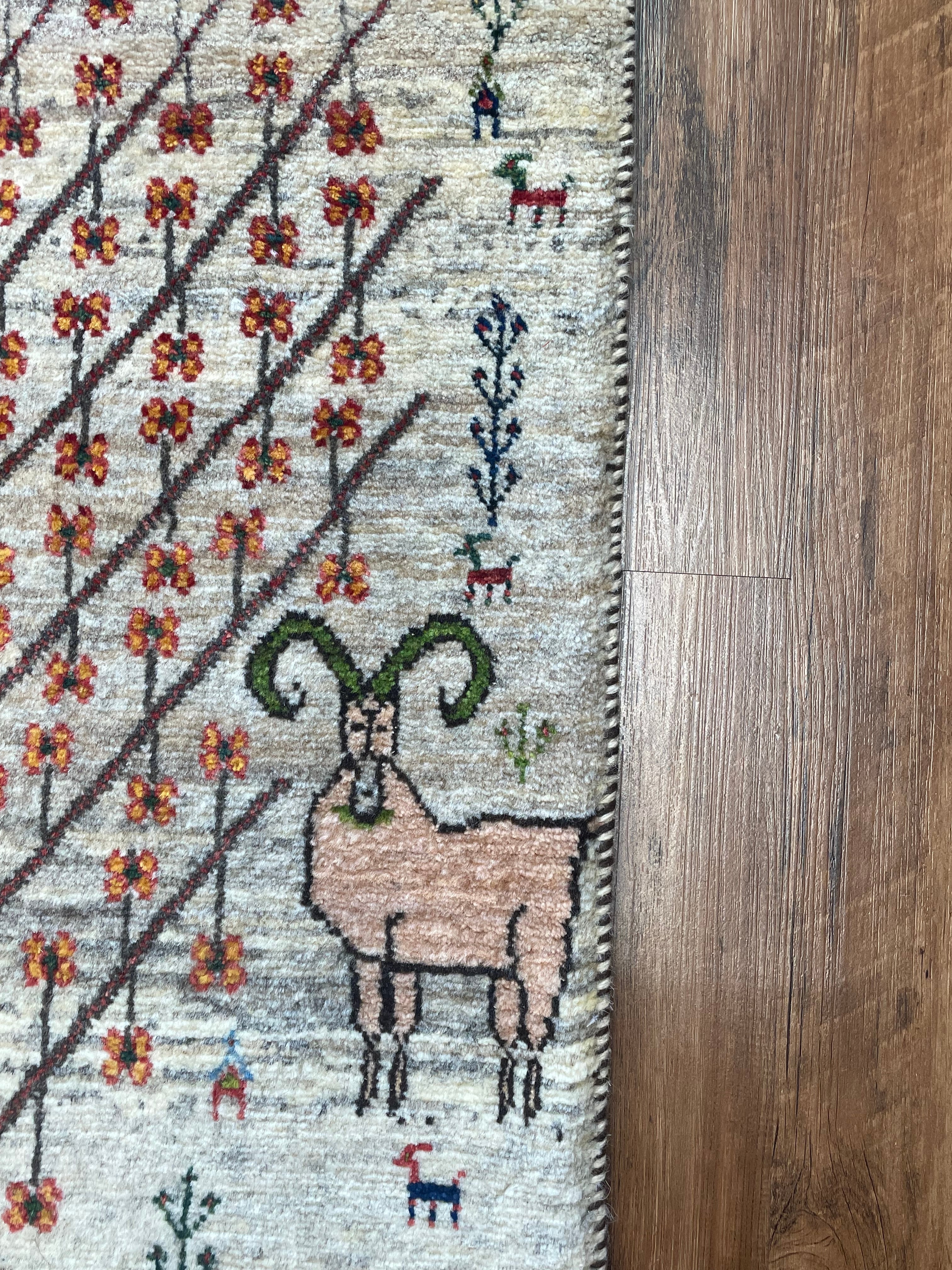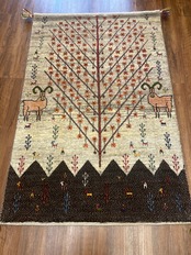 新品 ペルシャ絨毯 手織り ギャッベ キャシュクリ ナチュラル 生命の木 山羊