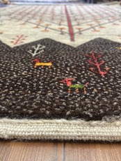 イランのギャッべの特徴は遊牧民の暮らしている地域は夏冬の温度差が大きい事に加え乾燥地帯であるため昼夜の温度差も大きい環境で育った羊の毛を刈り紡いで使っているので良質なウールで出来ていて手触りが良いです