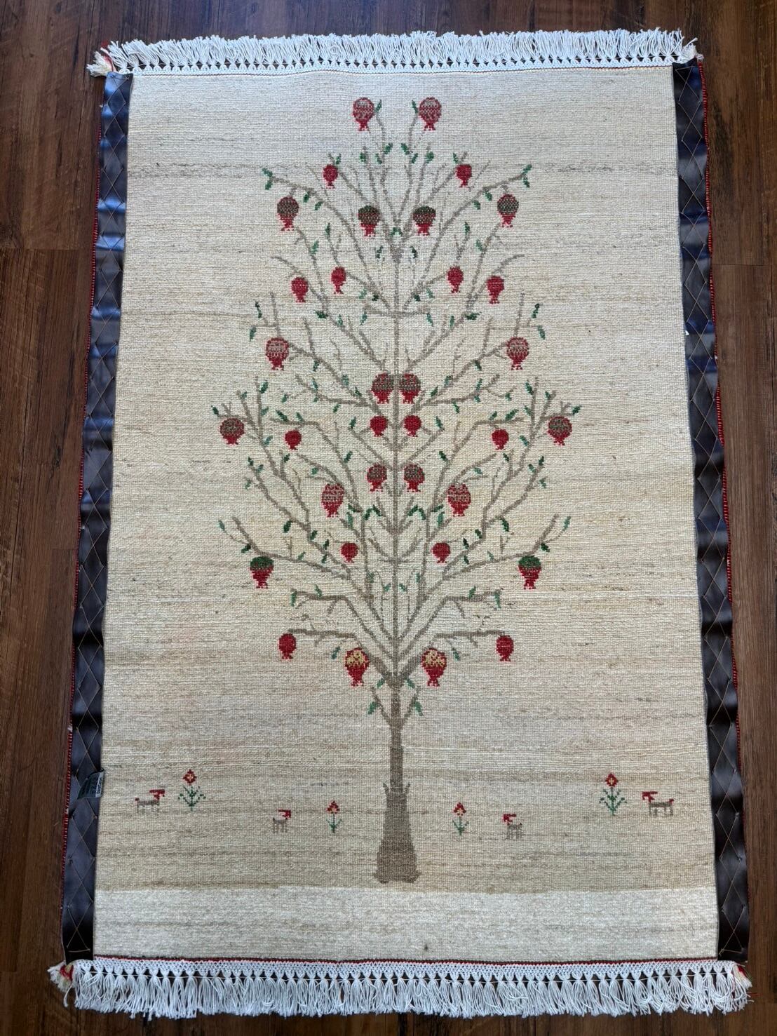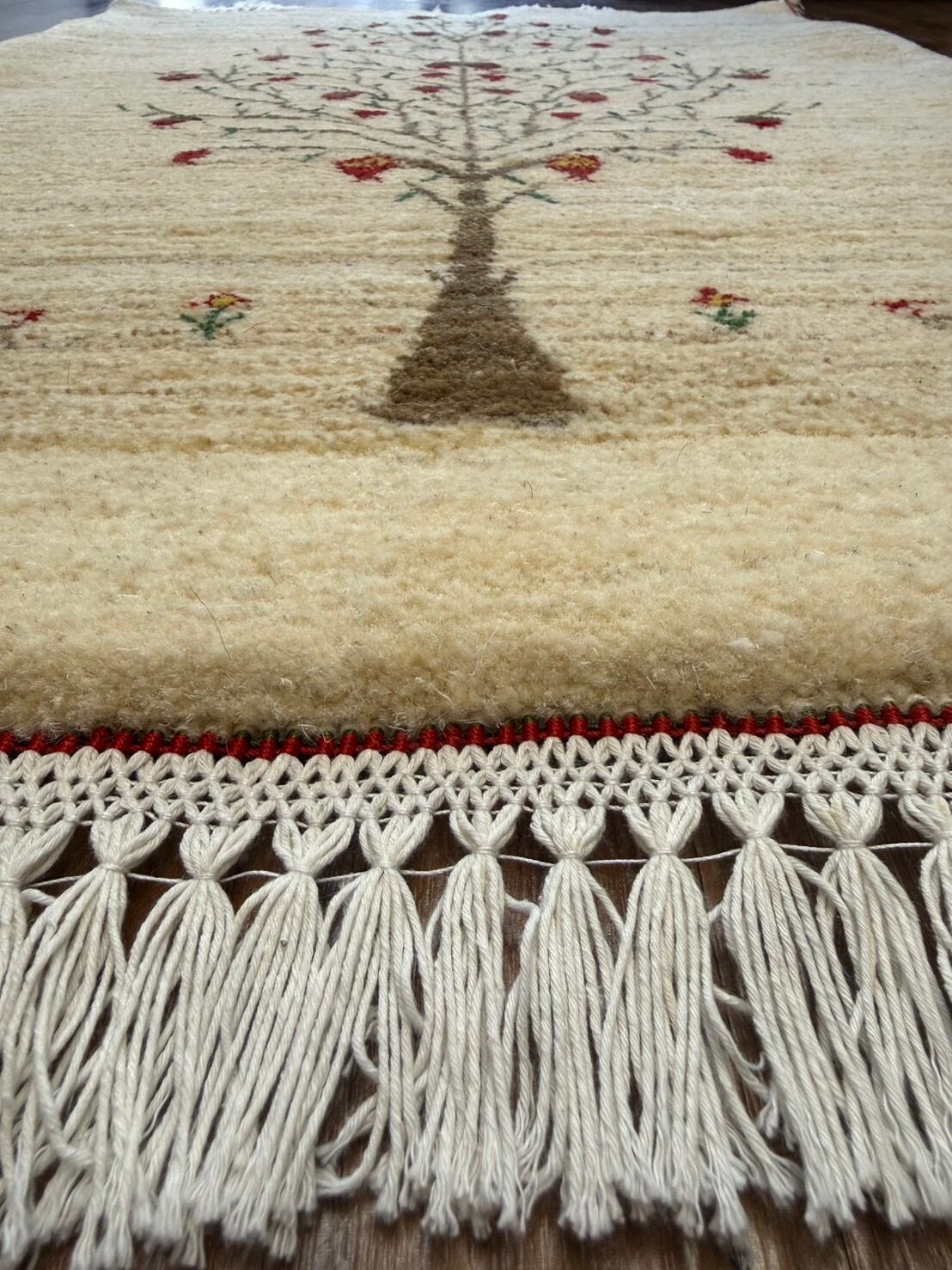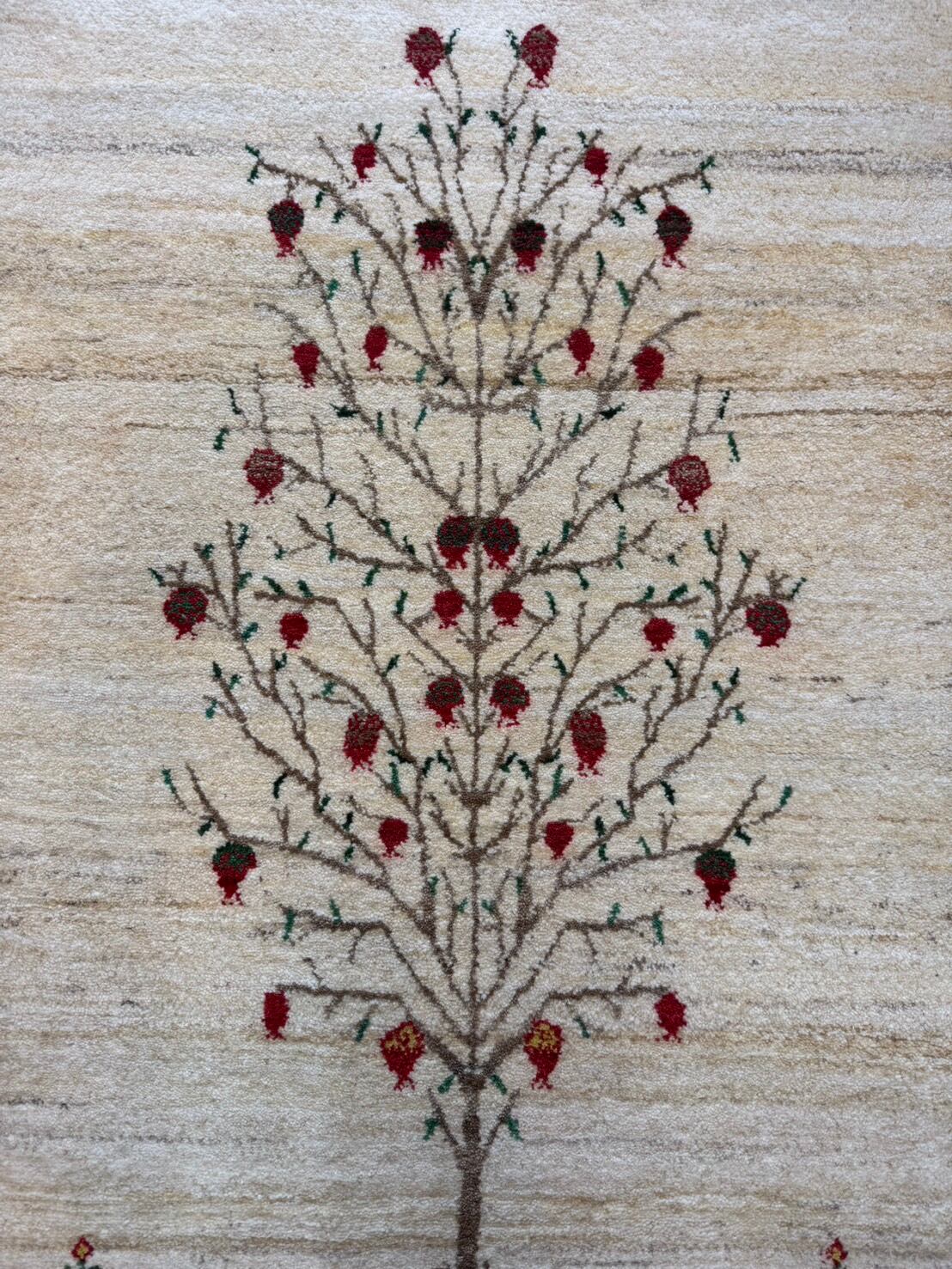 新品 ペルシャ絨毯 手織り リズ ギャッベ ナチュラル ザクロの木