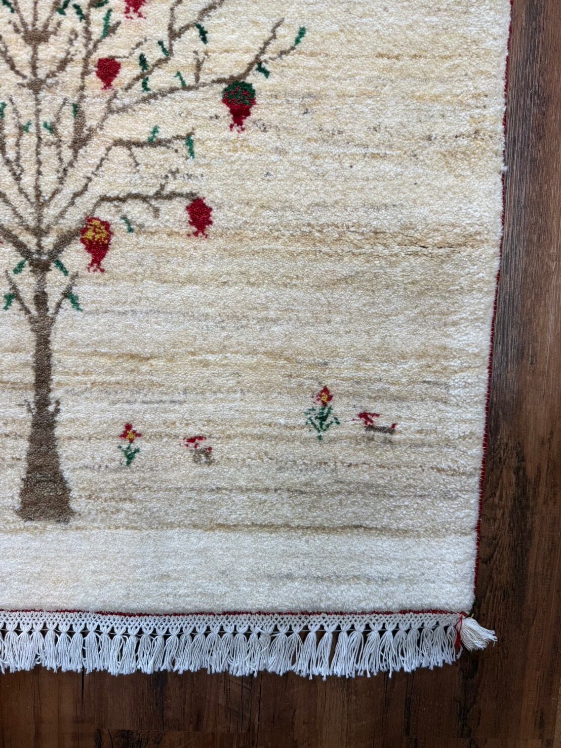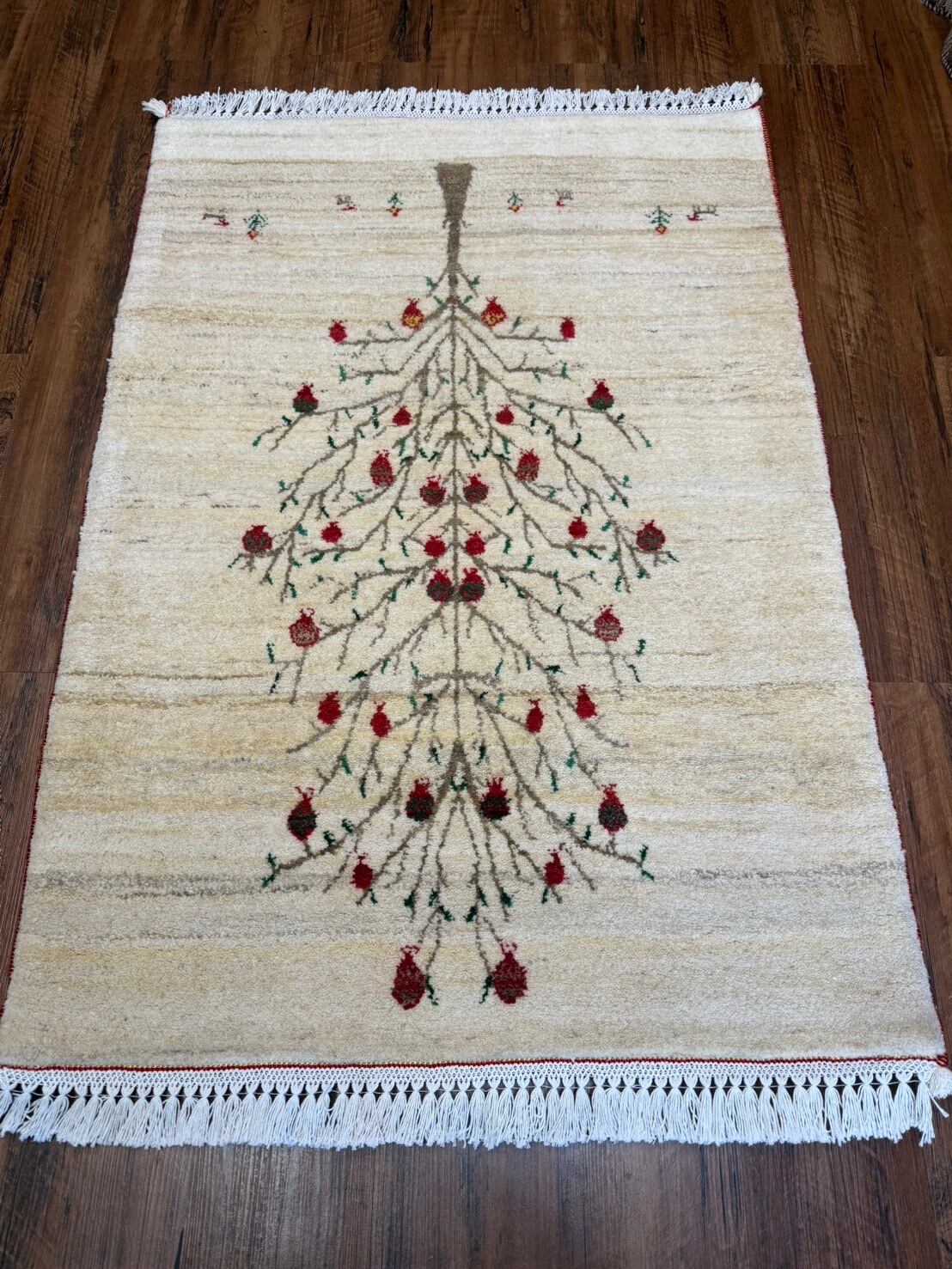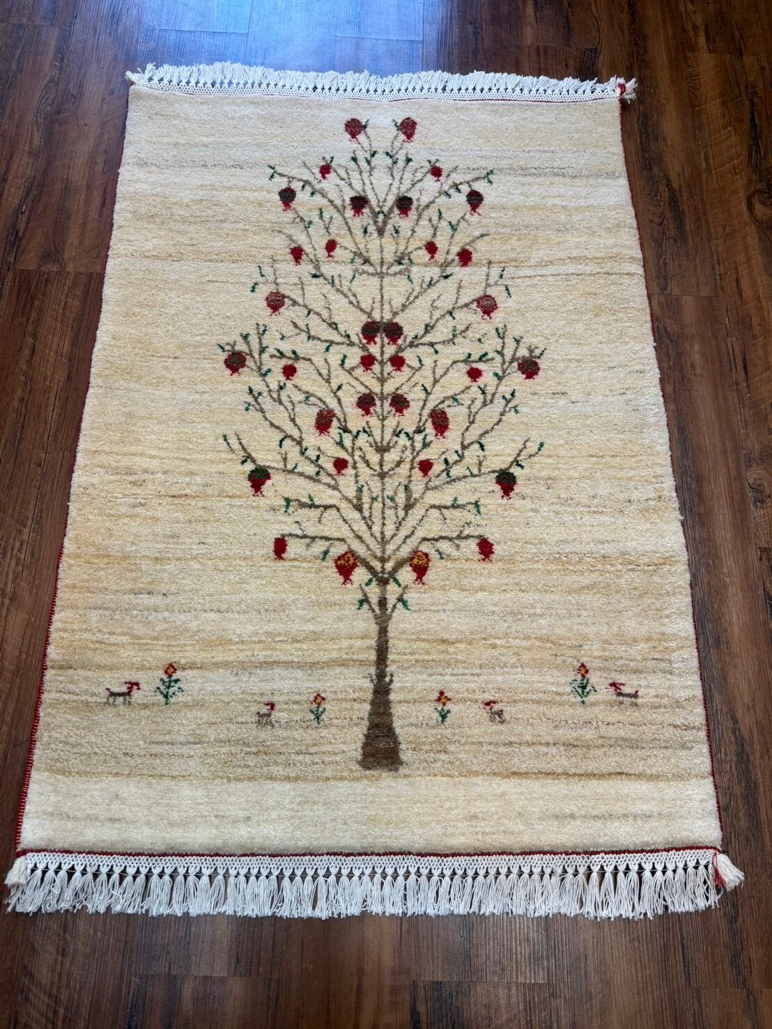 新品 ペルシャ絨毯 手織り リズ ギャッベ ナチュラル ザクロの木