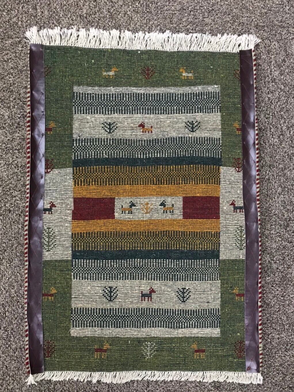 新品 ペルシャ絨毯 手織り ギャッベ 88cm×63cm 山羊 生命の木