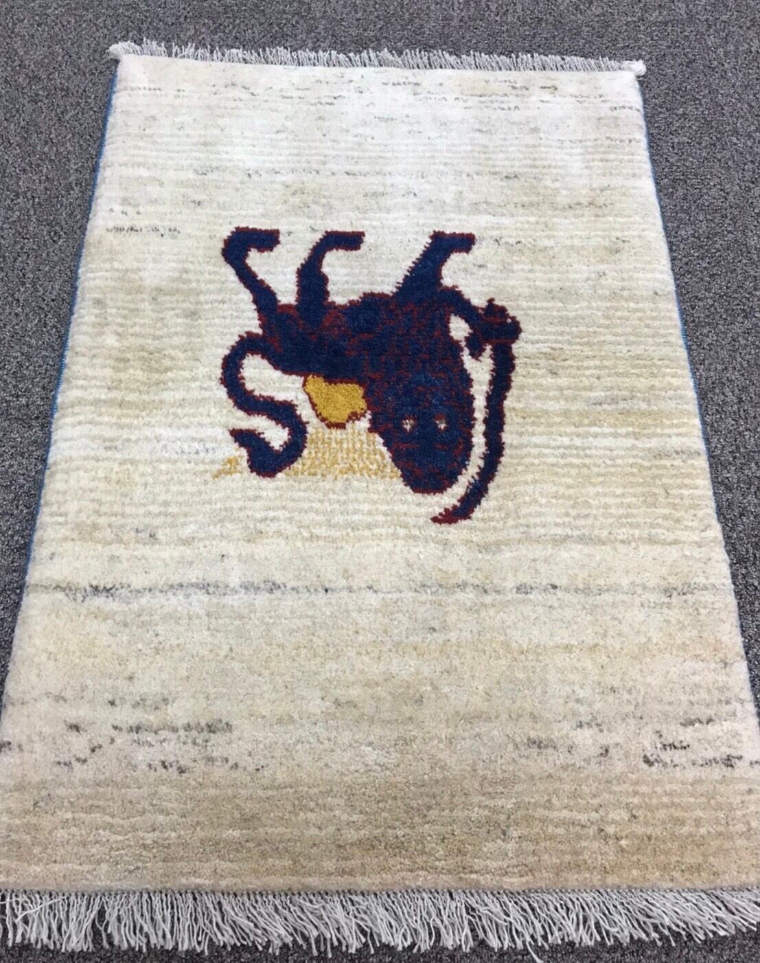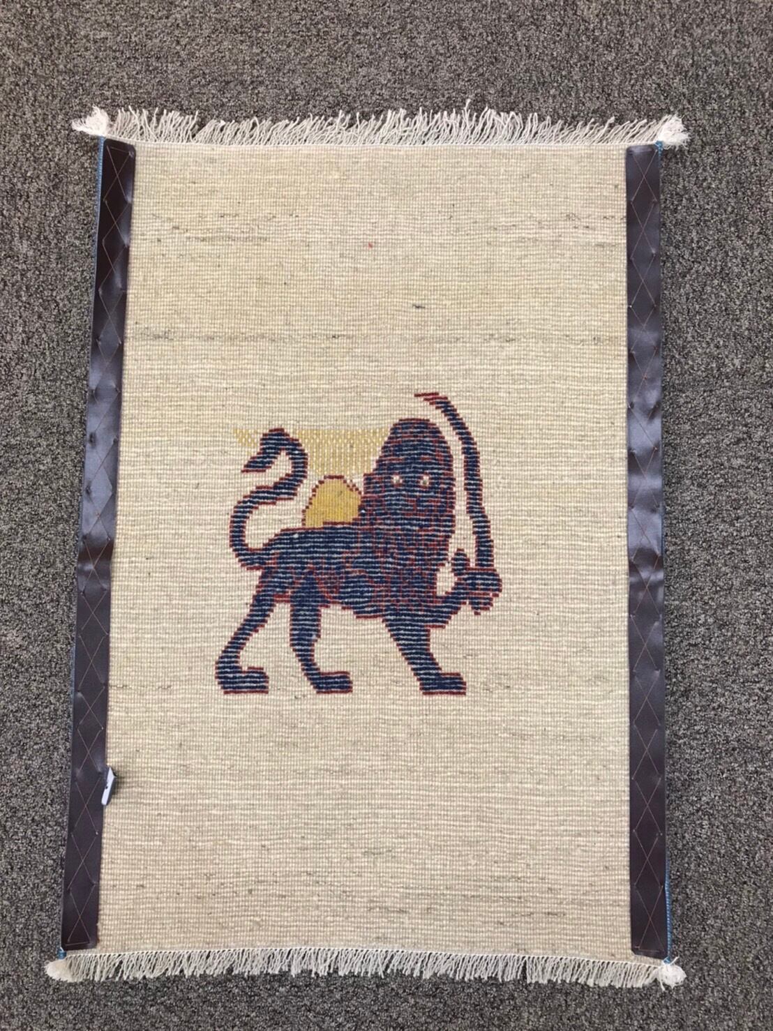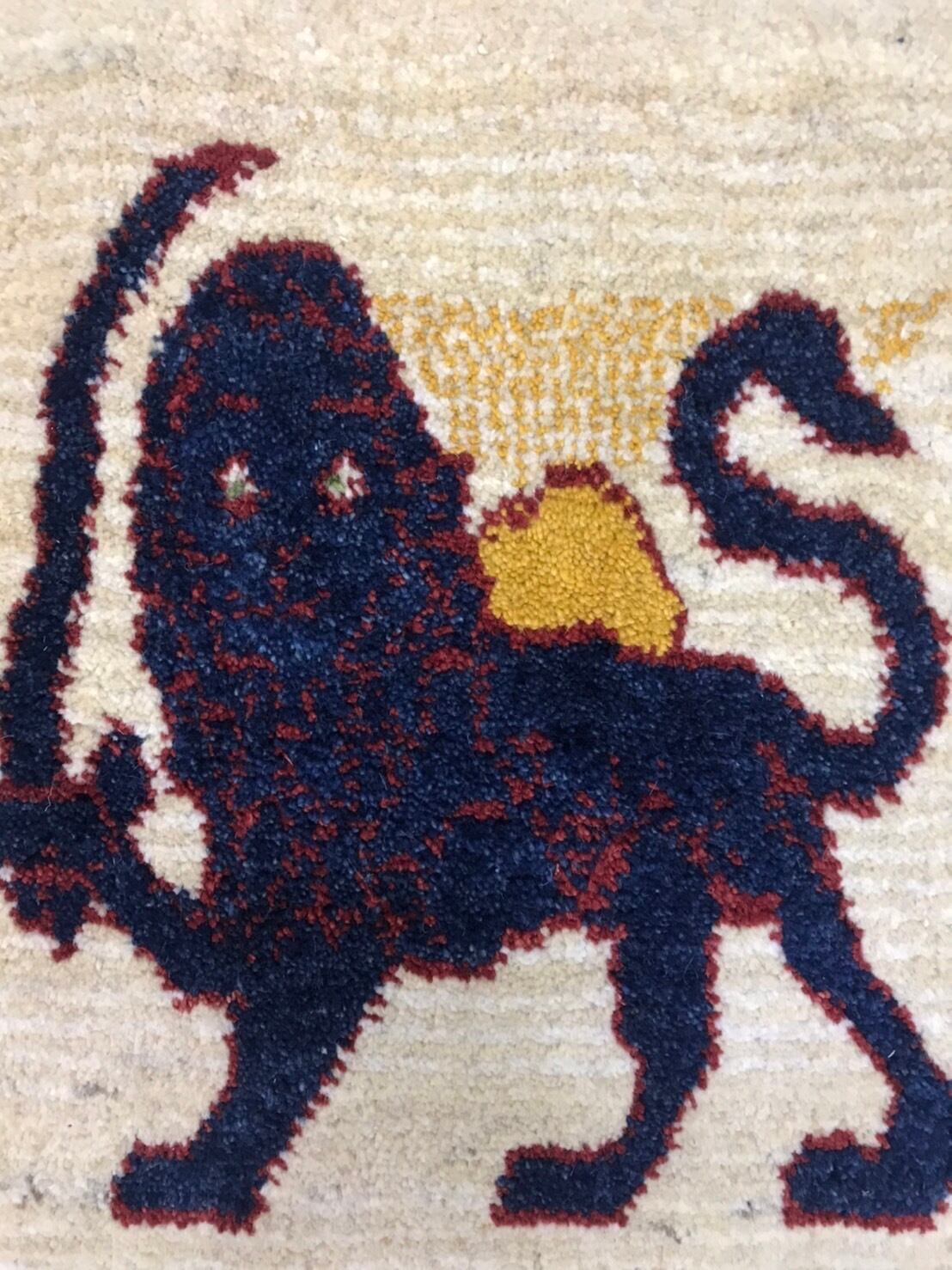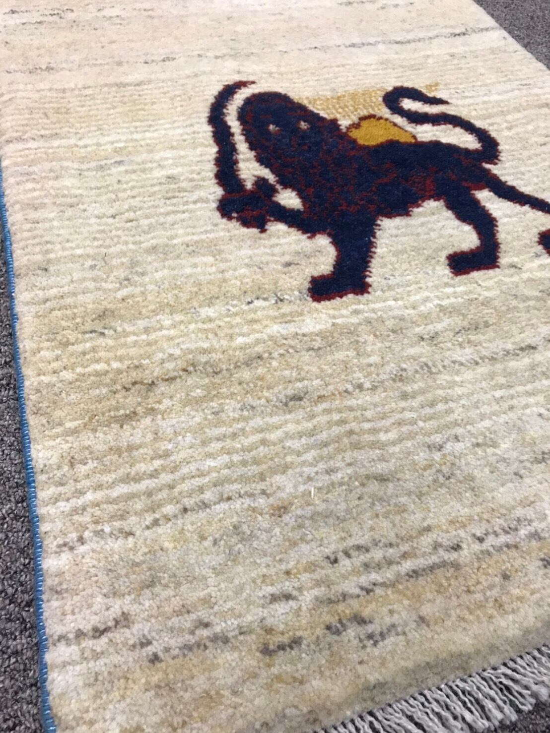 新品 ペルシャ絨毯 手織り ギャッベ 90cm×65cm ライオン