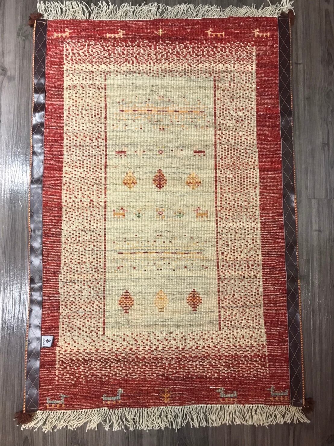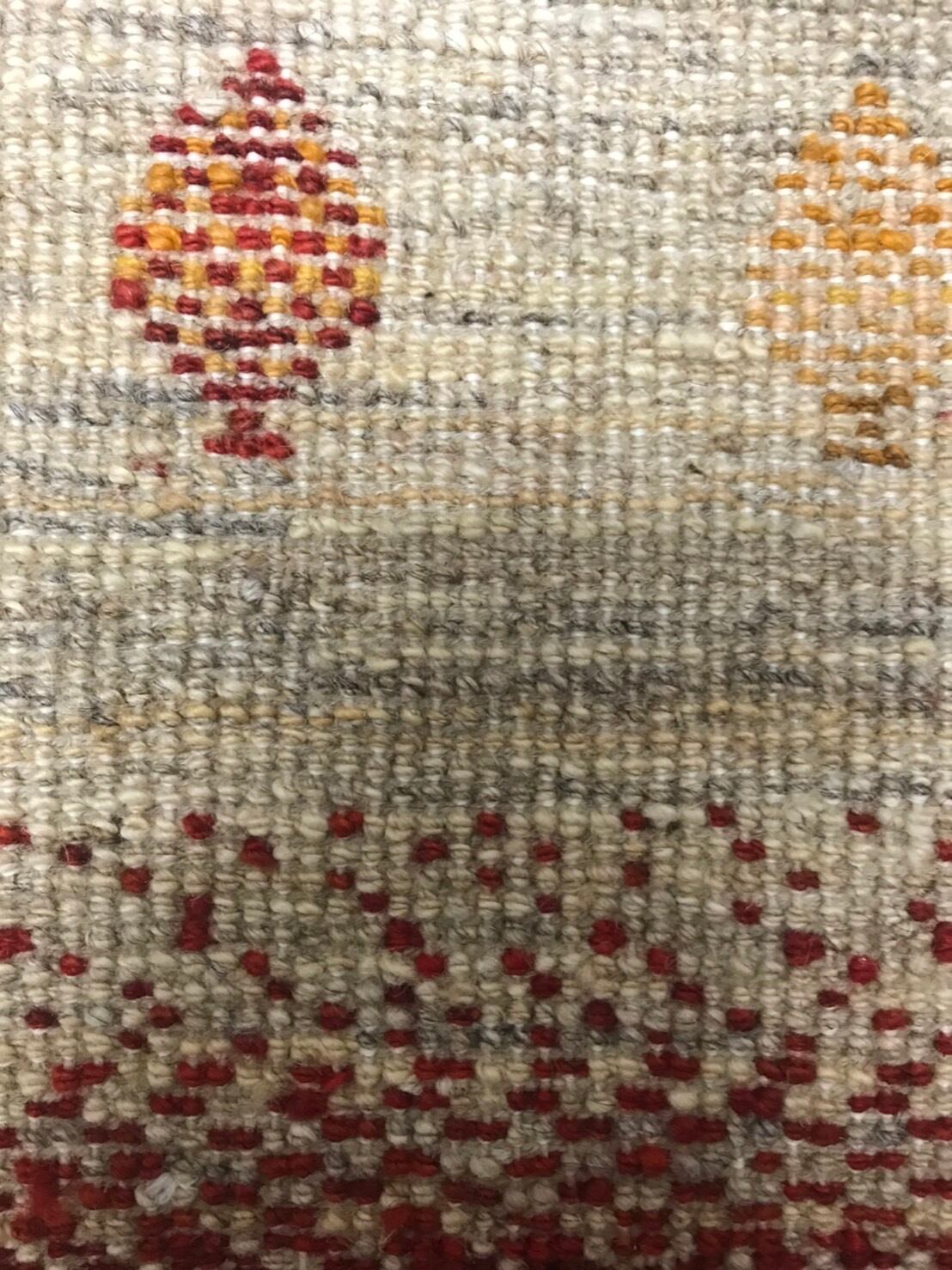 ナチュラルなベージュやクリーム色系(無染色の羊さんの毛の色)や赤色(西洋茜の根)が印象的なギャッベです。