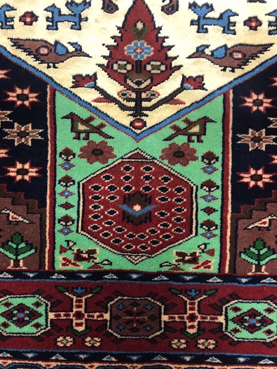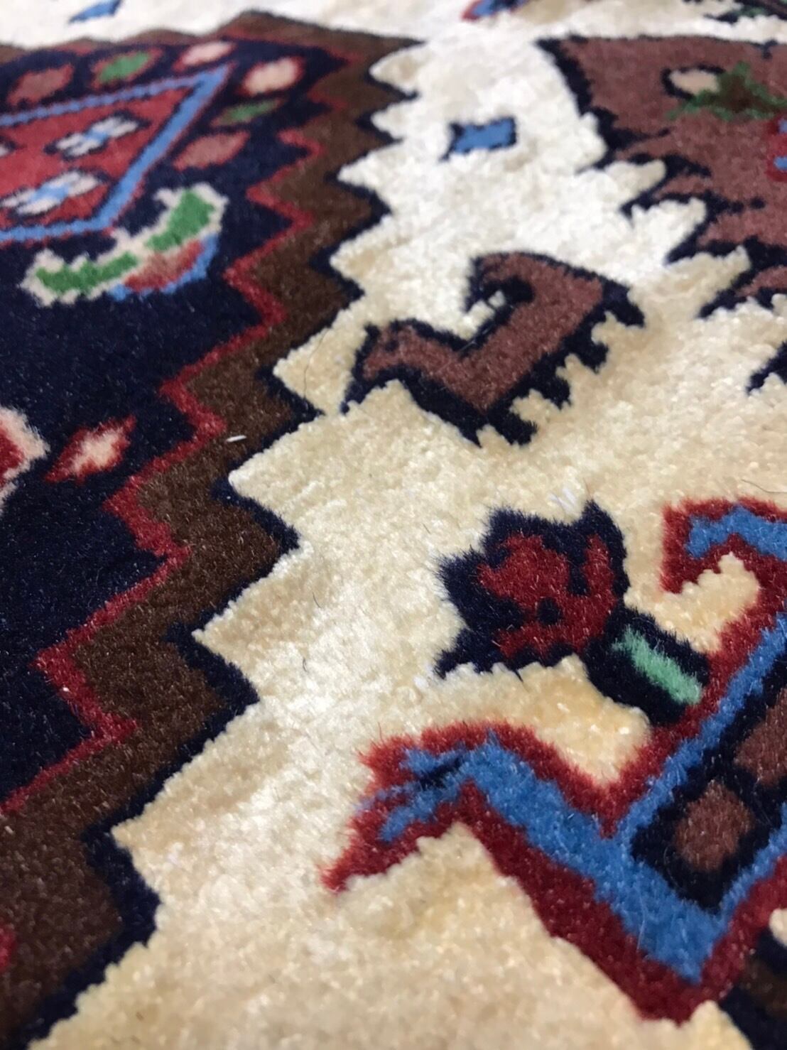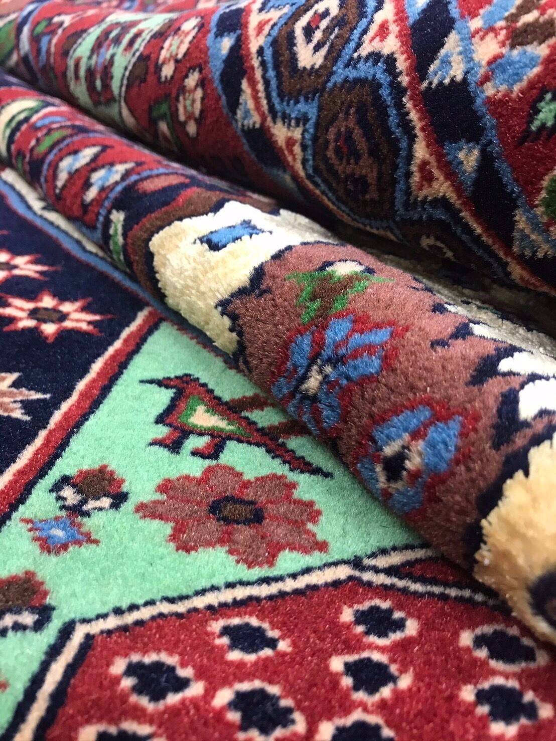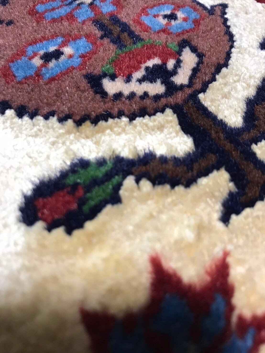 経糸やパイルにシルクを使っているため、とても柔らかくしなやかでツヤ感があり、見る方向や角度で違った色味や明るさが楽しめる絨毯です。(画像2・3枚目又は4・5枚目参照)