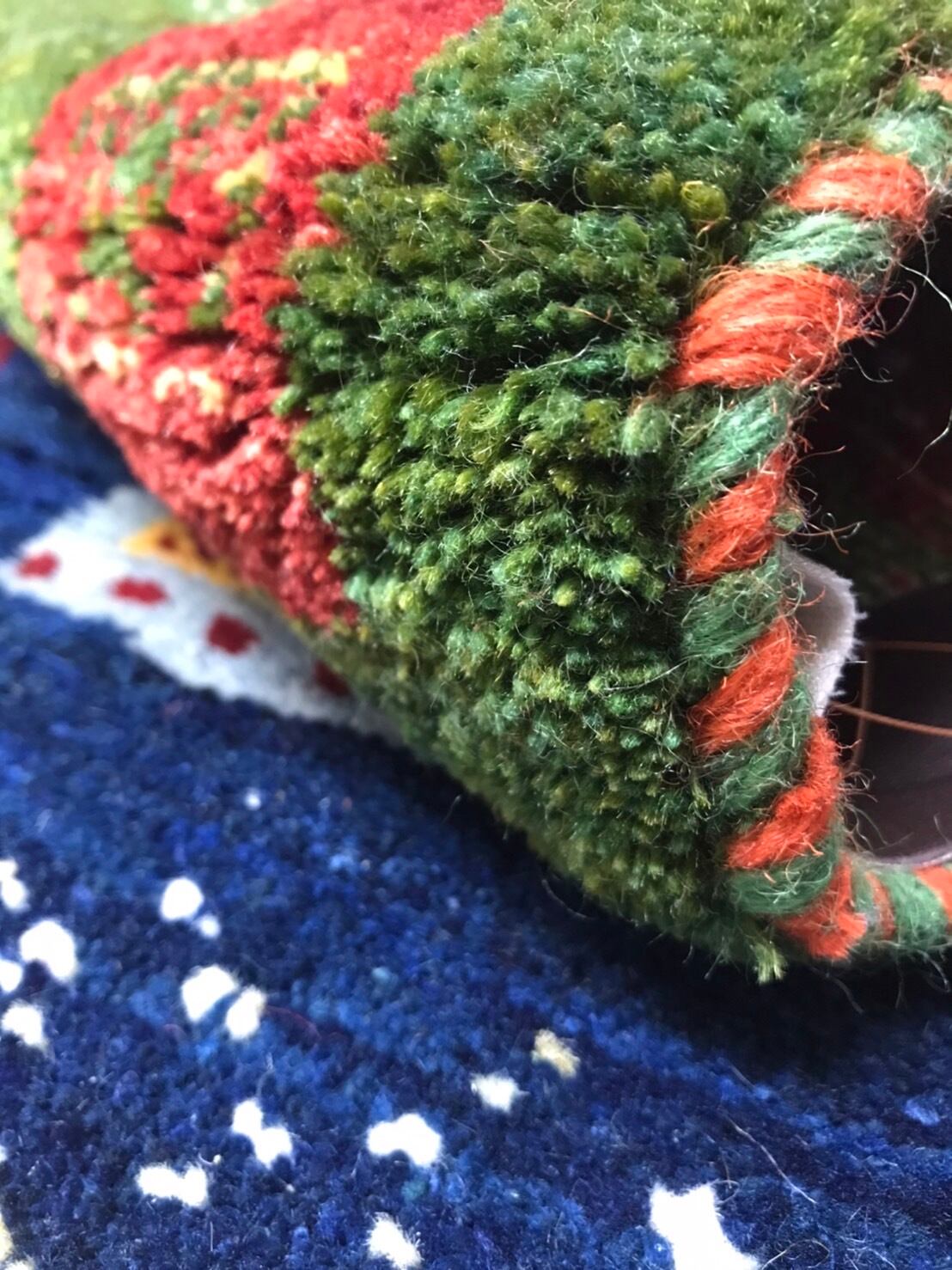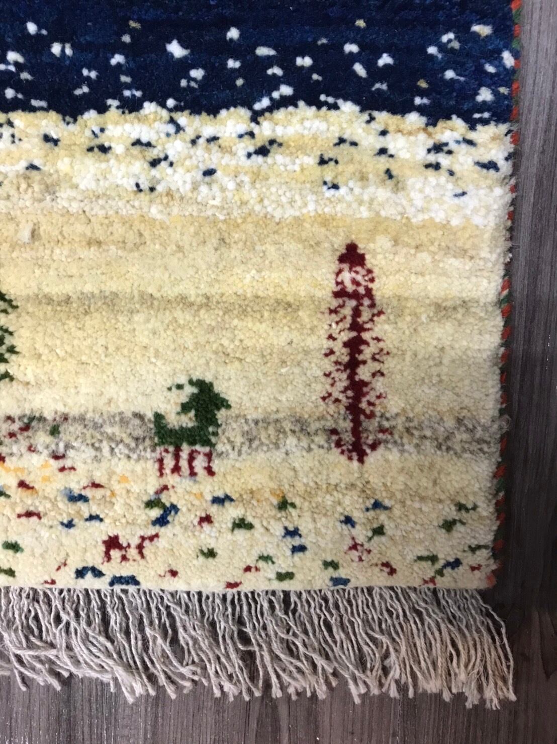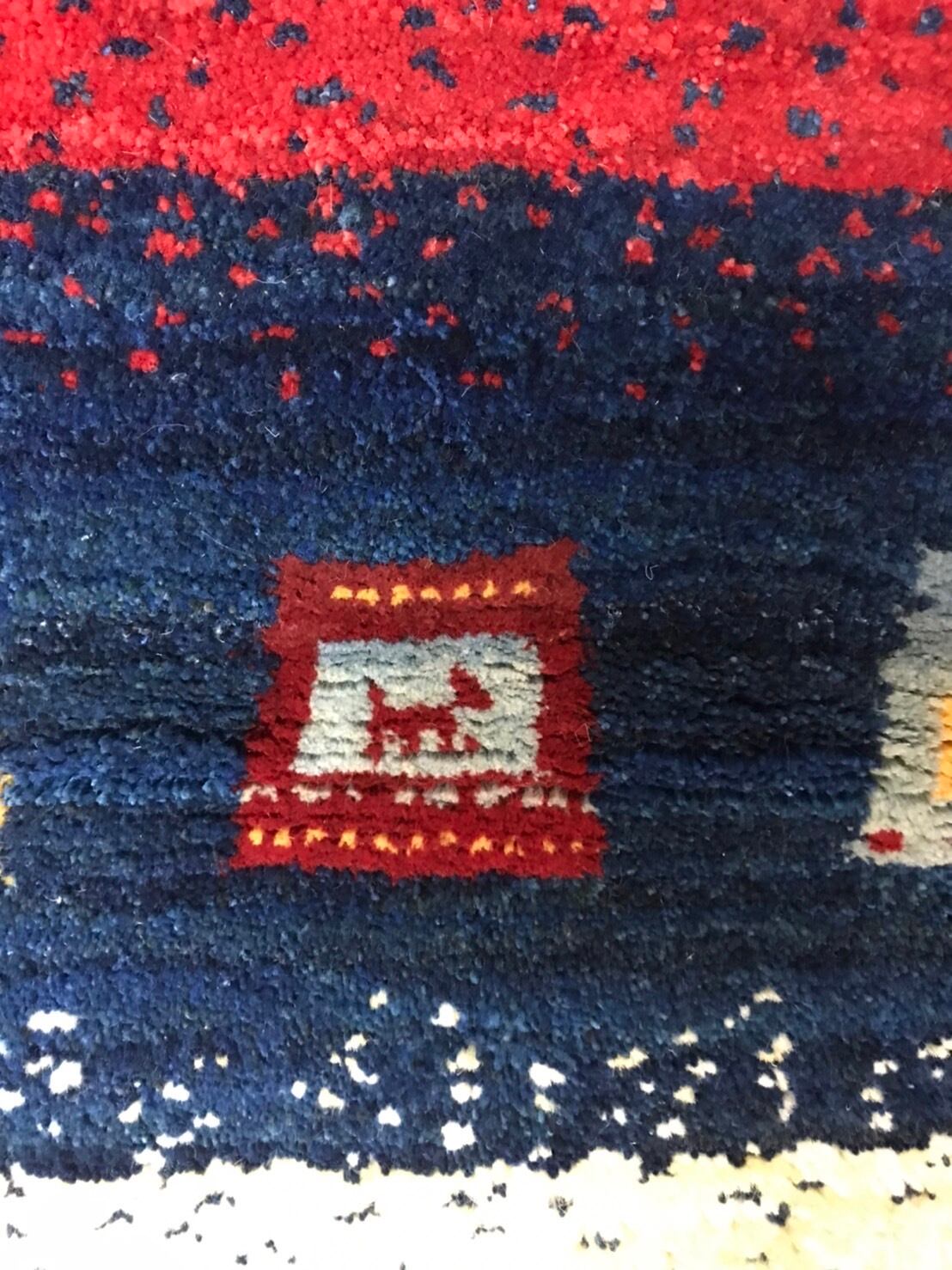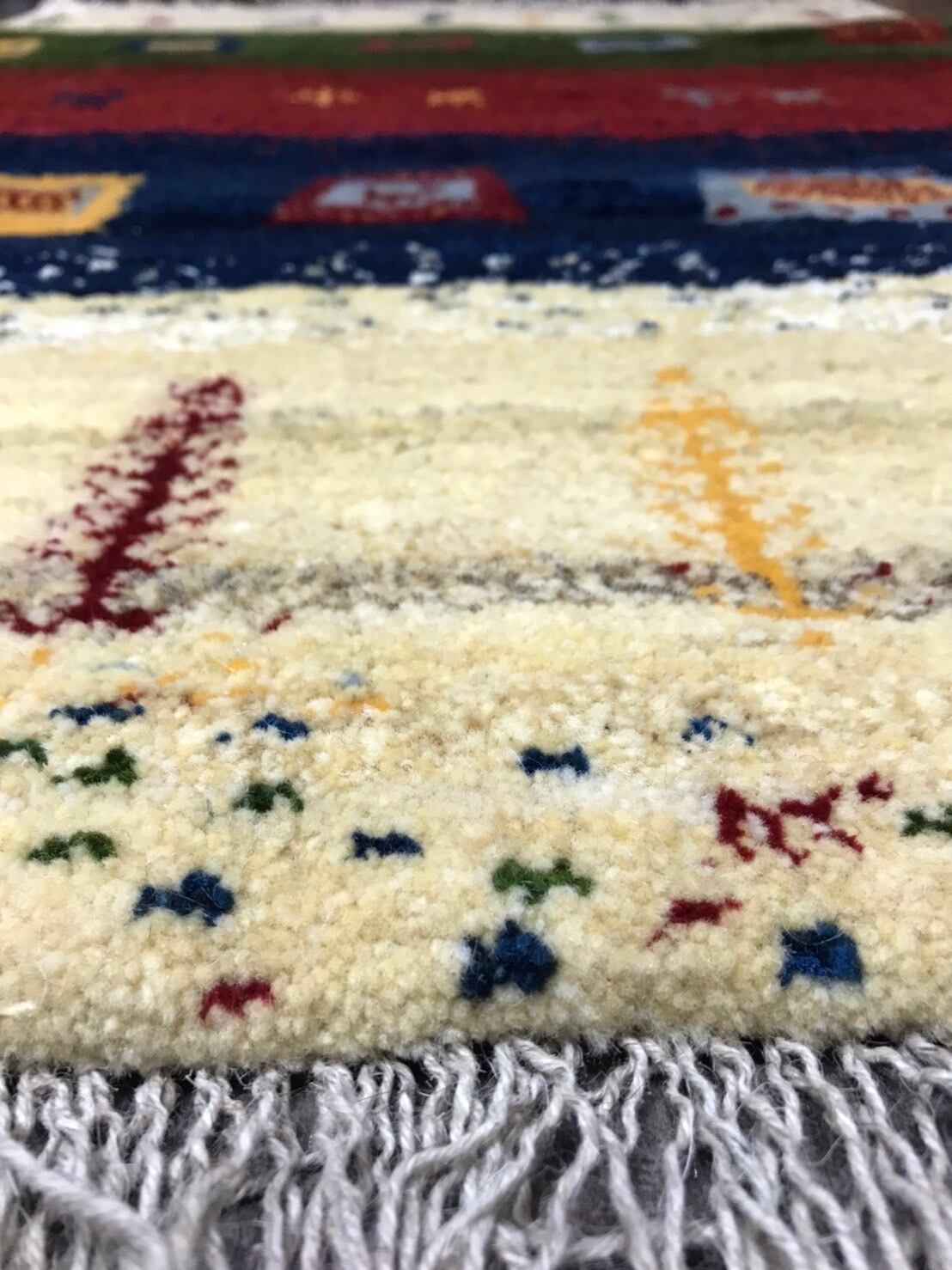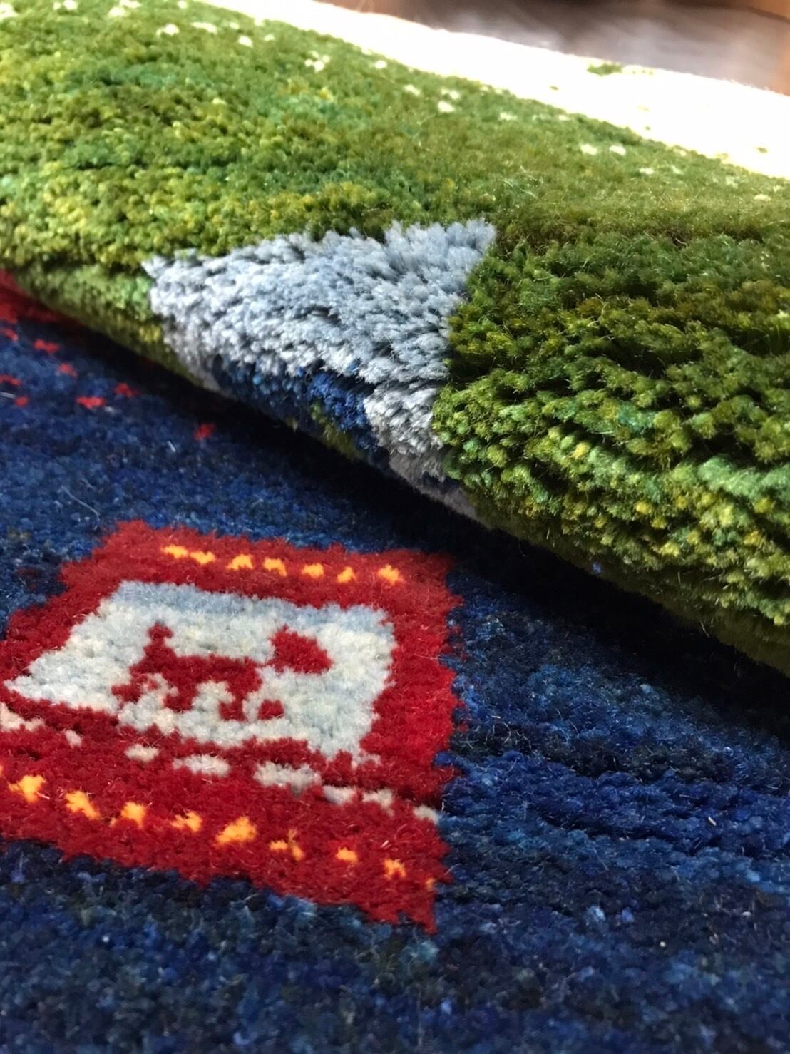イランのギャッべの特徴は遊牧民の暮らしている地域は夏冬の温度差が大きい事に加え乾燥地帯であるため昼夜の温度差も大きい環境で育った羊の毛を刈り紡いで使っているので良質なウールで出来ていて手触りが良いです。