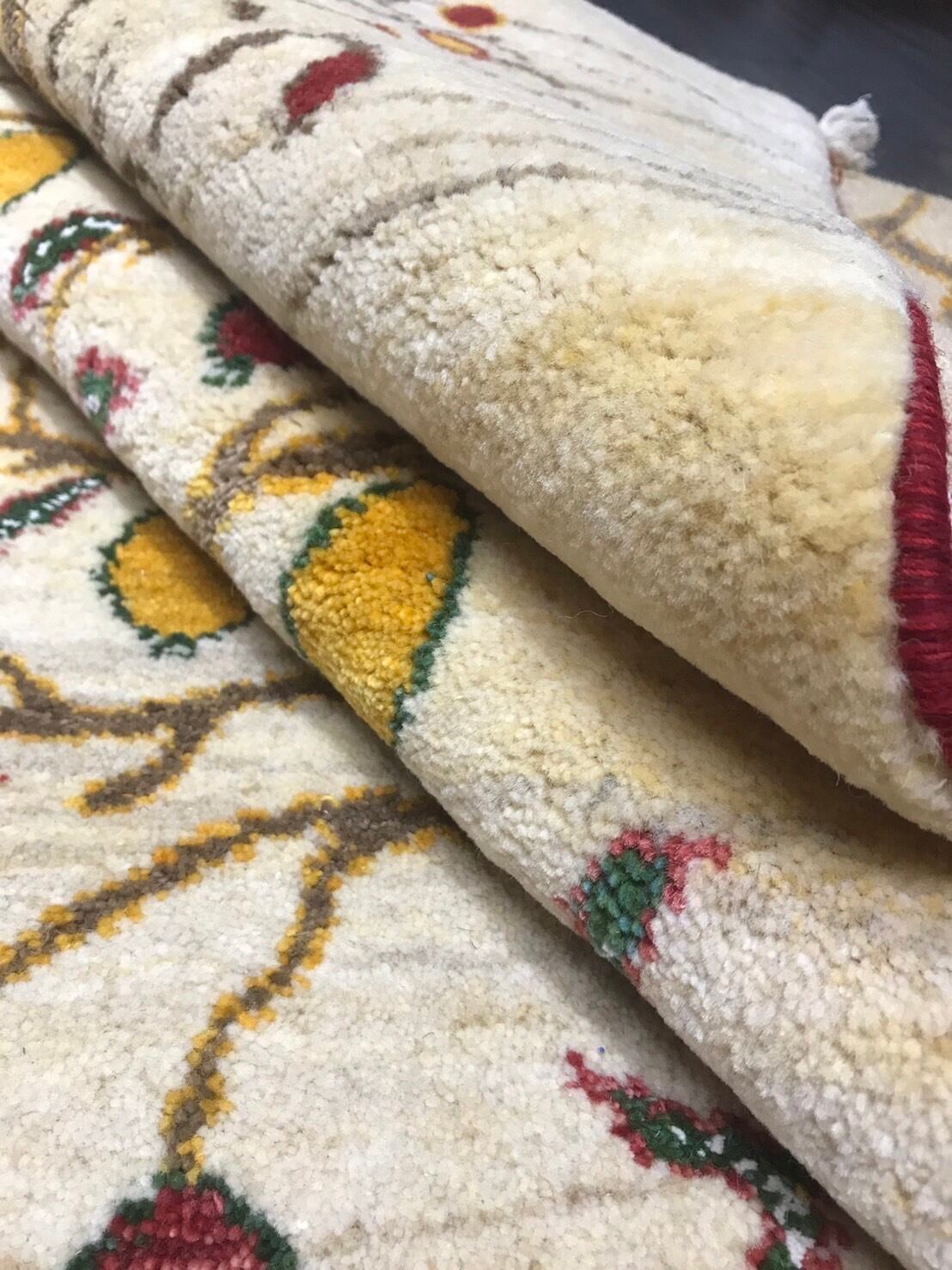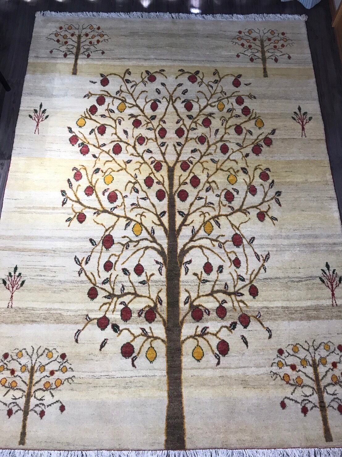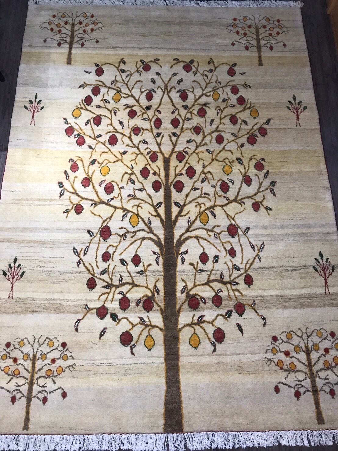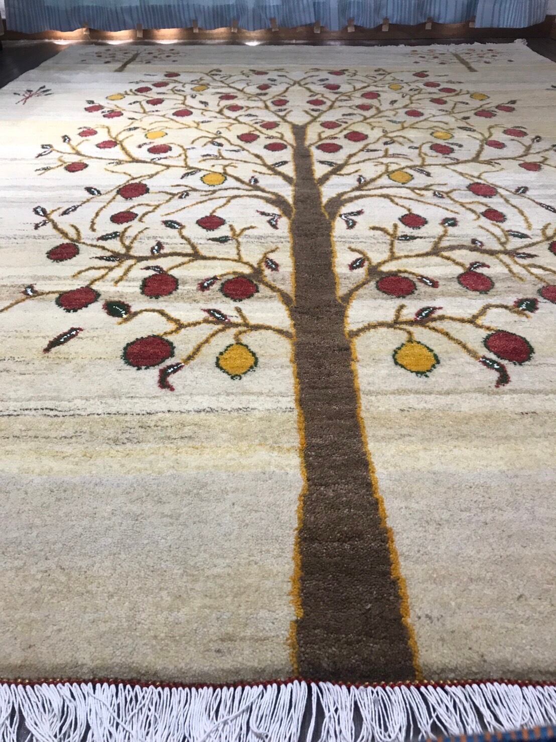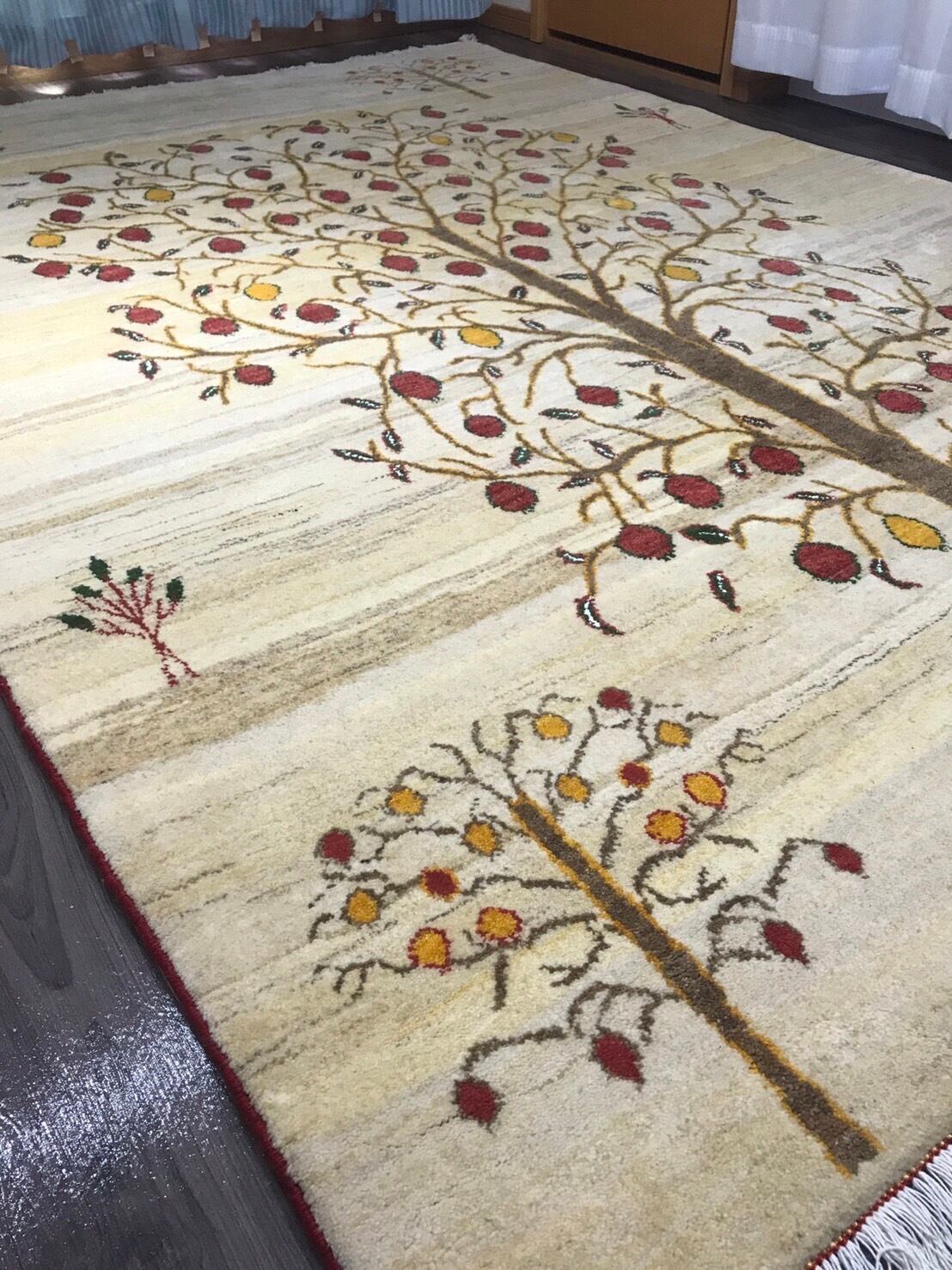 新品 ペルシャ絨毯 手織りリズギャッベ 228cm×165cm ザクロの木 ナチュラル
