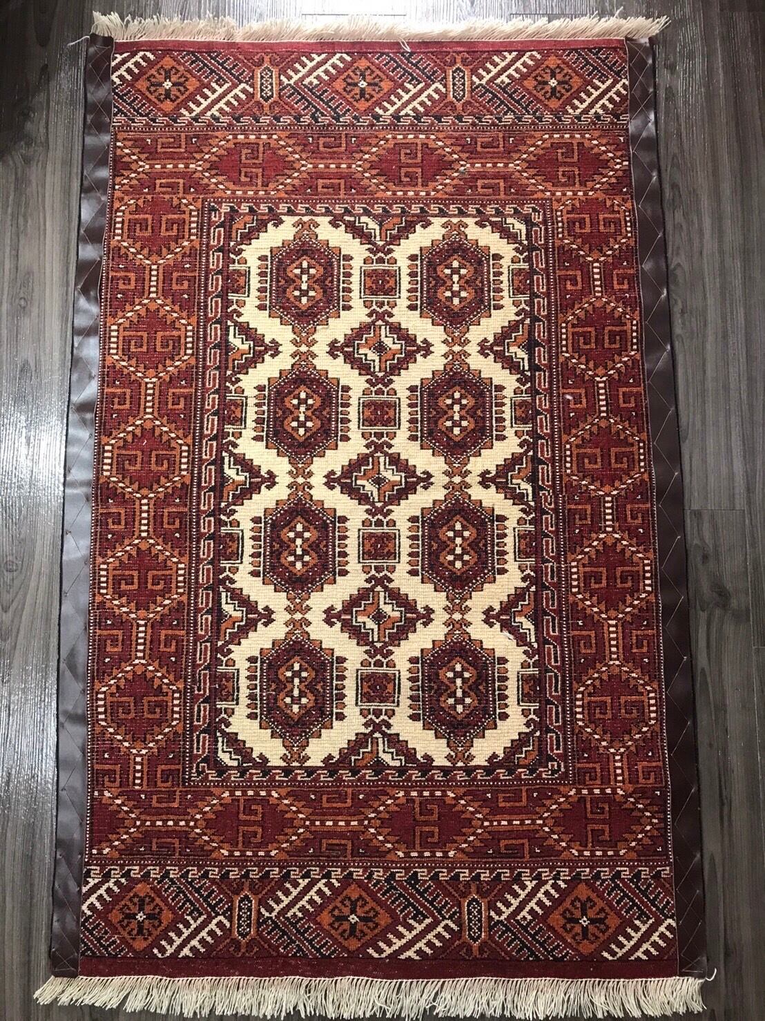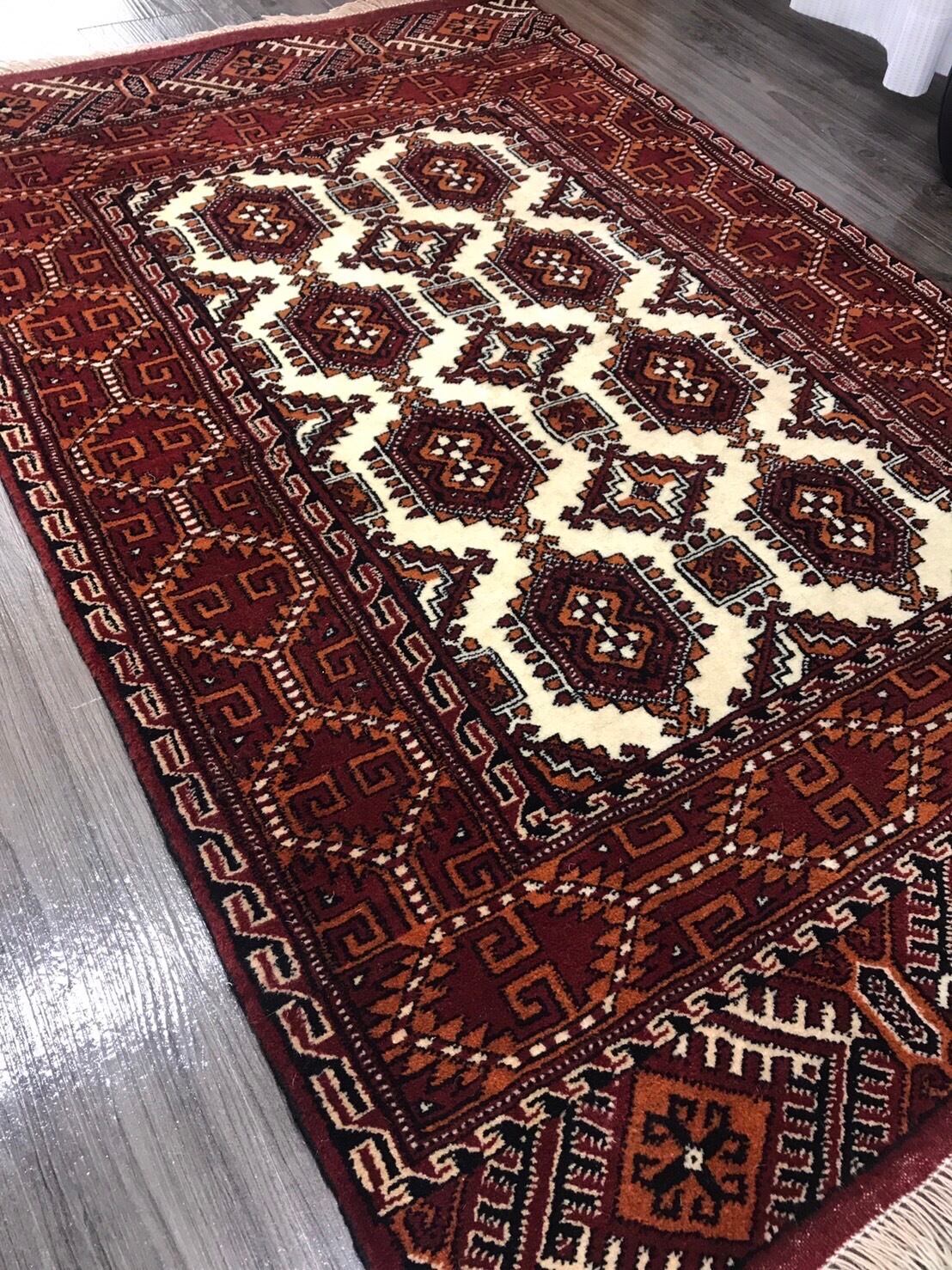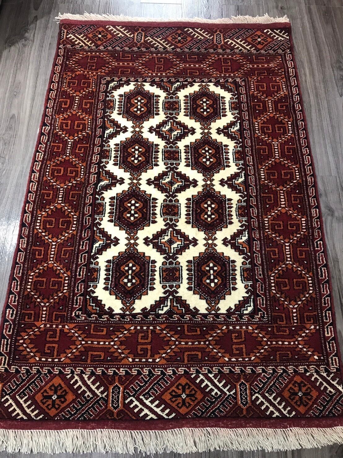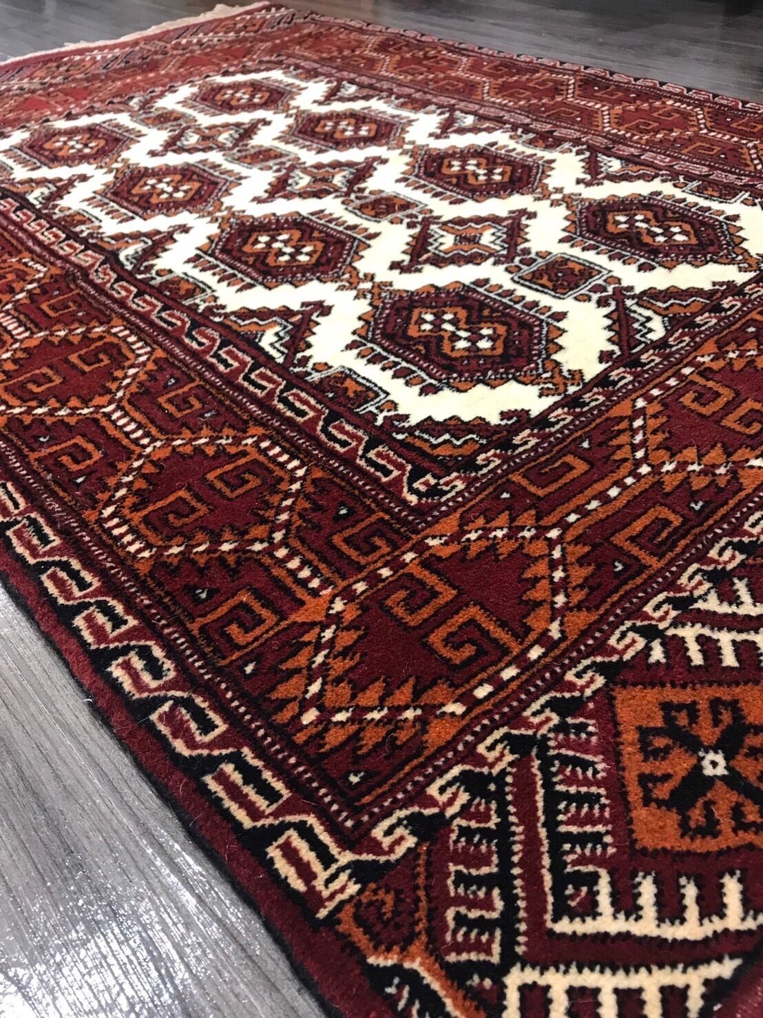 新品 ペルシャ絨毯 手織り トルキャマン産 124cm×82cm トライバルラグ