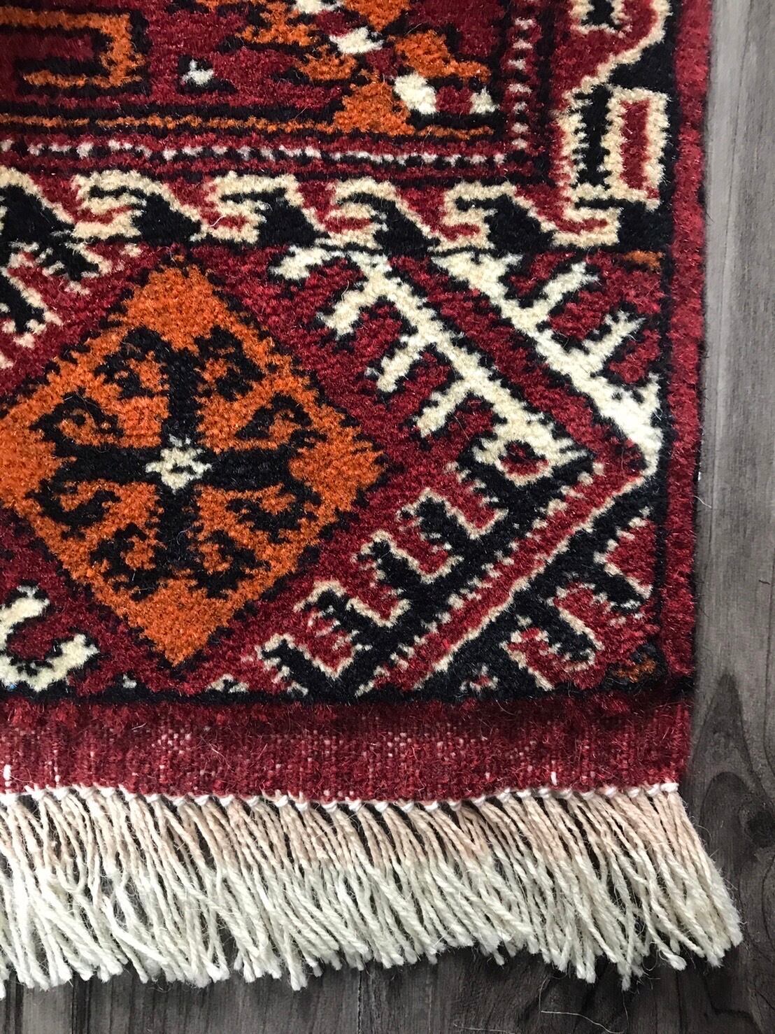 赤系とナチュラルの組み合わせやトルキャマン特有の文様がとても素敵な1枚です。