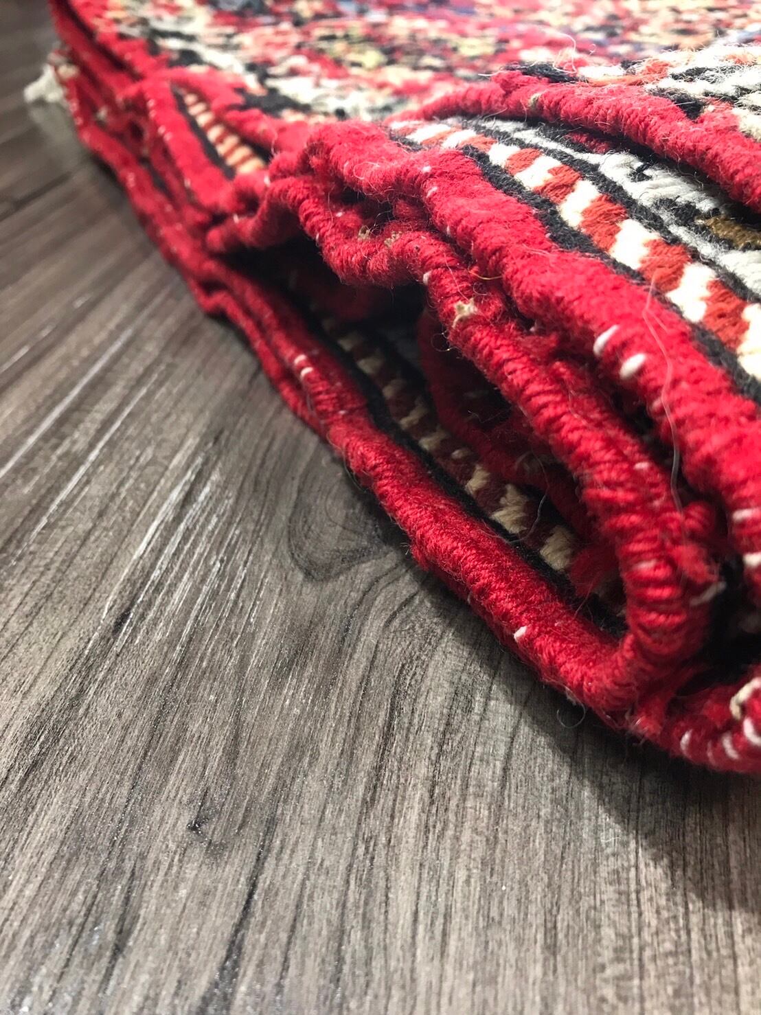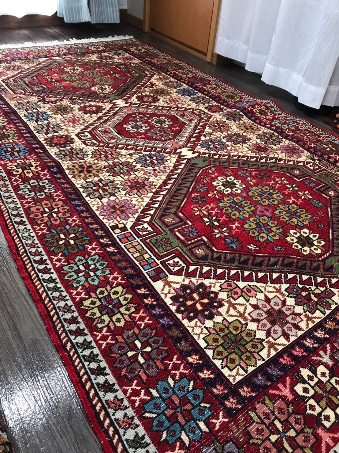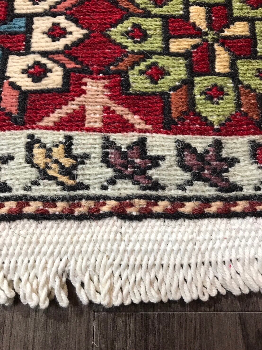 新品 ペルシャ絨毯 手織り キリム 210cm×122cm ウール シルク ナチュラル 赤