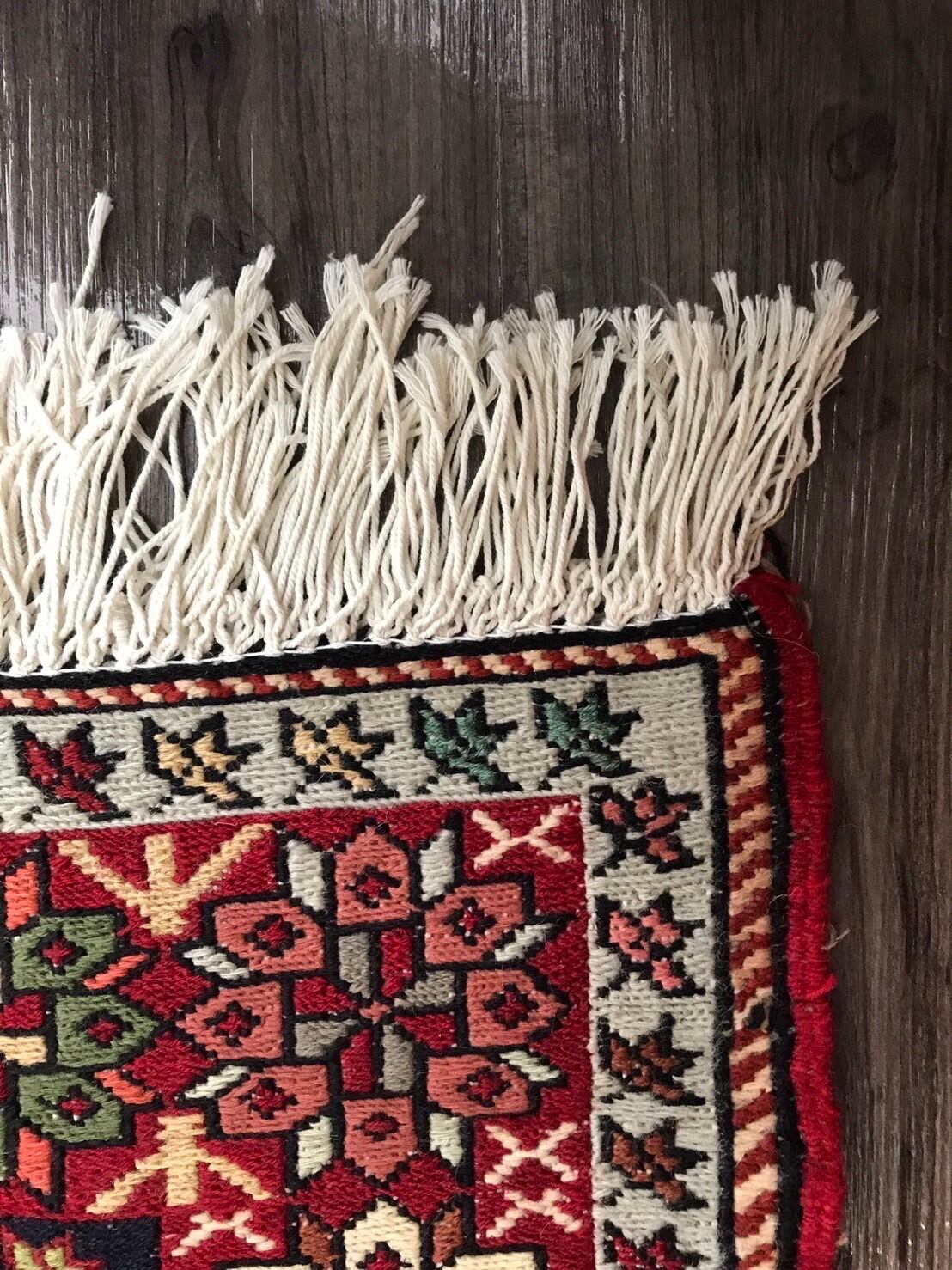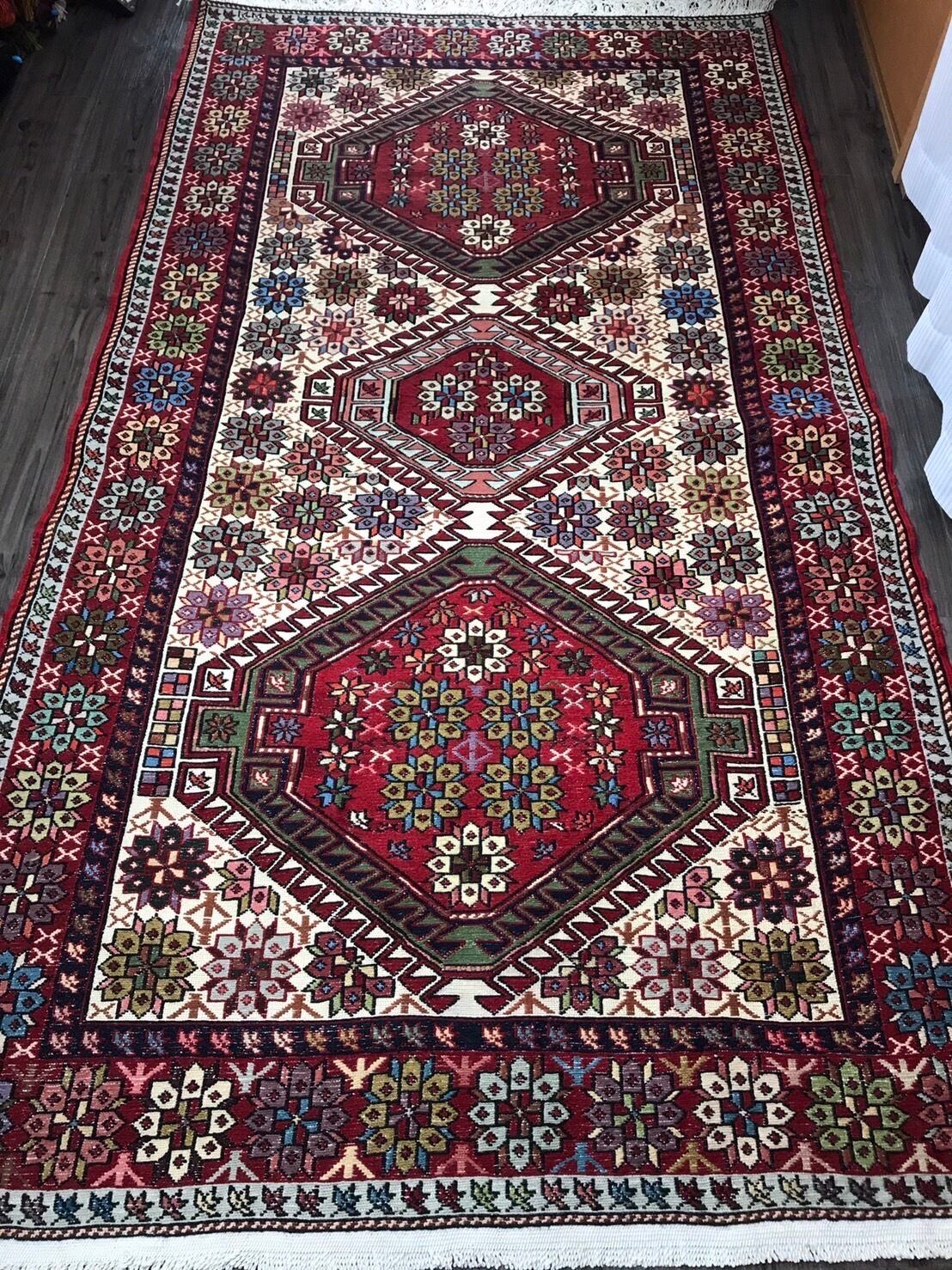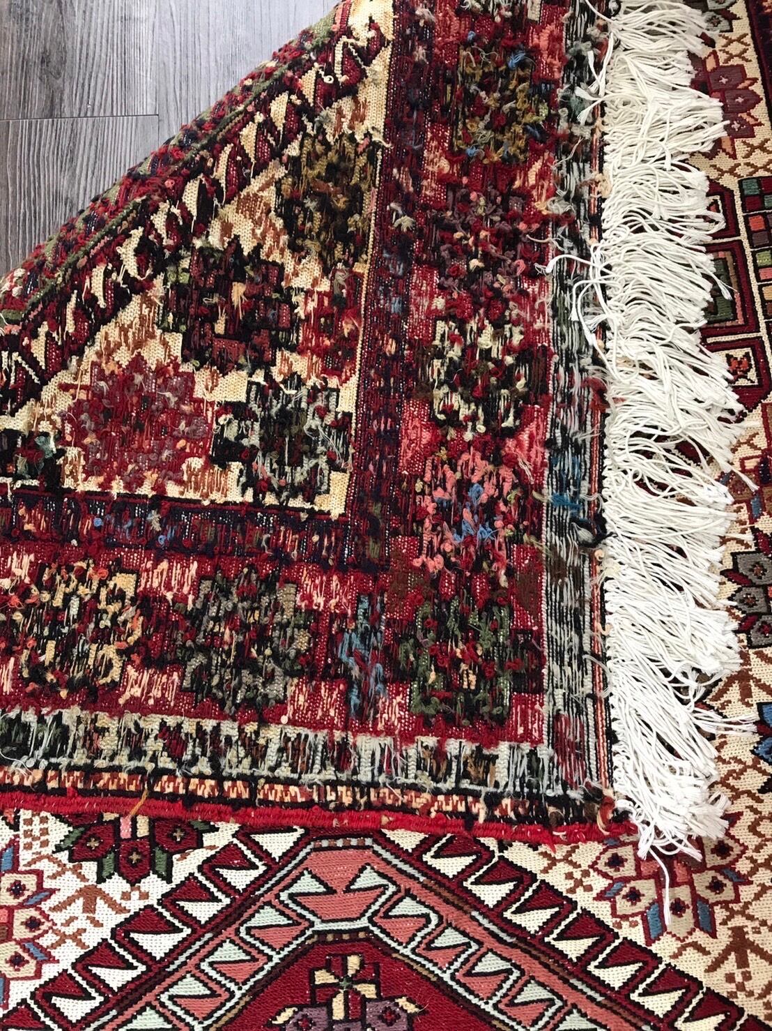 新品 ペルシャ絨毯 手織り キリム 210cm×122cm ウール シルク ナチュラル 赤