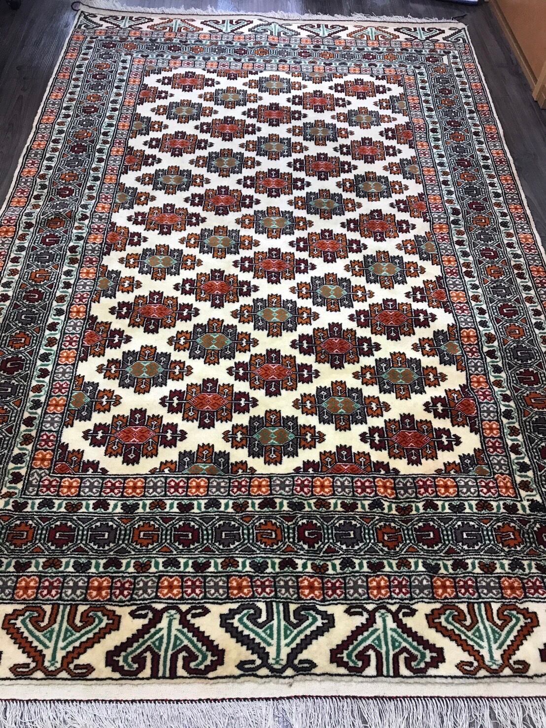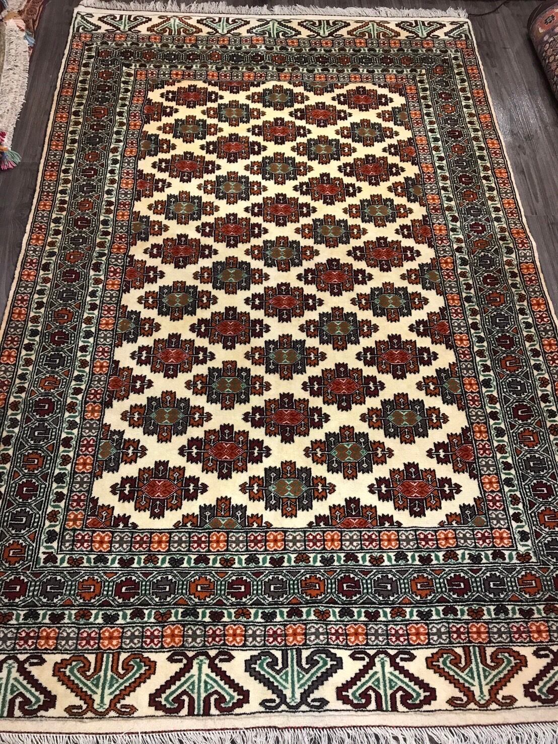 新品 ペルシャ絨毯 手織り トルキャマン産 トライバルラグ 200cm×130cm