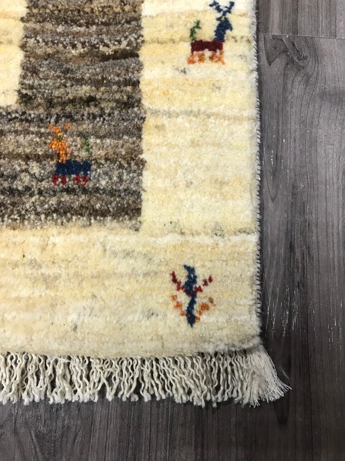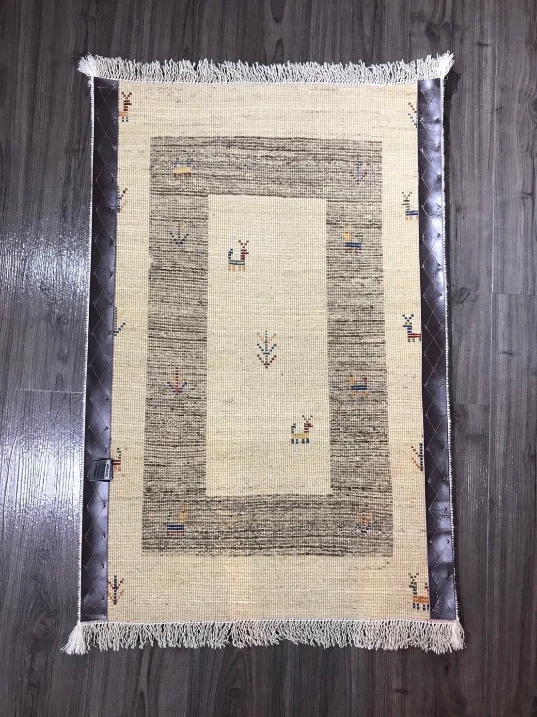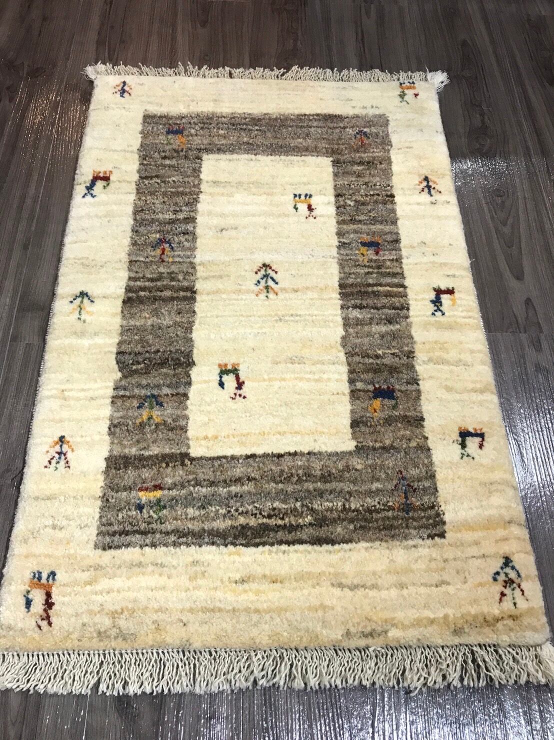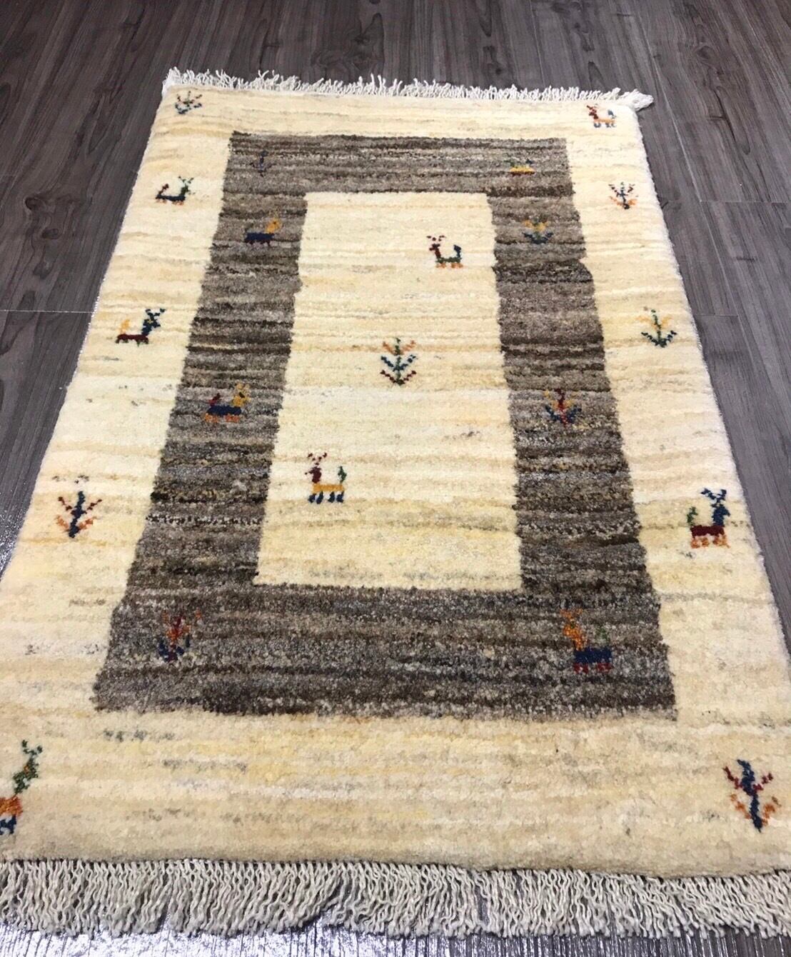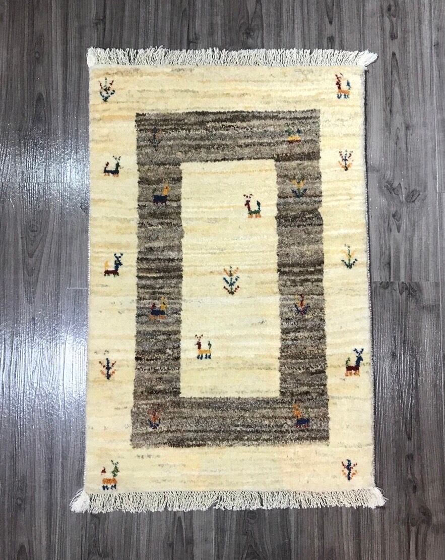 新品 ペルシャ絨毯 手織り ギャッベ 86cm×58cm ナチュラル 山羊 生命の木