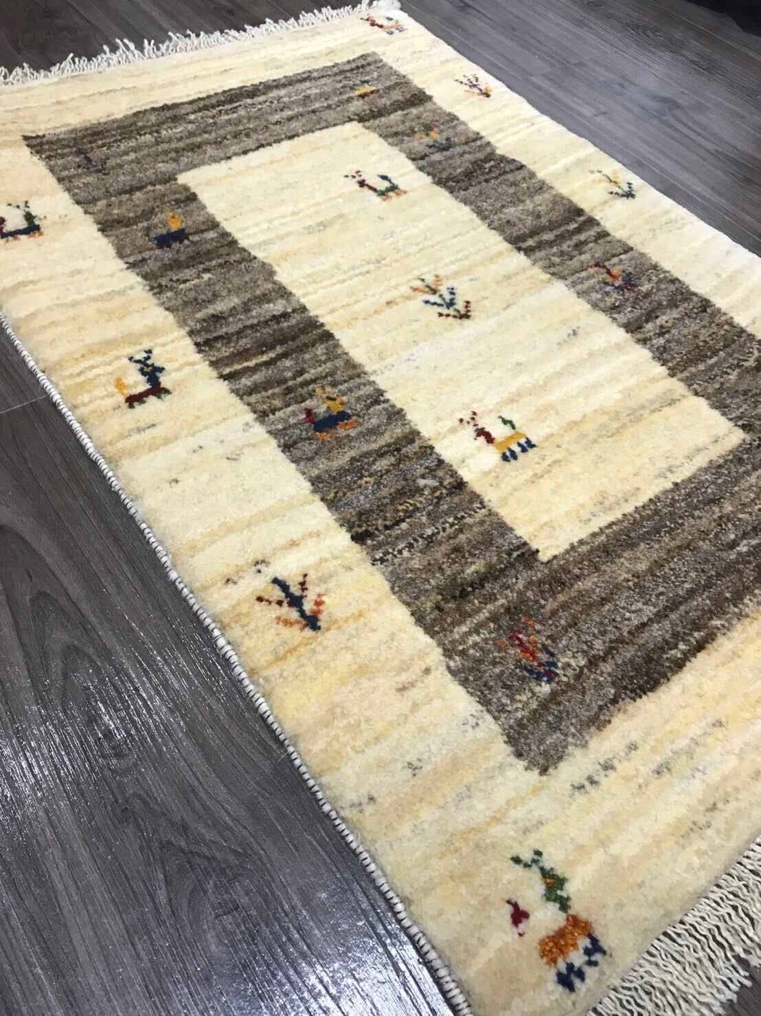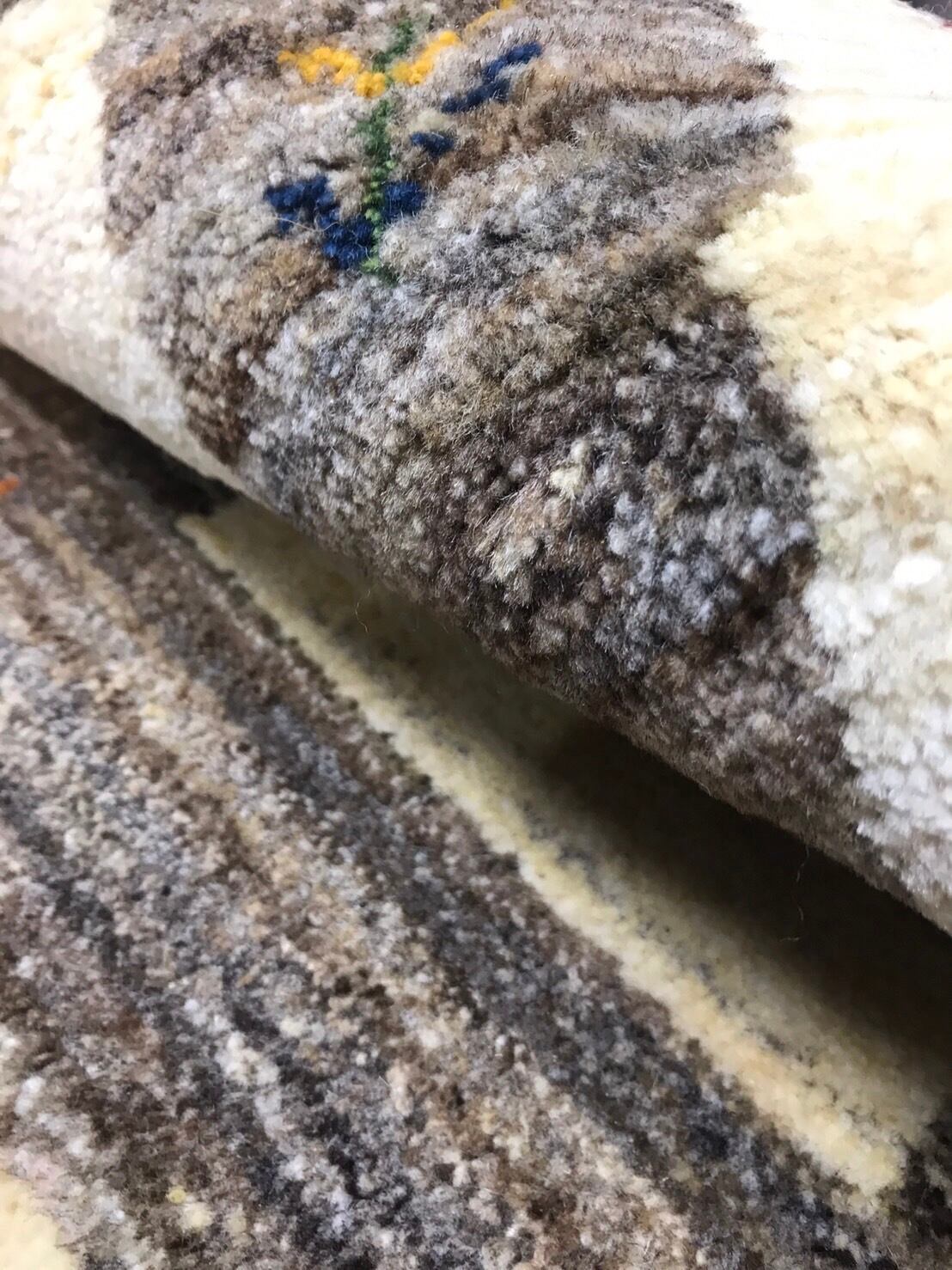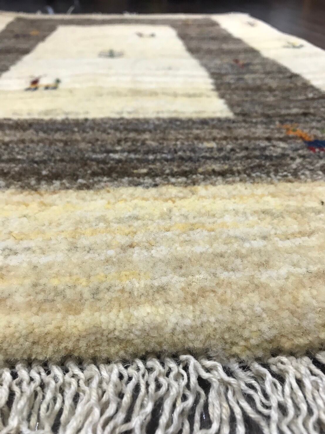 イランのギャッべの特徴は遊牧民の暮らしている地域は夏冬の温度差が大きい事に加え乾燥地帯であるため昼夜の温度差も大きい環境で育った羊の毛を刈り紡いで使っているので良質なウールで出来ていて手触りが良いです。