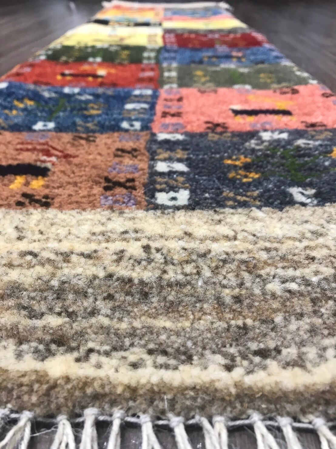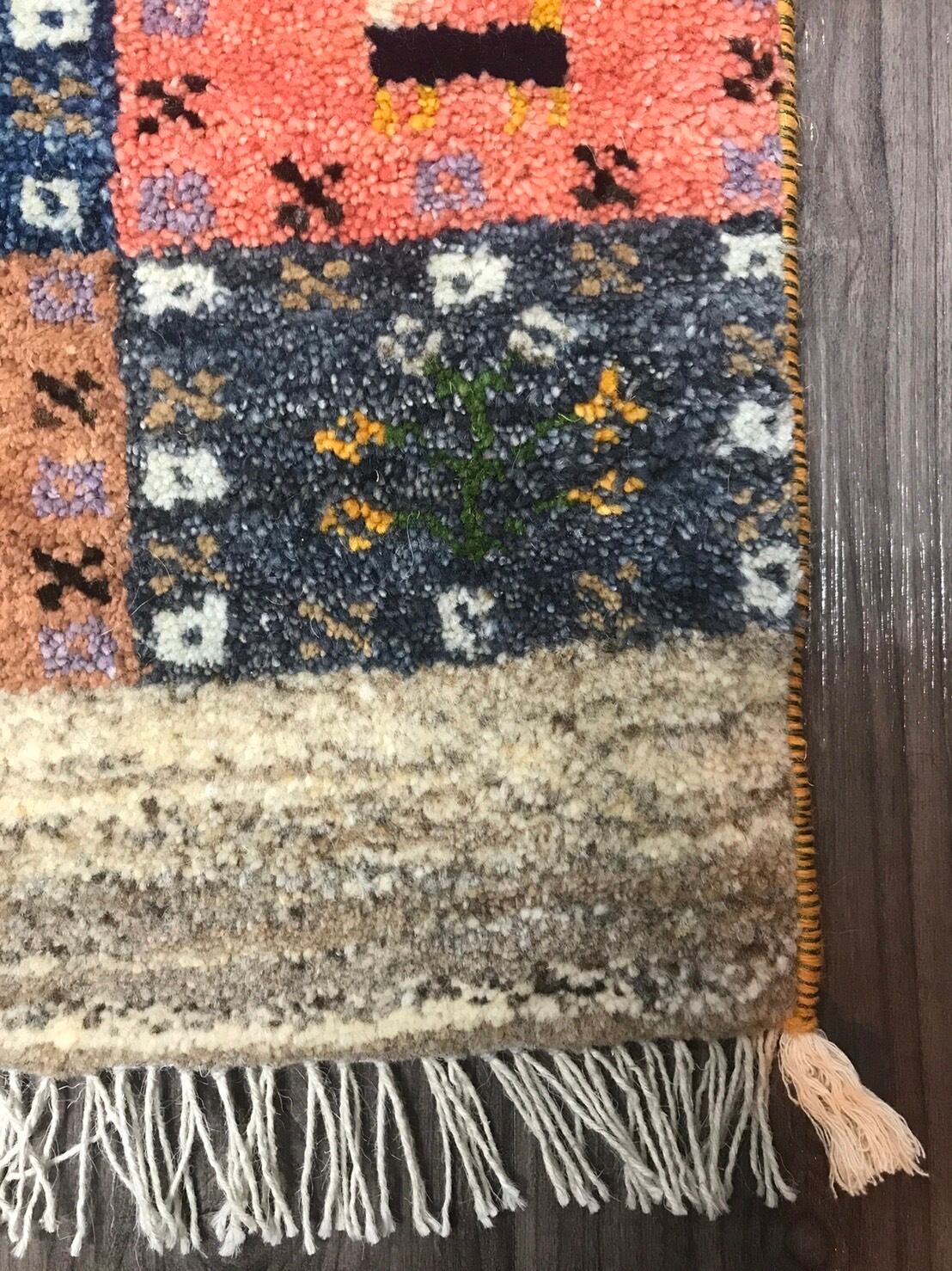 イランのギャッべの特徴は遊牧民の暮らしている地域は夏冬の温度差が大きい事に加え乾燥地帯であるため昼夜の温度差も大きい環境で育った羊の毛を刈り紡いで使っているので良質なウールで出来ていて手触りが良いです。