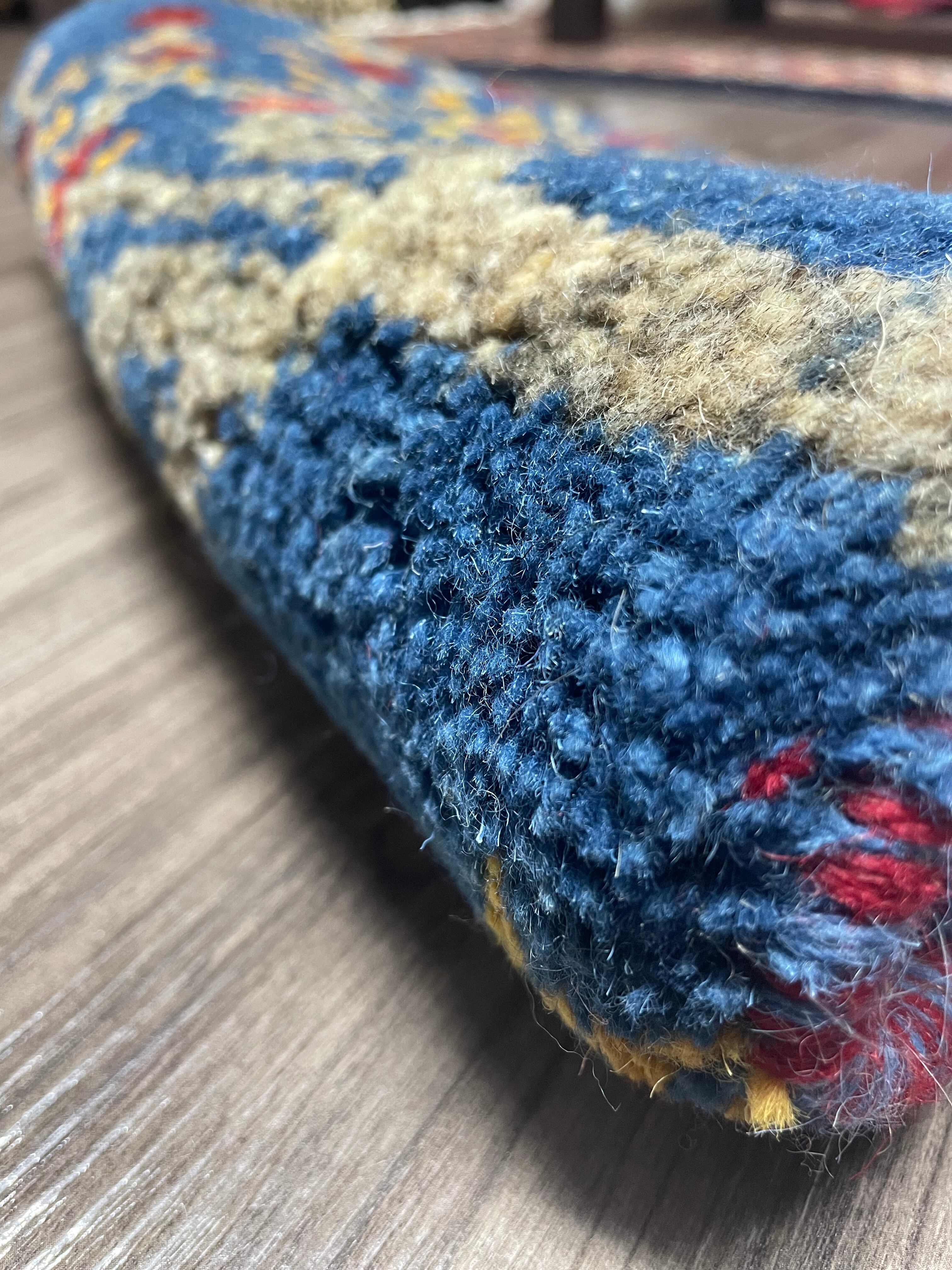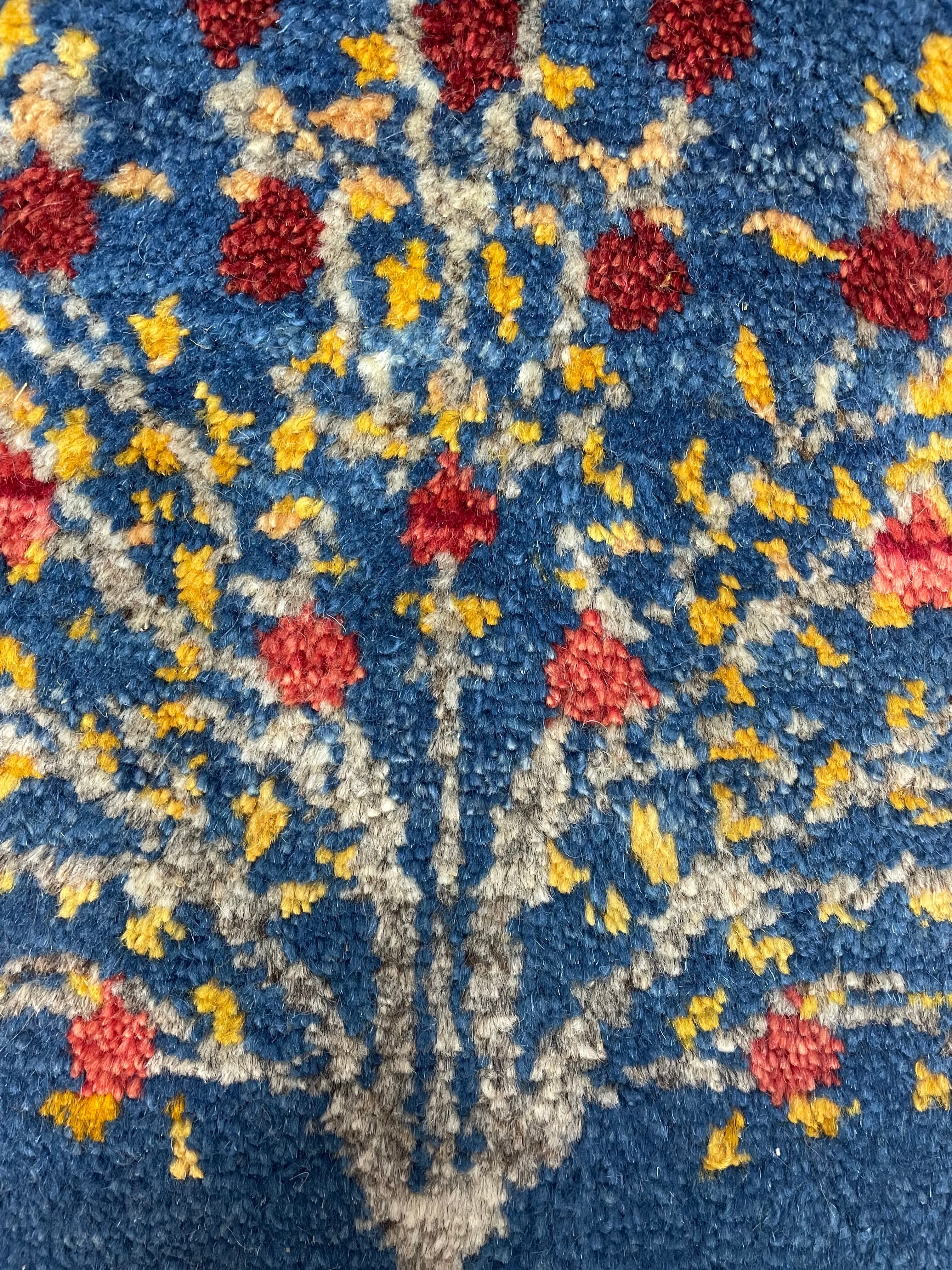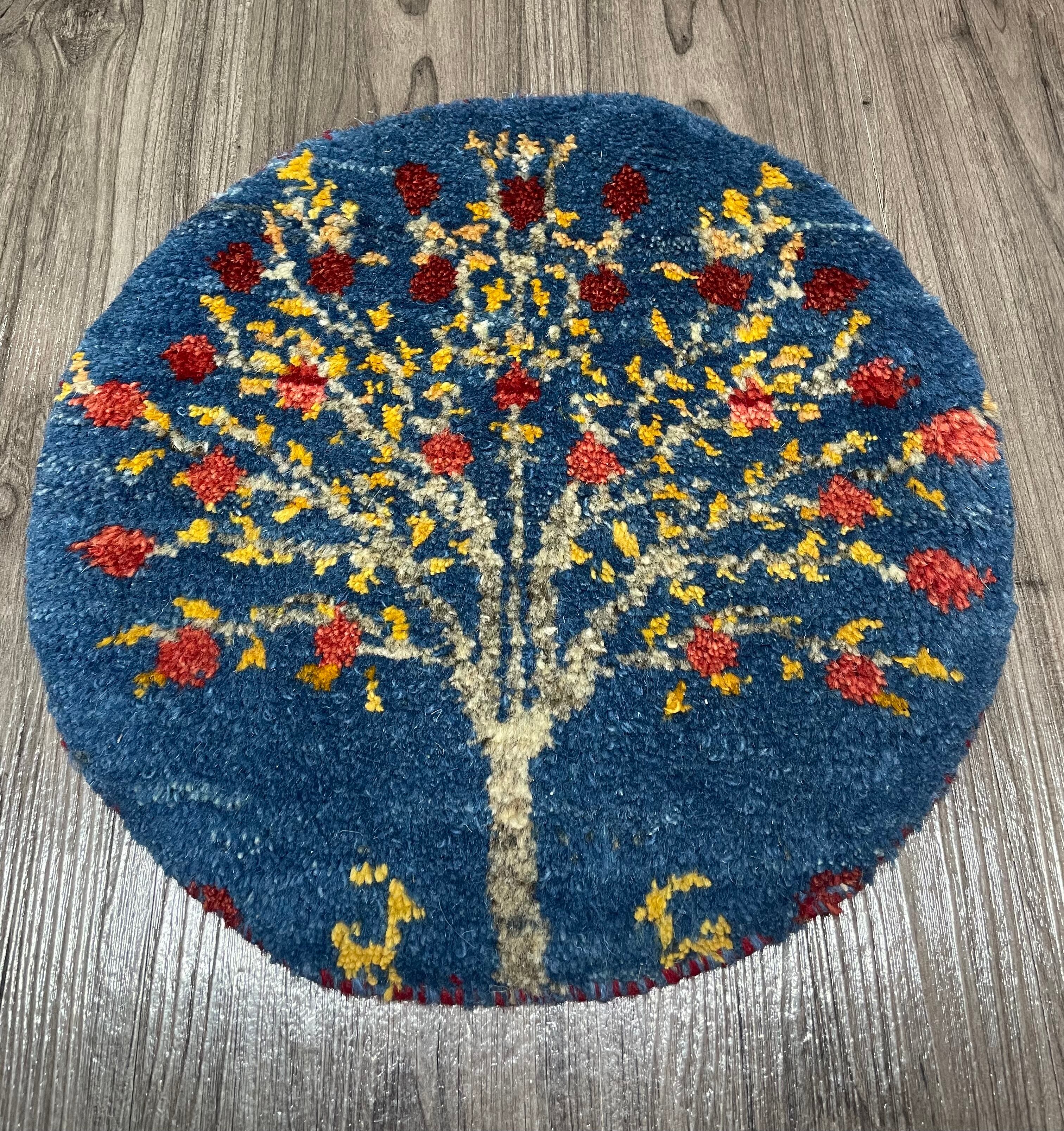 新品 ペルシャ絨毯 手織り ギャッベ 円形 40cm 青色 ザクロの木 山羊