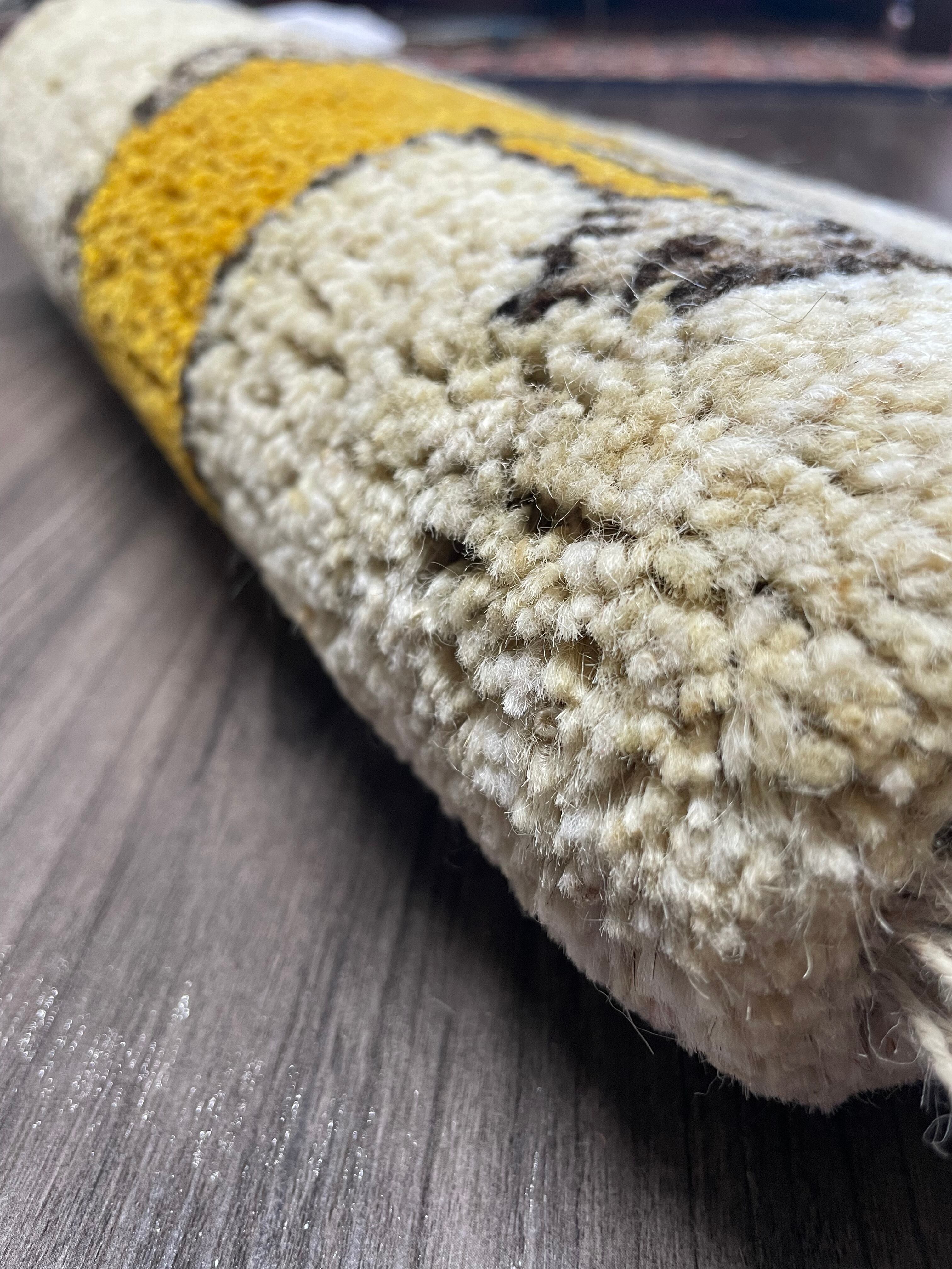 新品 ペルシャ絨毯 手織り ギャッベ 37×38cm ナチュラル 黄色 ラクダ