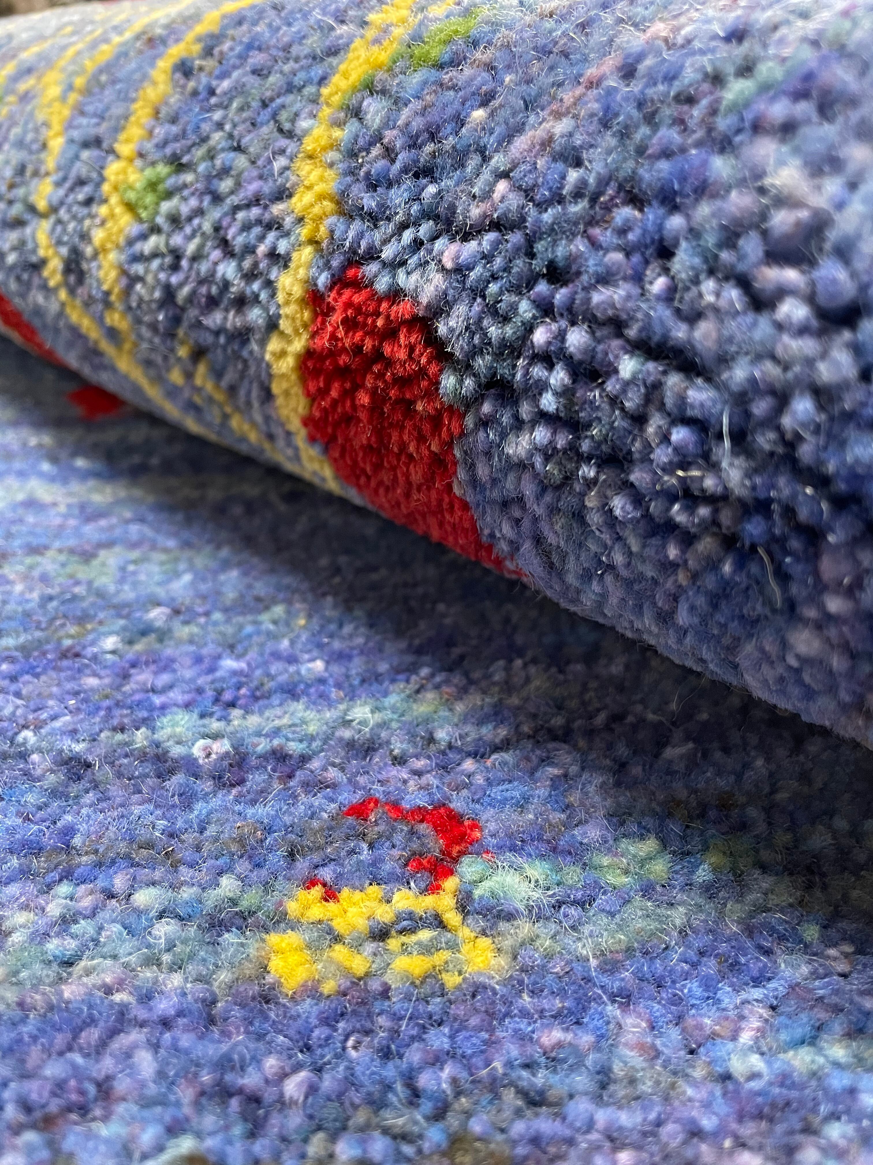 イランのギャッべの特徴は遊牧民の暮らしている地域は夏冬の温度差が大きい事に加え乾燥地帯であるため昼夜の温度差も大きい環境で育った羊の毛を刈り紡いで使っているので良質なウールで出来ていて手触りが良いです