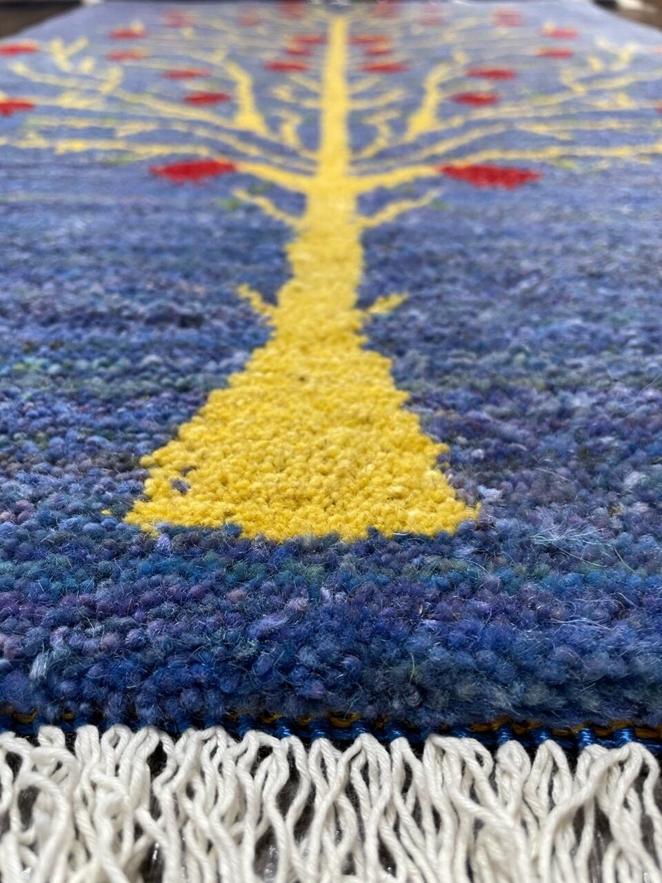 *ザクロの木:ギャッベのモチーフの中でも特別な意味を持つと言われ家族を守る神木的な守り神で子宝に恵まれますようにと子孫繁栄の意味があるモチーフ