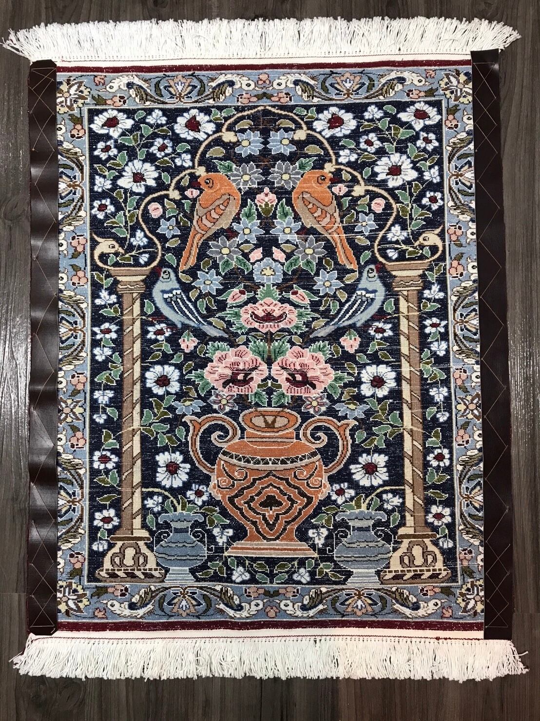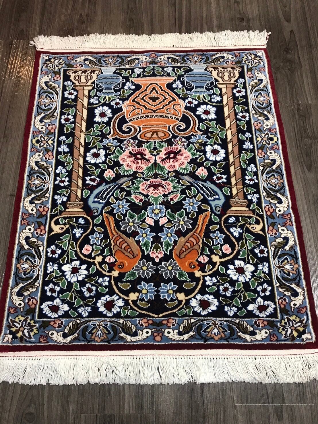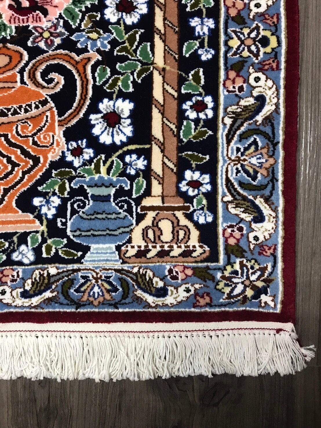 新品 ペルシャ絨毯 手織り ナイン産9la 77×65cm 花鳥文様