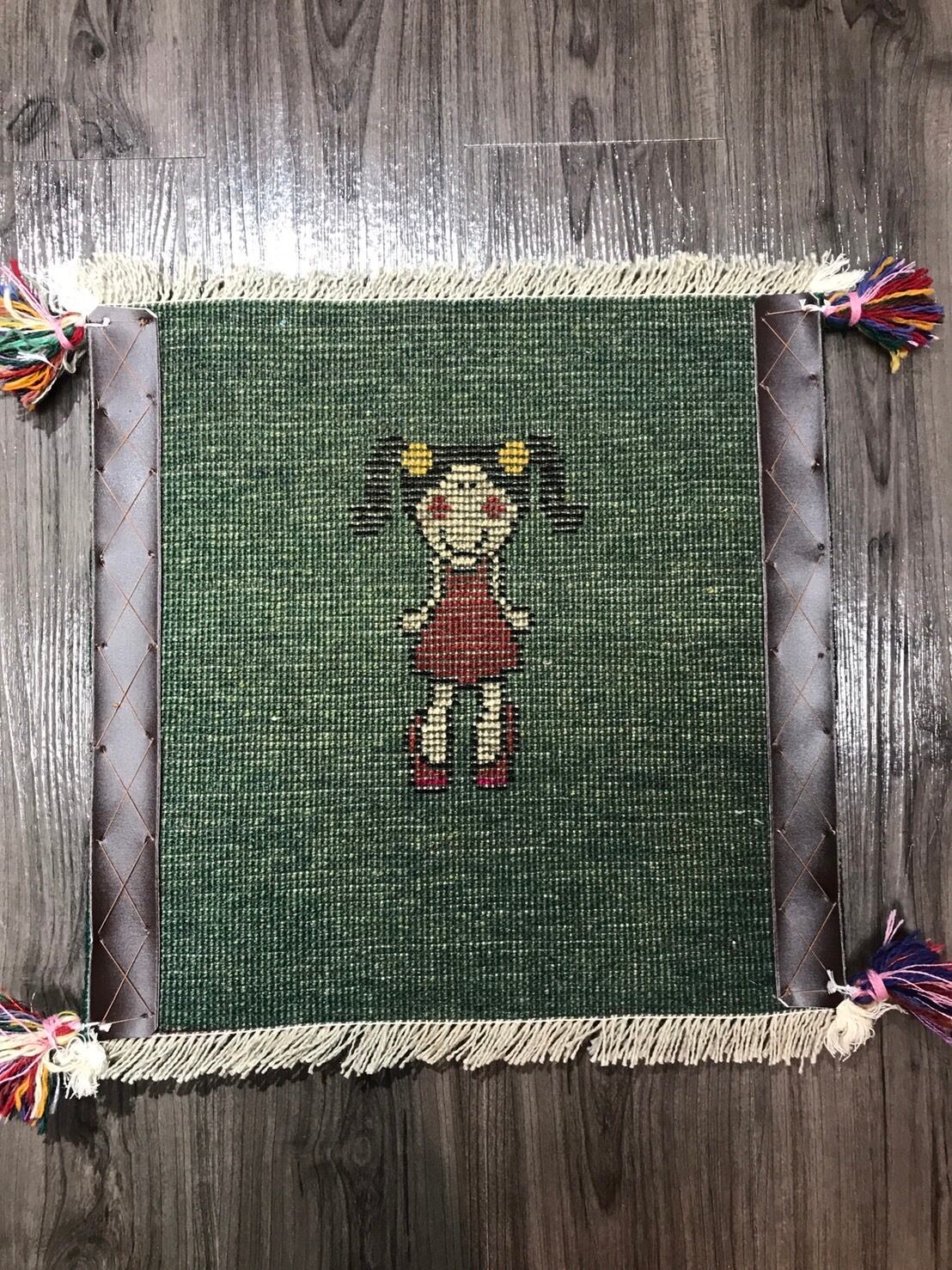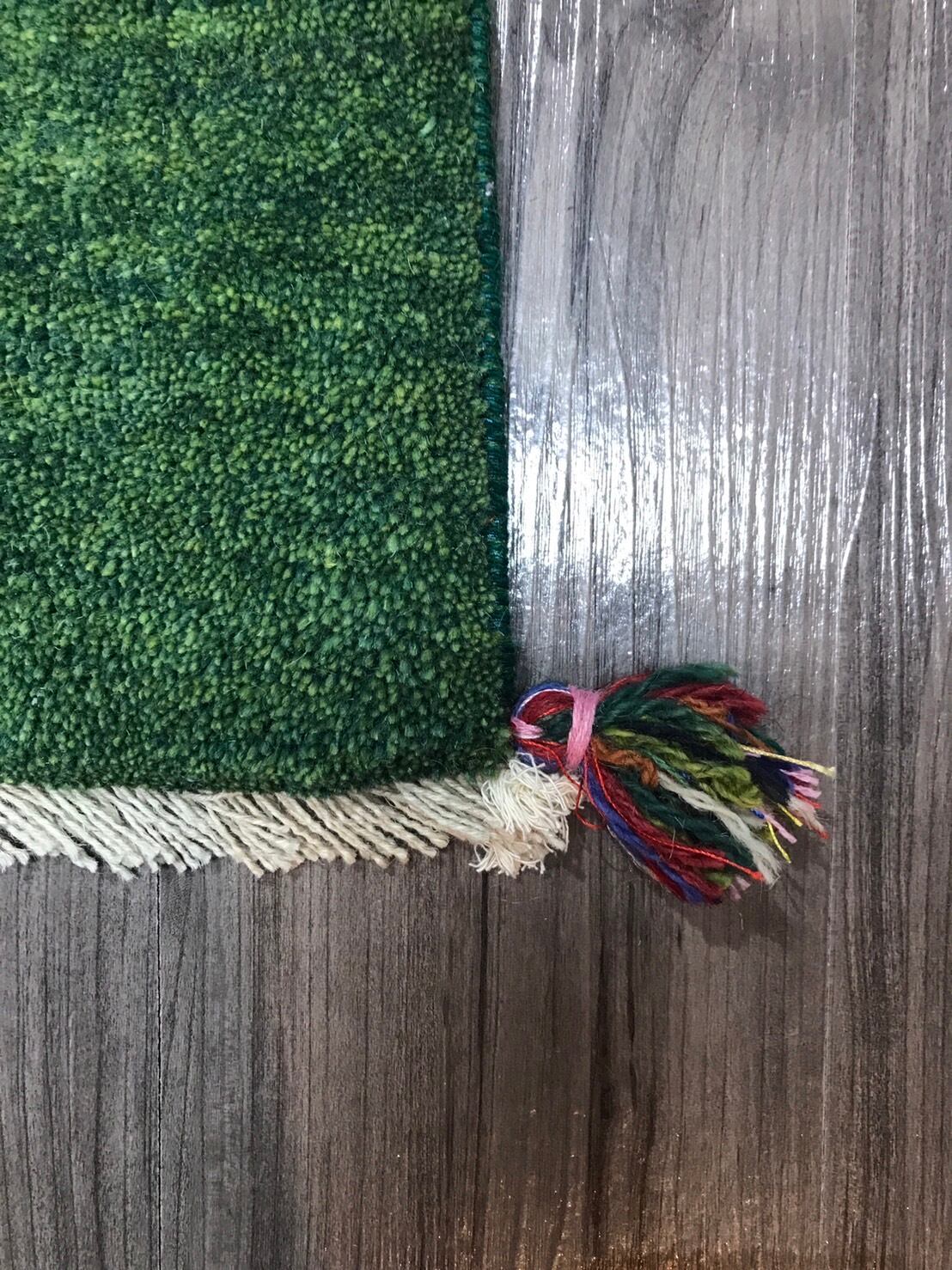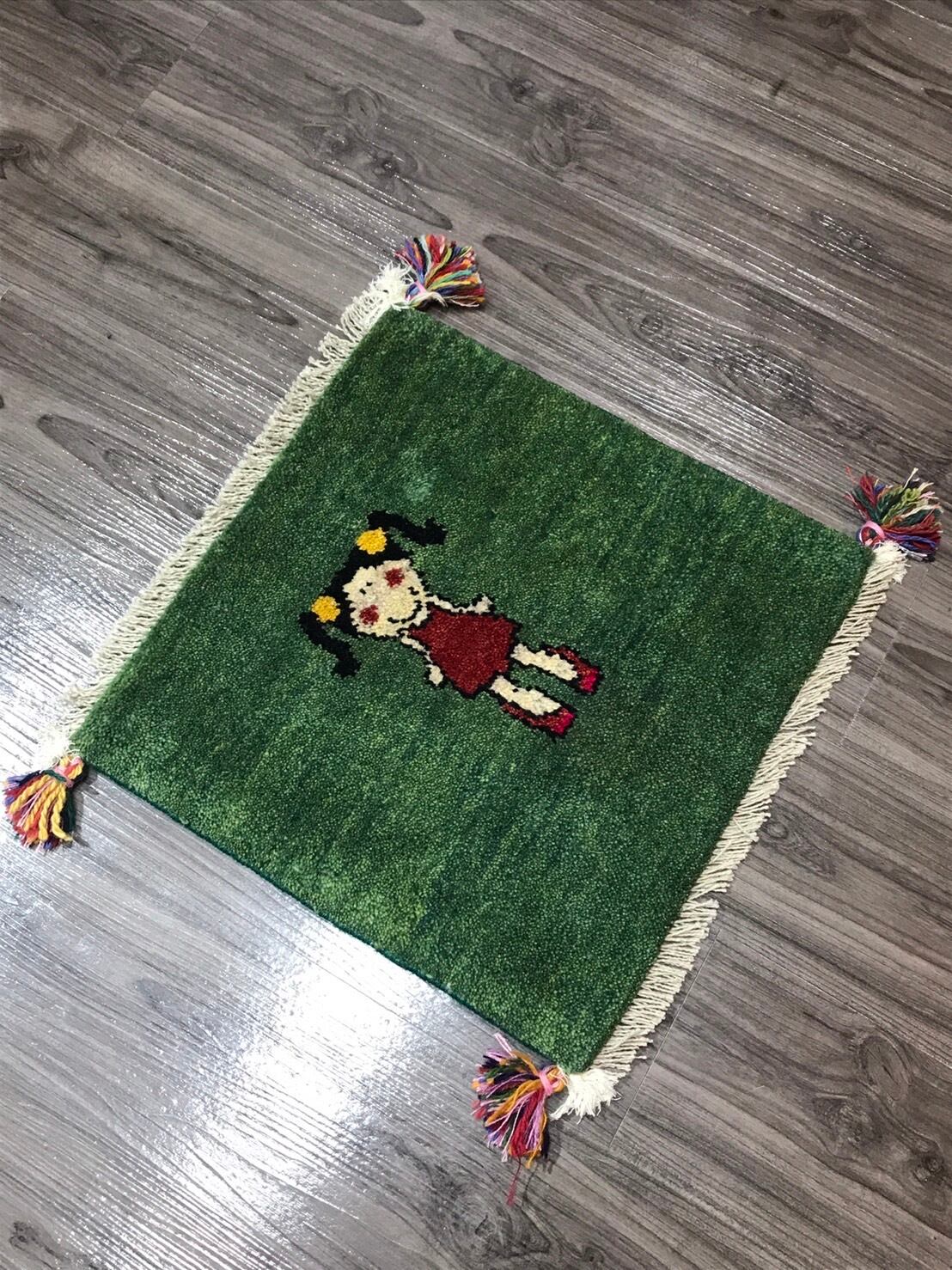新品 ペルシャ絨毯 手織り ギャッベ 41×42cm 座布団ギャッベ 緑 女の子