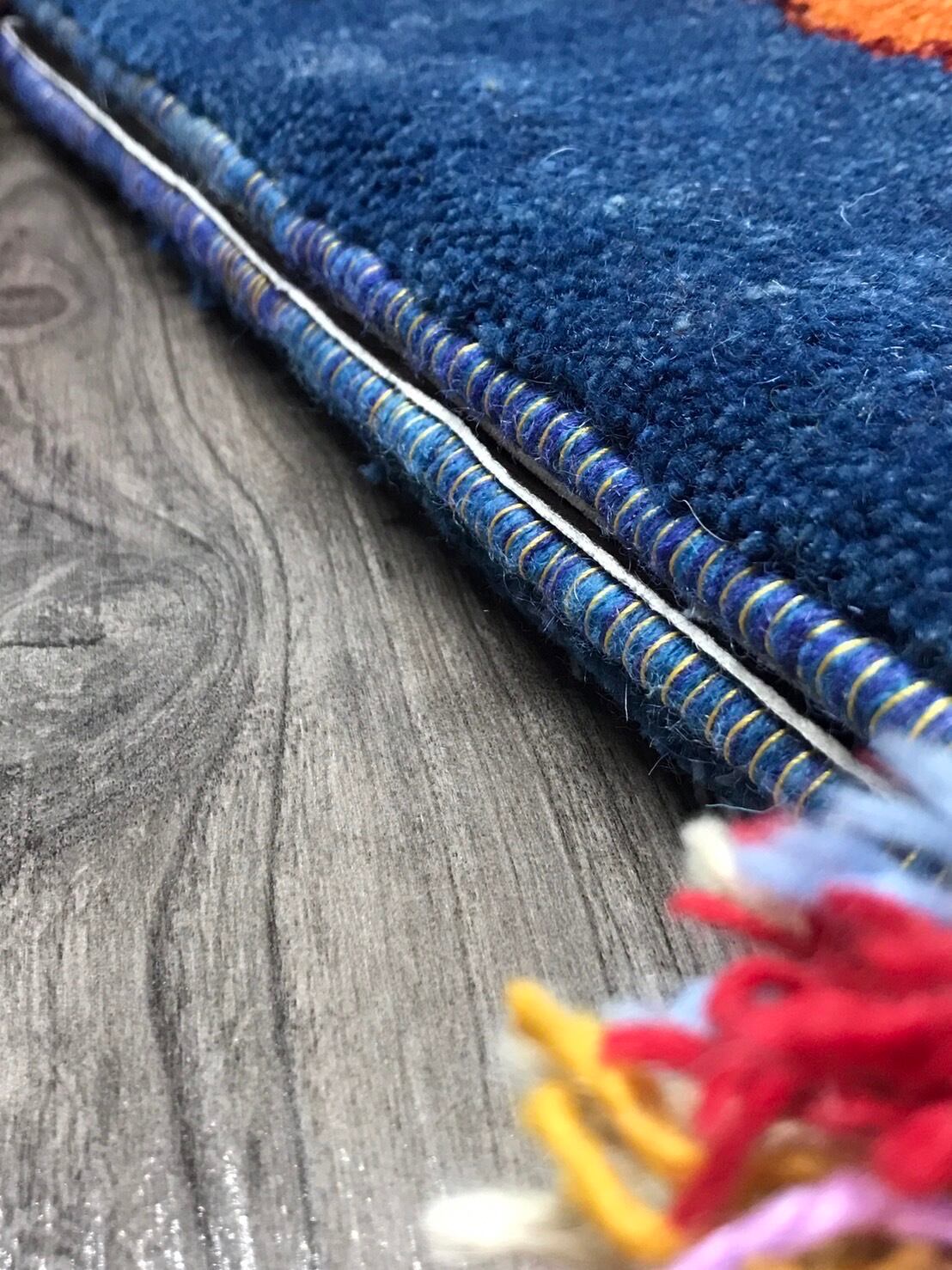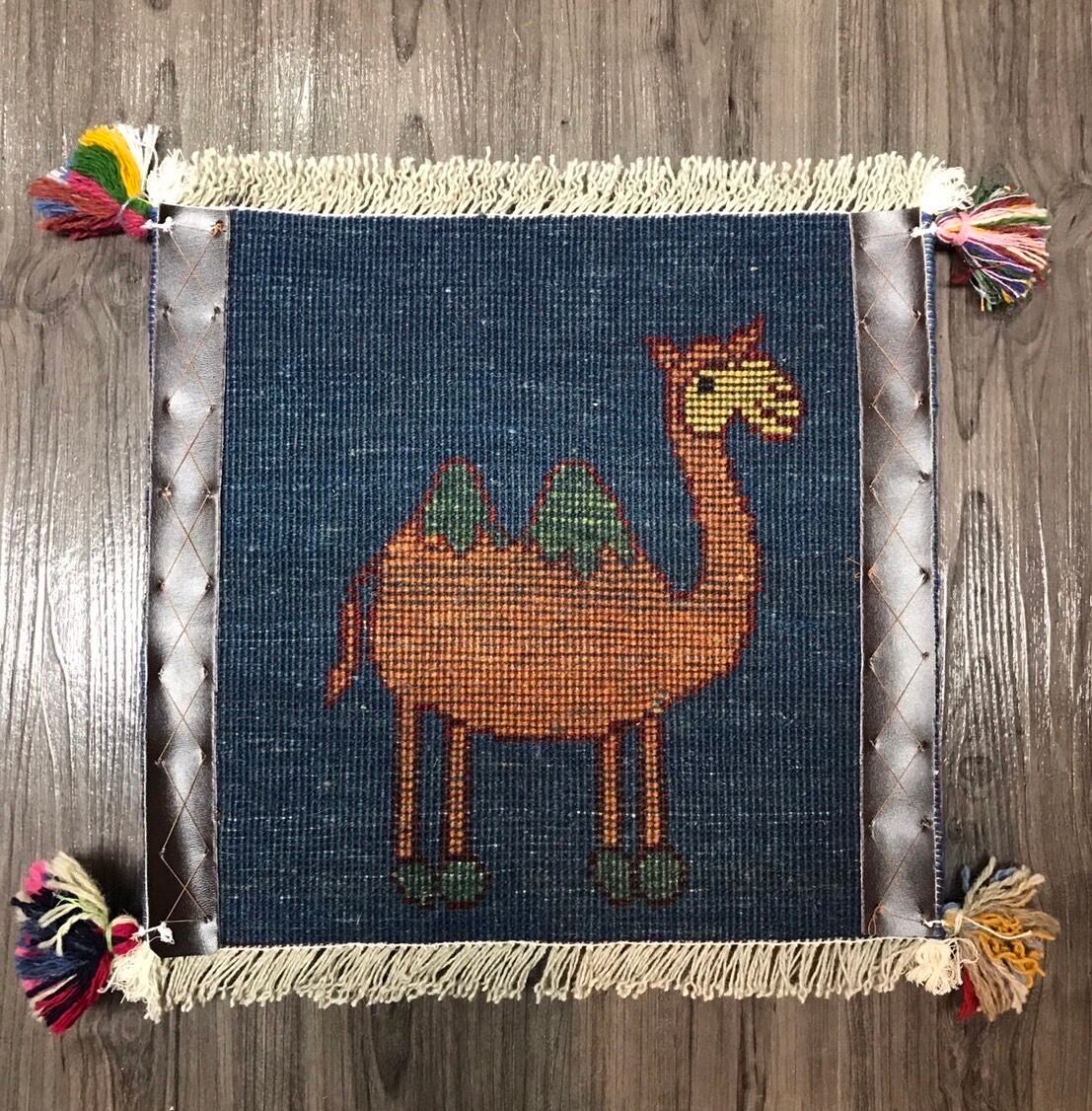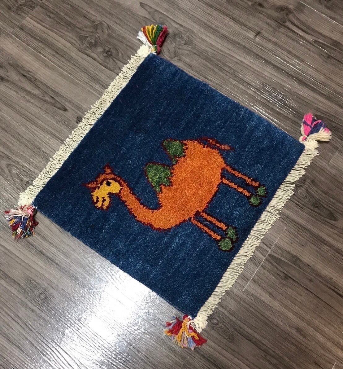 新品 ペルシャ絨毯 手織り ギャッベ 38×42cm 青 ラクダ ギャッベ座布団