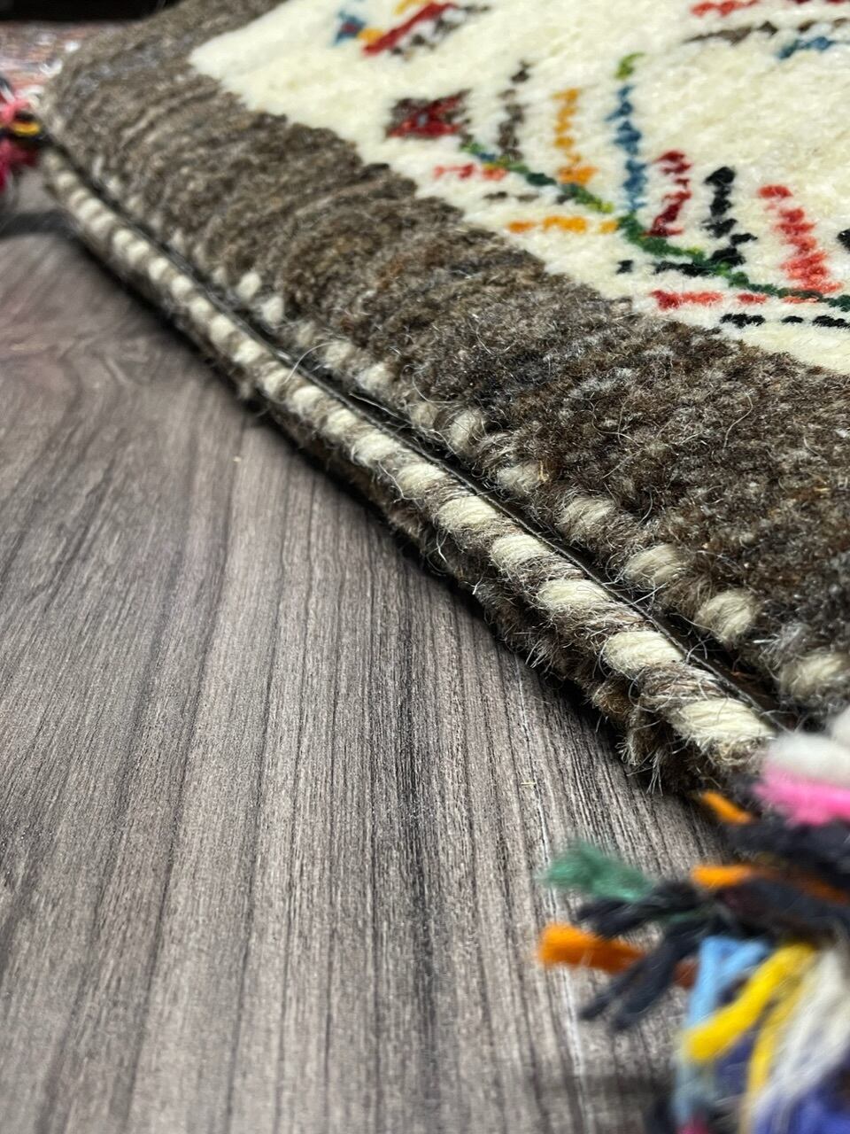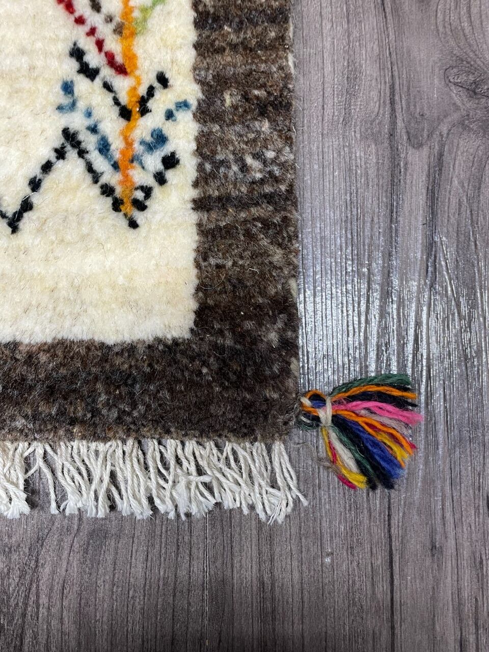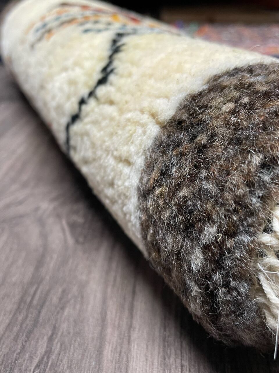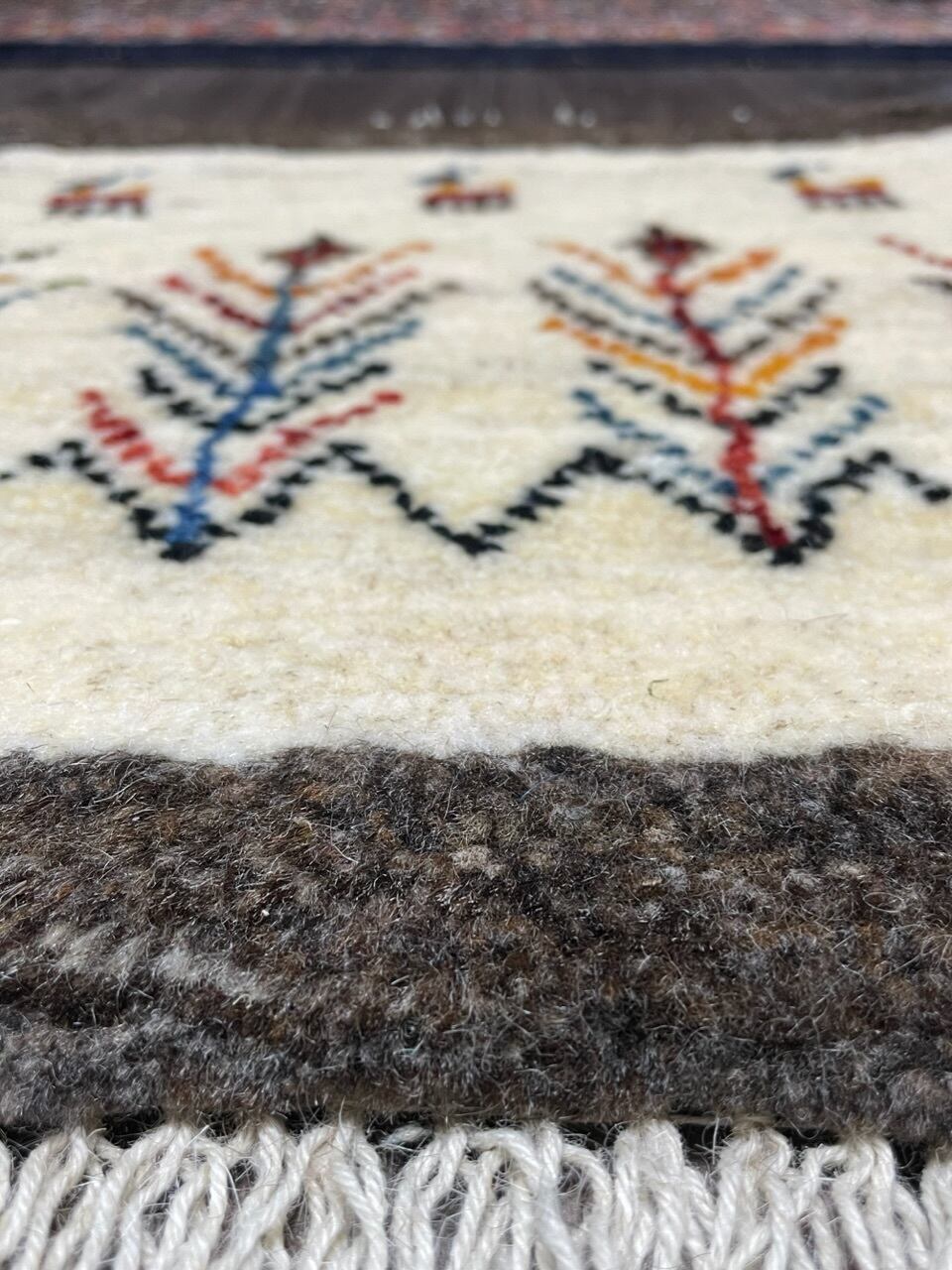 イランのギャッべの特徴は遊牧民の暮らしている地域は夏冬の温度差が大きい事に加え乾燥地帯であるため昼夜の温度差も大きい環境で育った羊の毛を刈り紡いで使っているので良質なウールで出来ていて手触りが良いです。