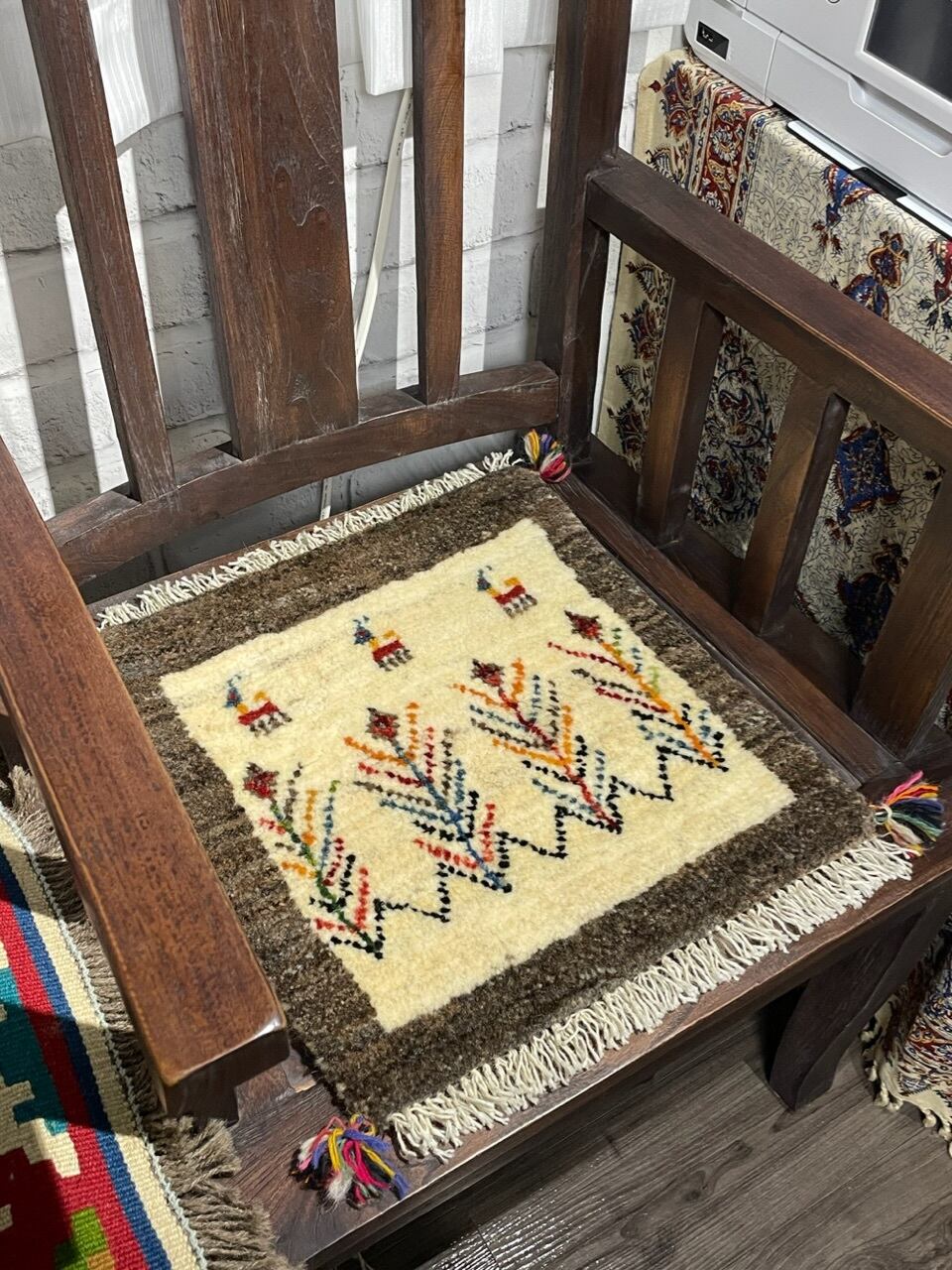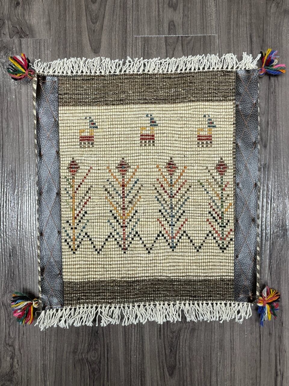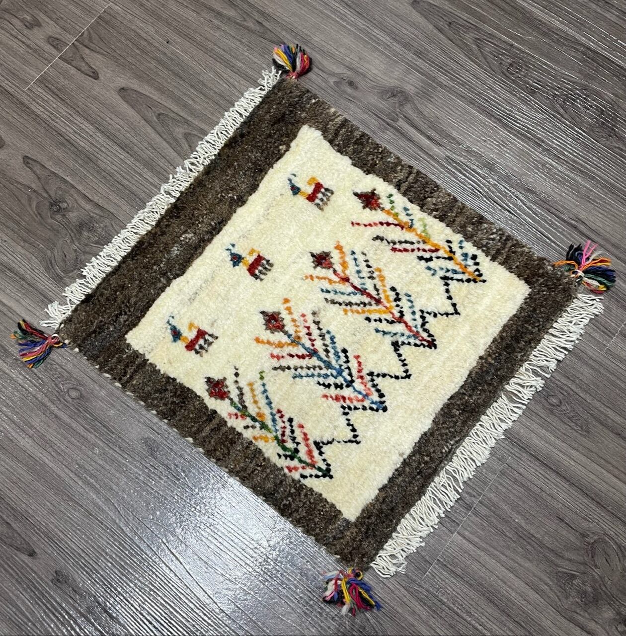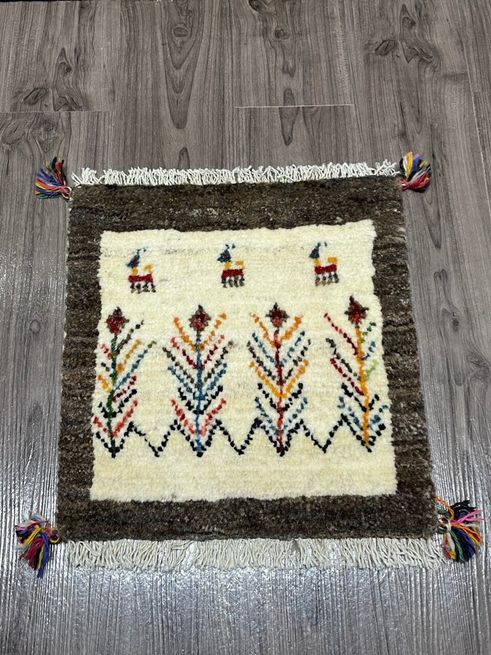 新品 ペルシャ絨毯 手織り ギャッベ 41×40cm ナチュラル 山羊 生命の木 座布団ギャッベ