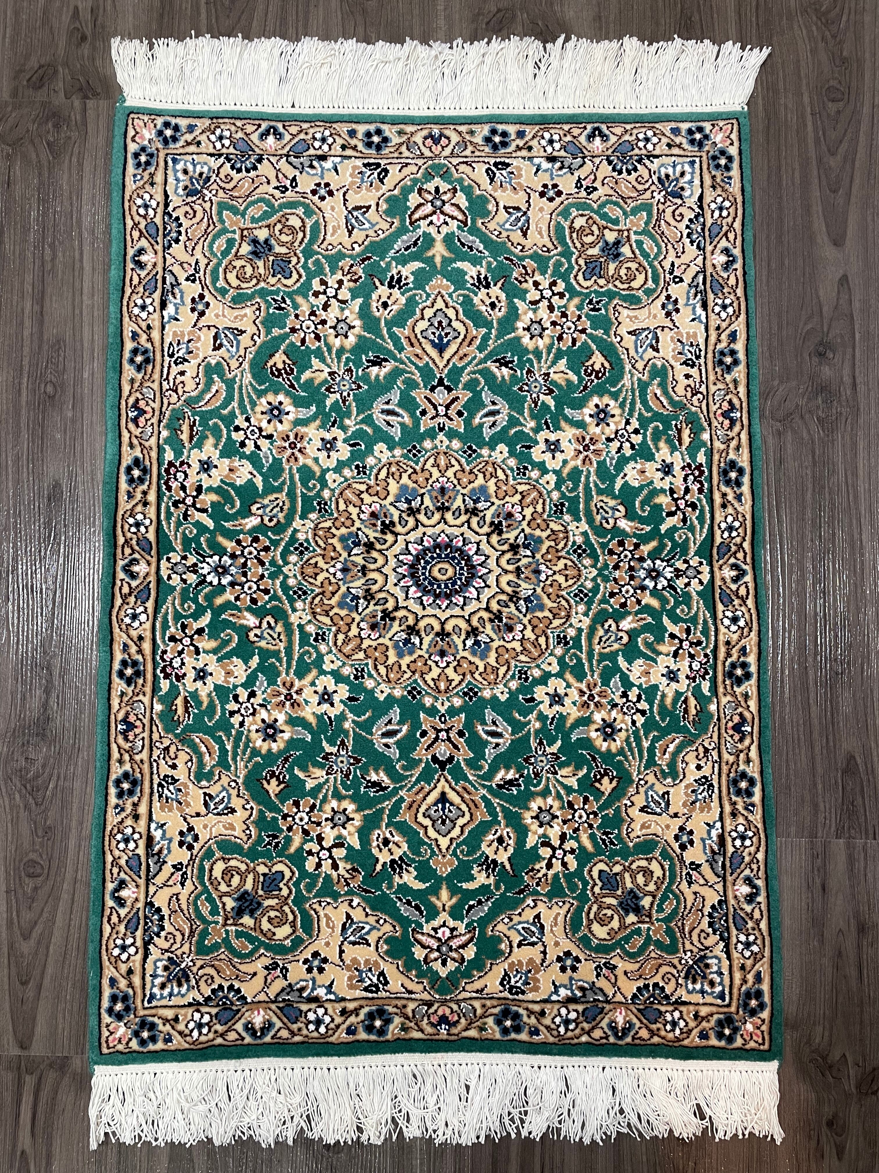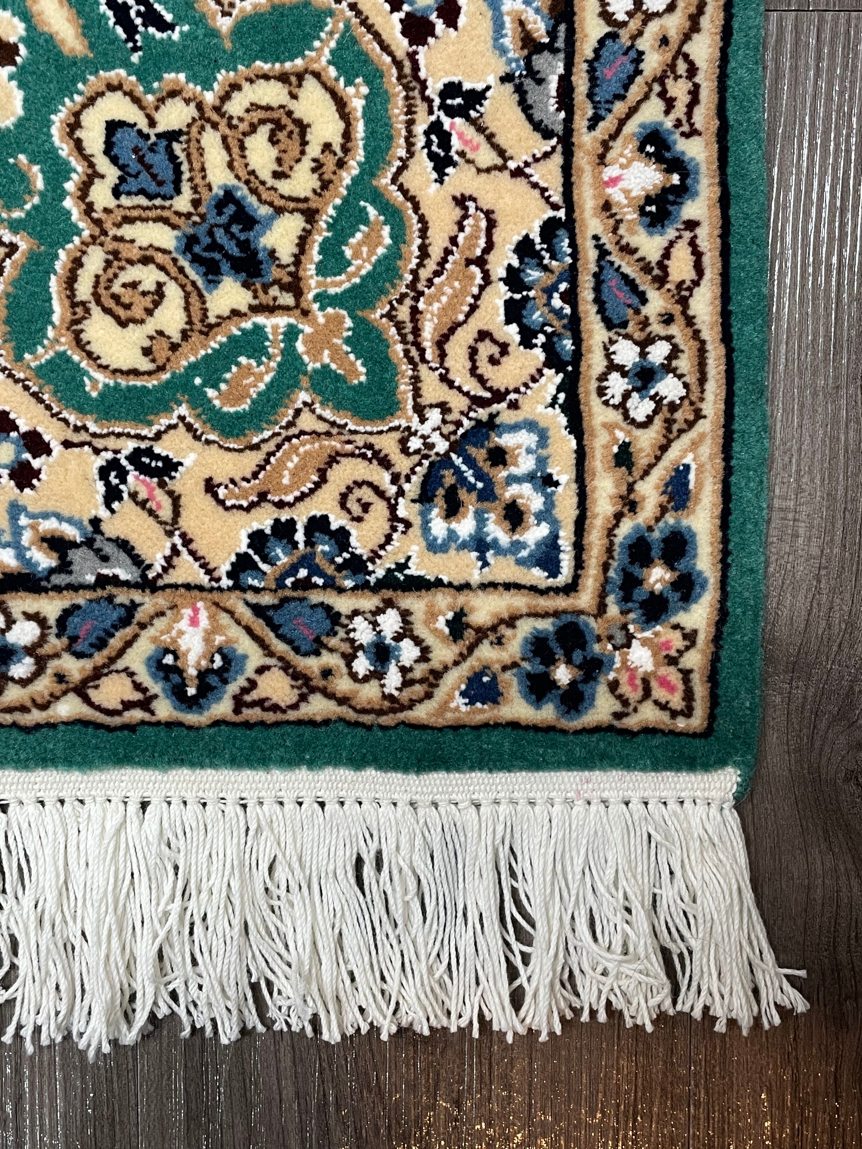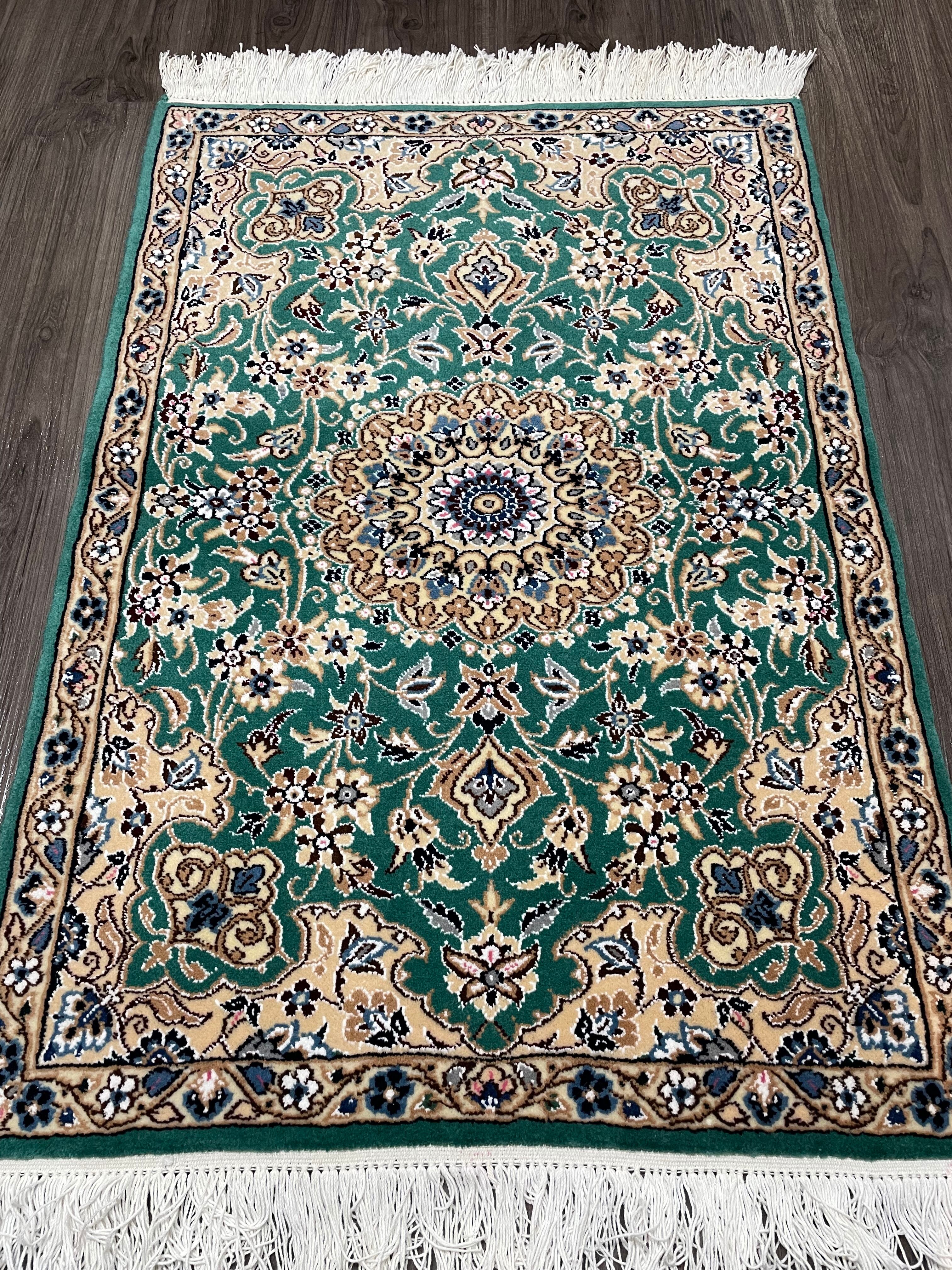 新品 手織り ペルシャ絨毯 ナイン産 9la グリーン