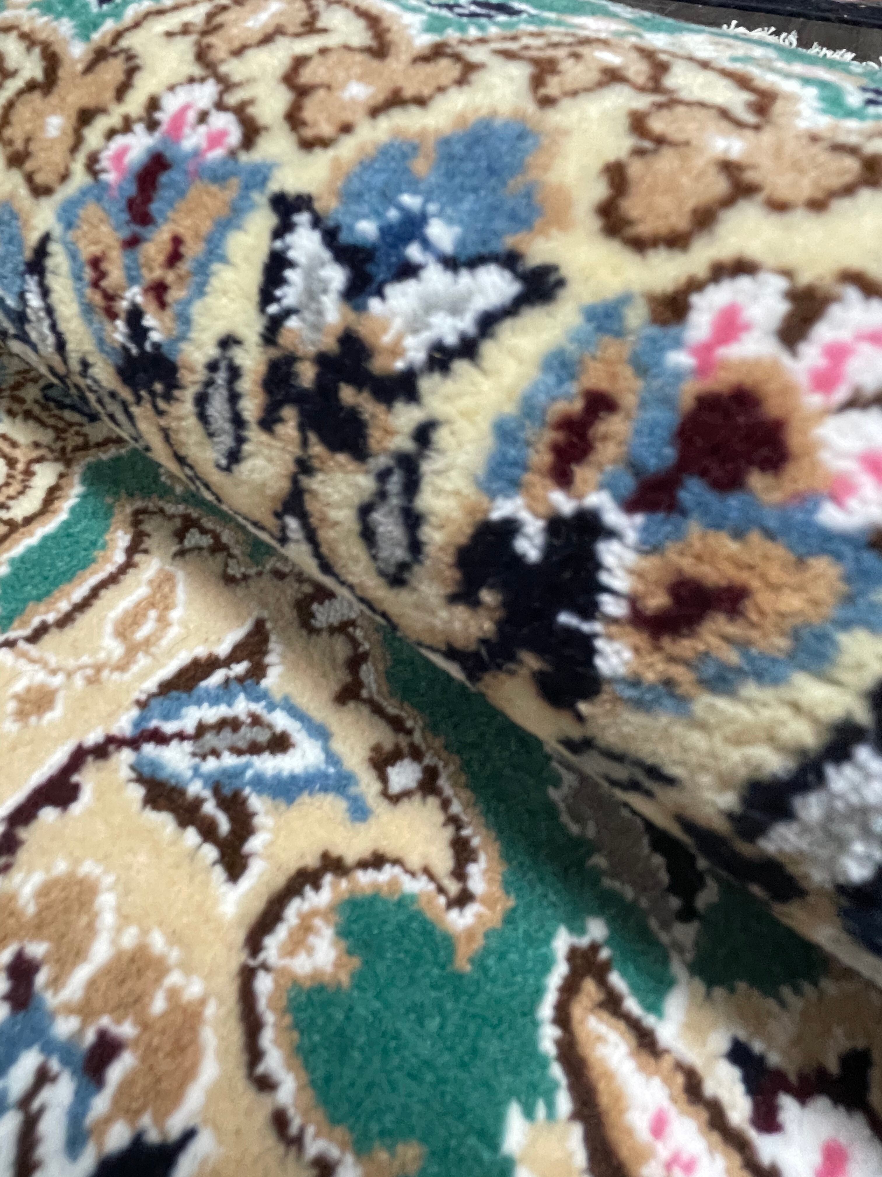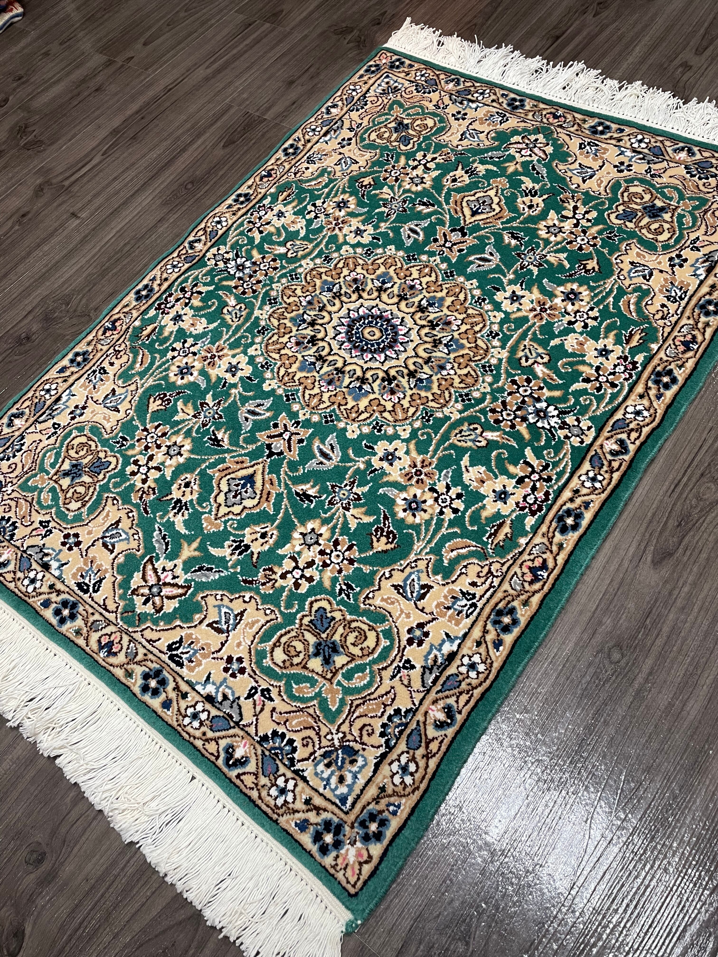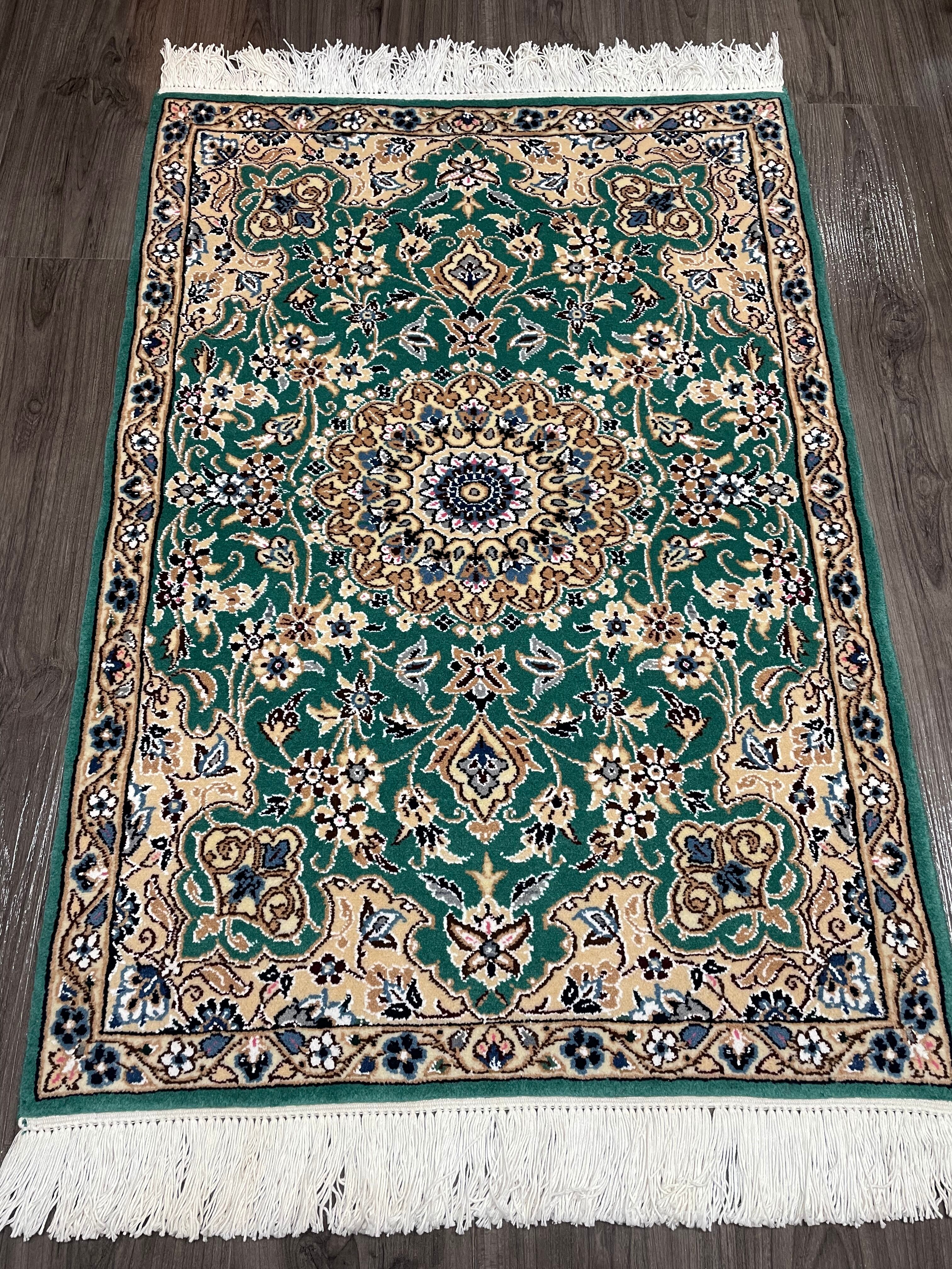 新品 手織り ペルシャ絨毯 ナイン産 9la グリーン