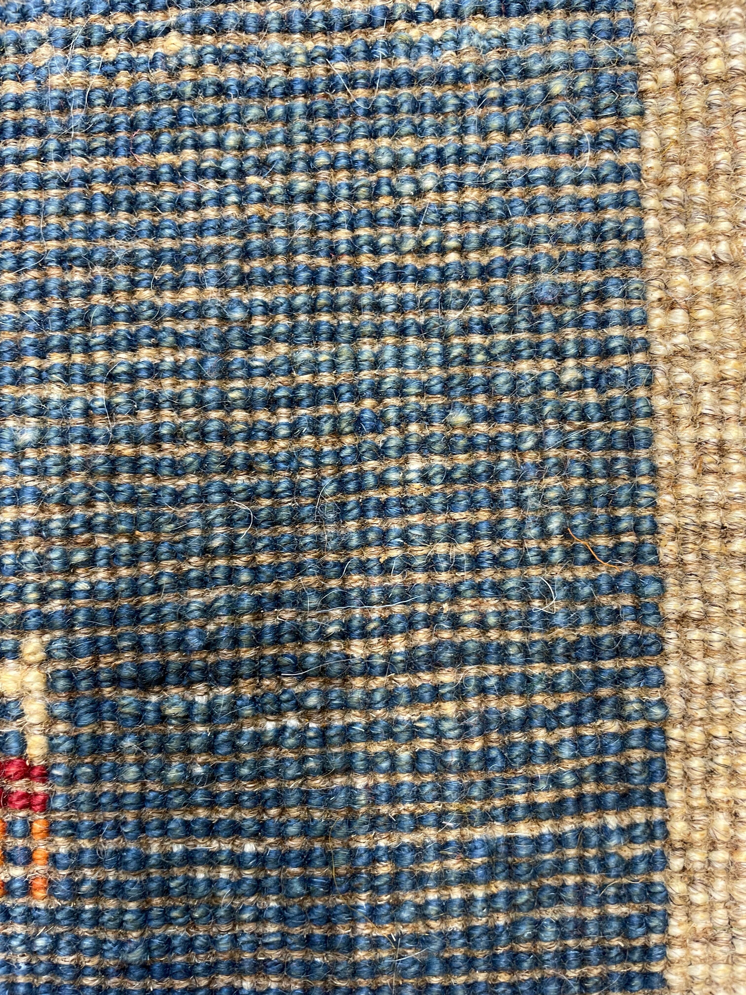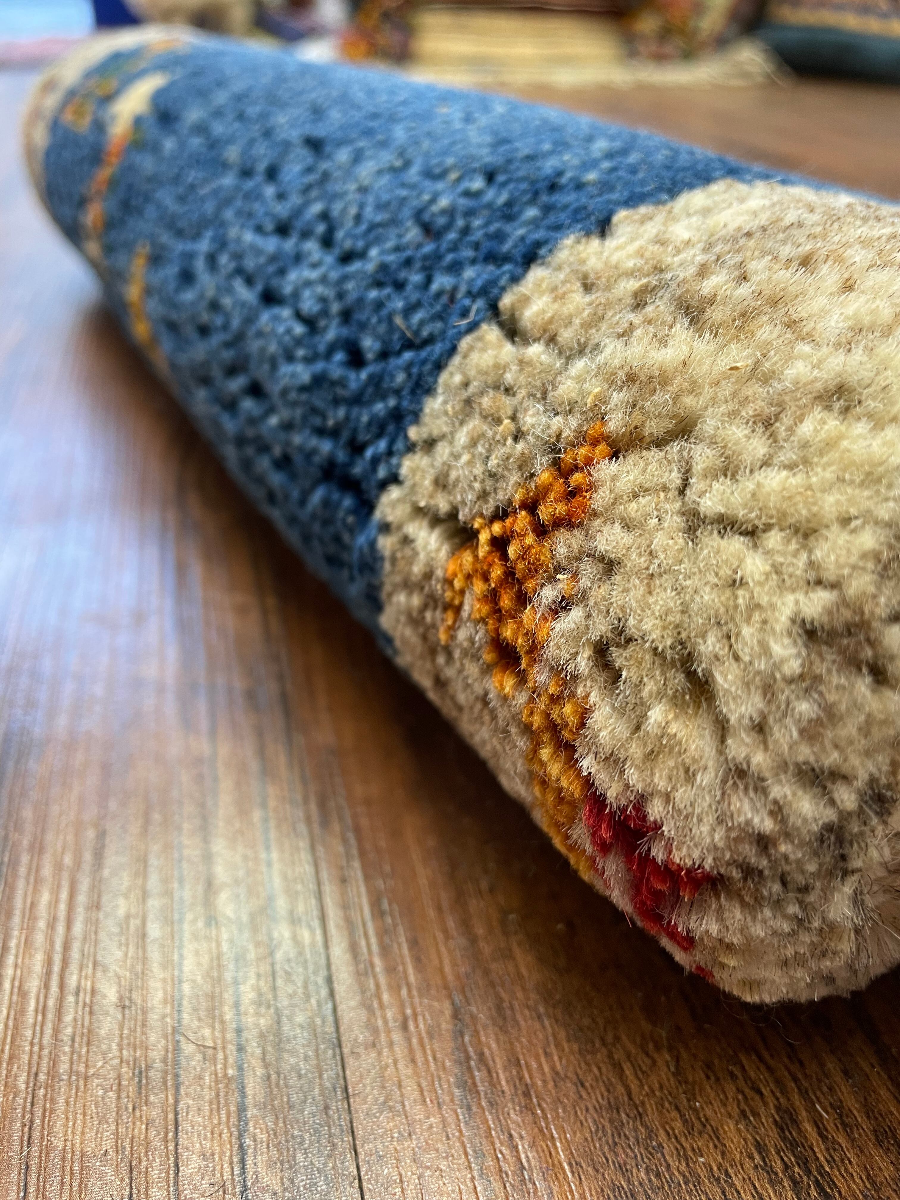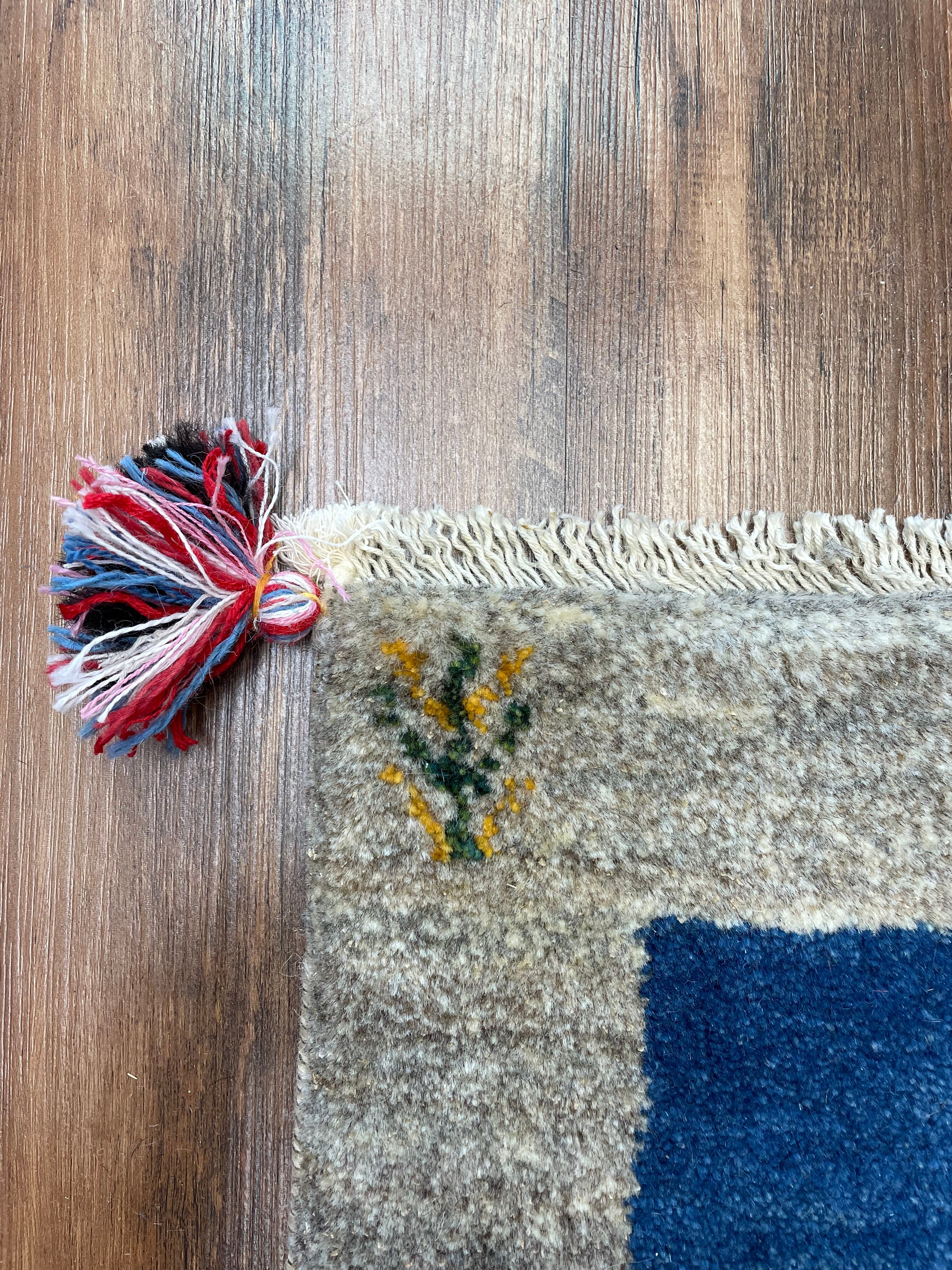 新品 ペルシャ絨毯 手織り ギャッベ 40×41cm ナチュラル 青 山羊
