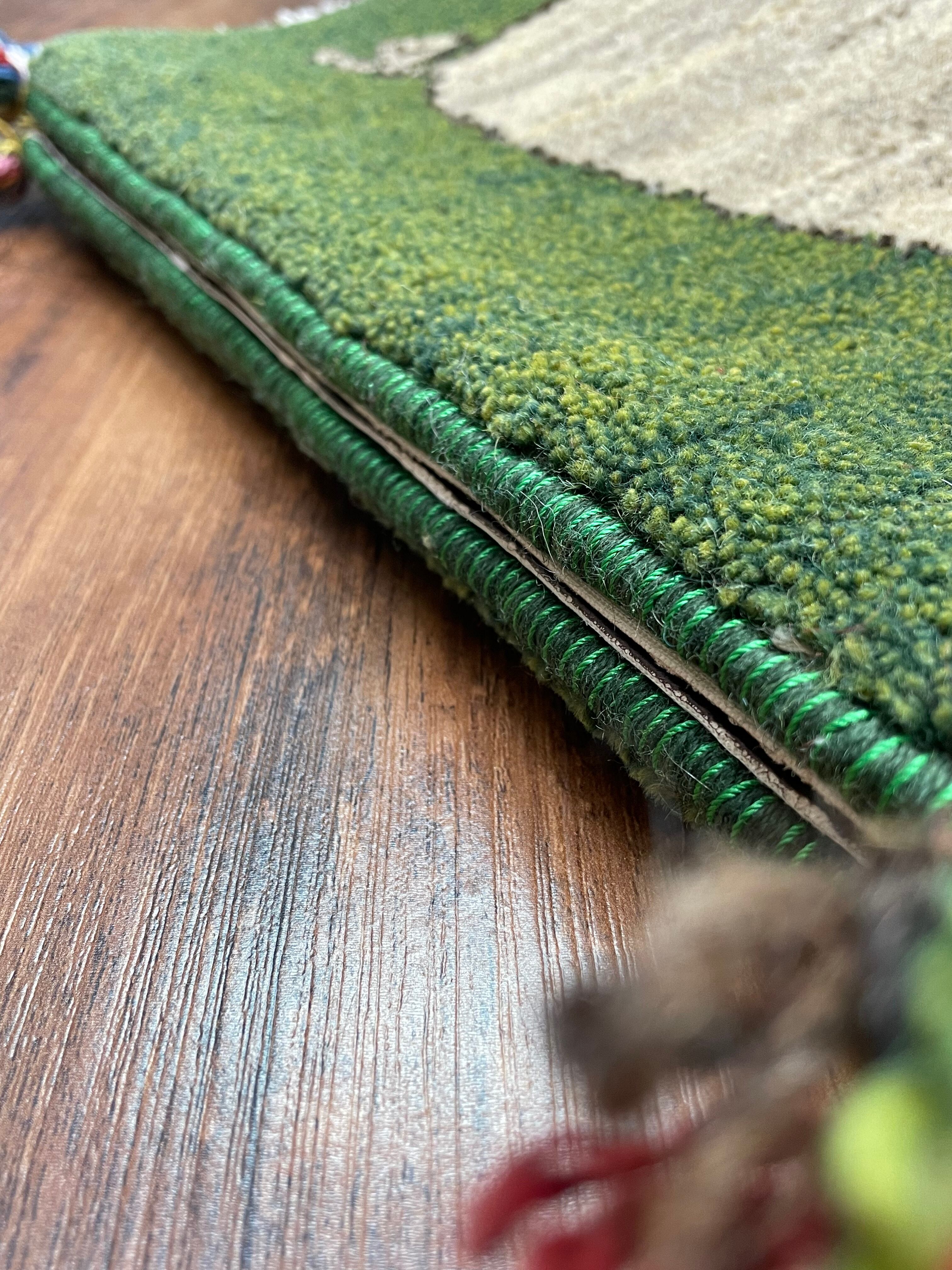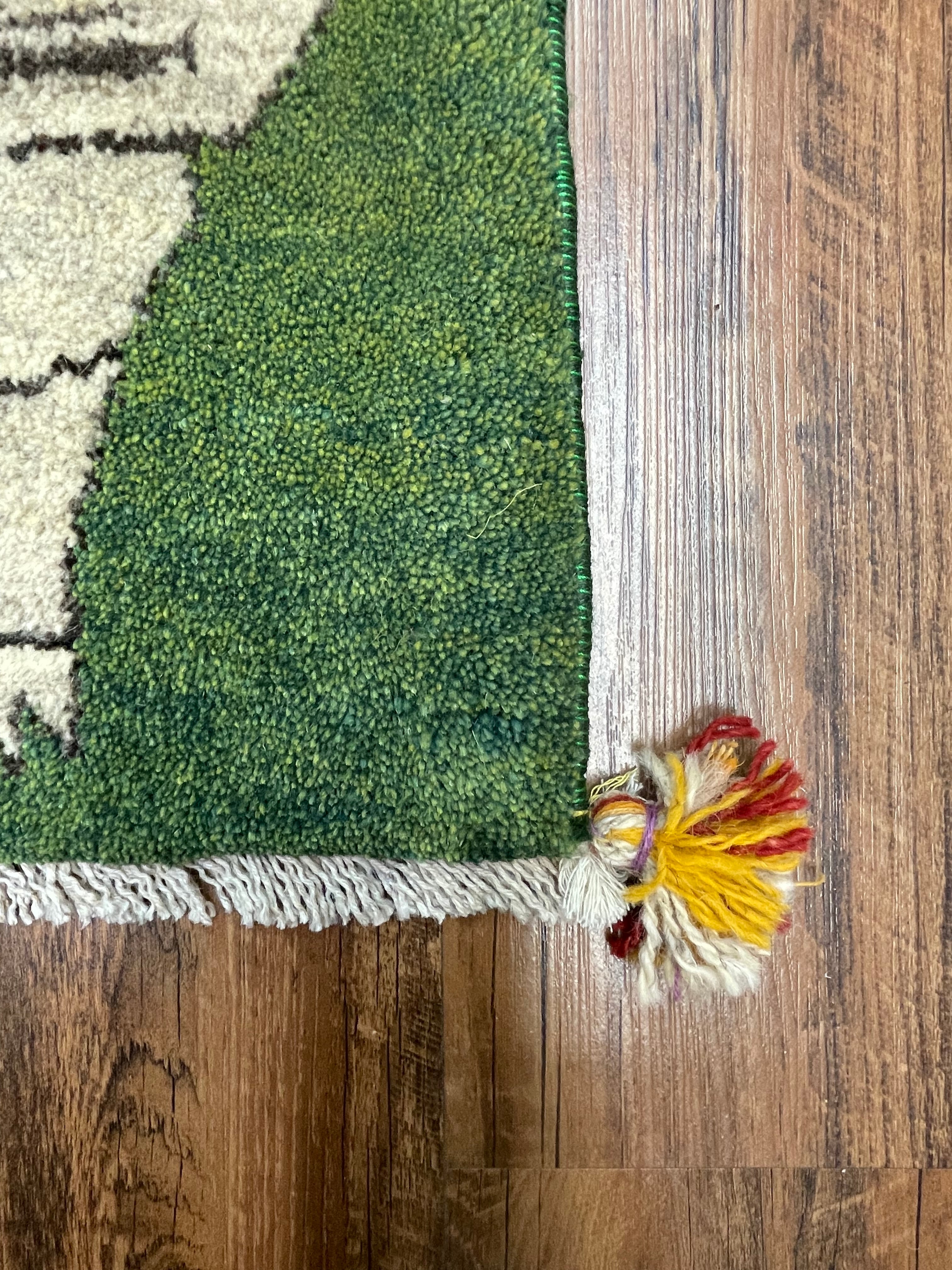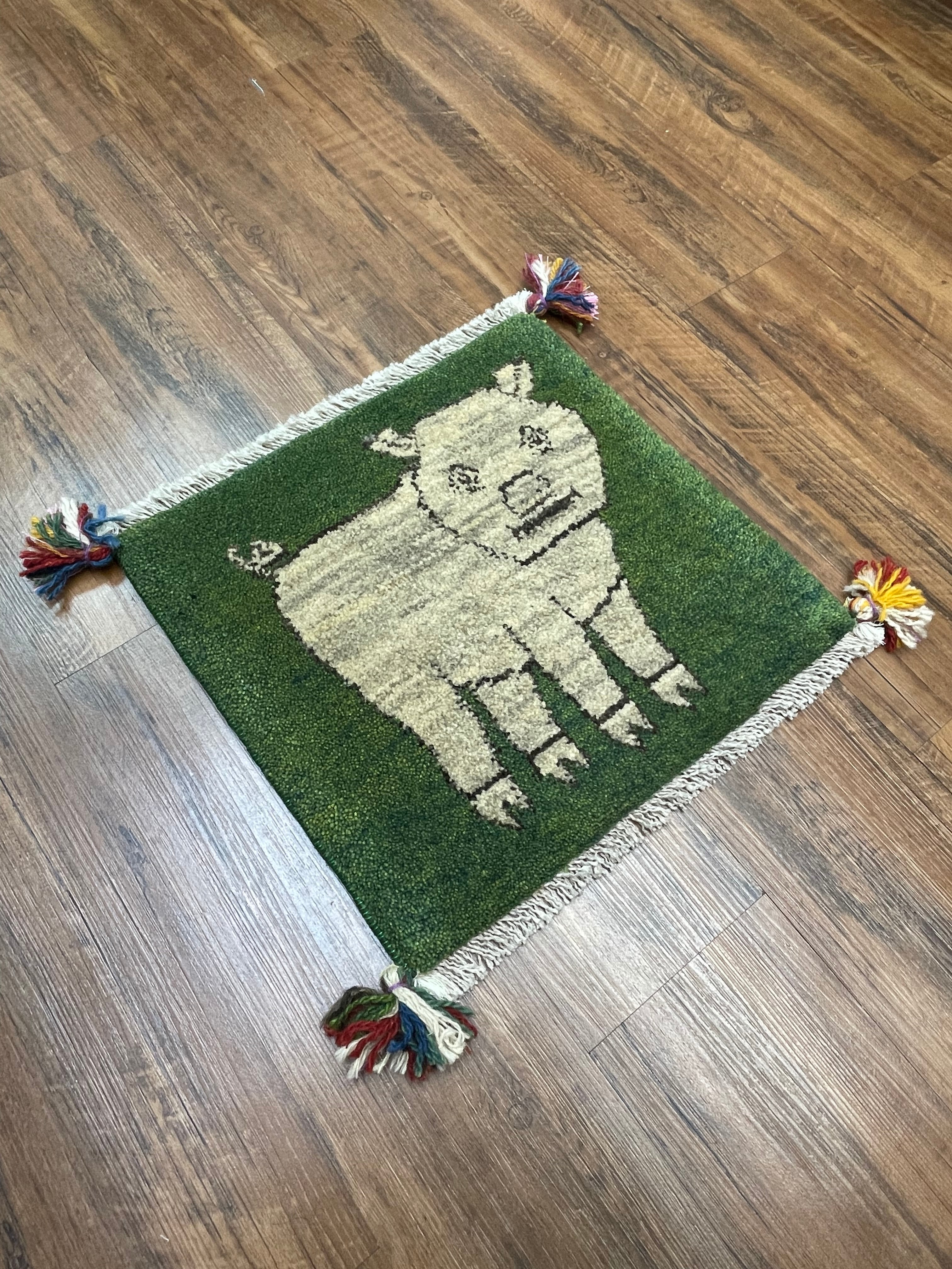 新品 ペルシャ絨毯 手織り ギャッベ 座布団サイズ 39×41cm 緑色 ブタ