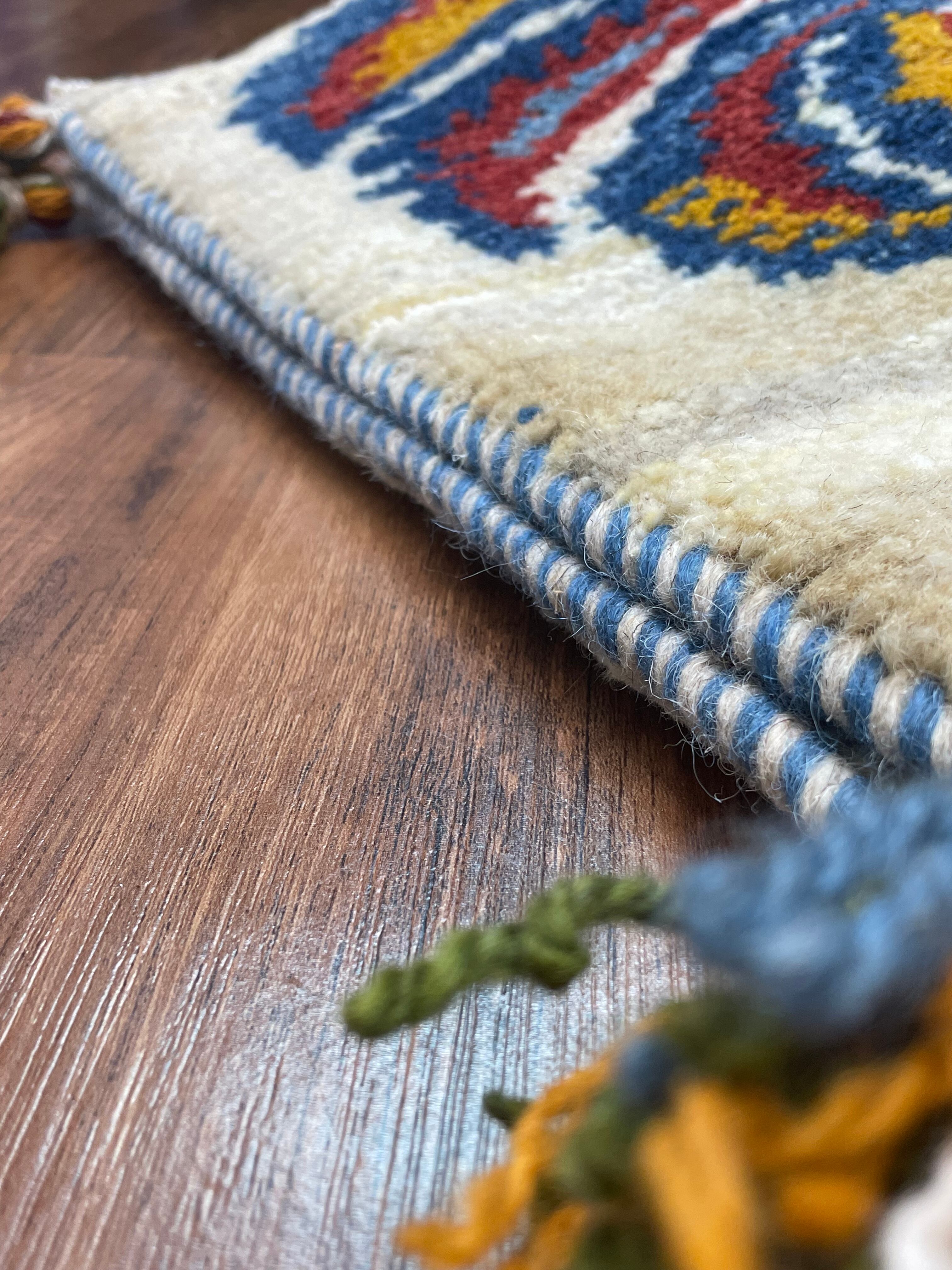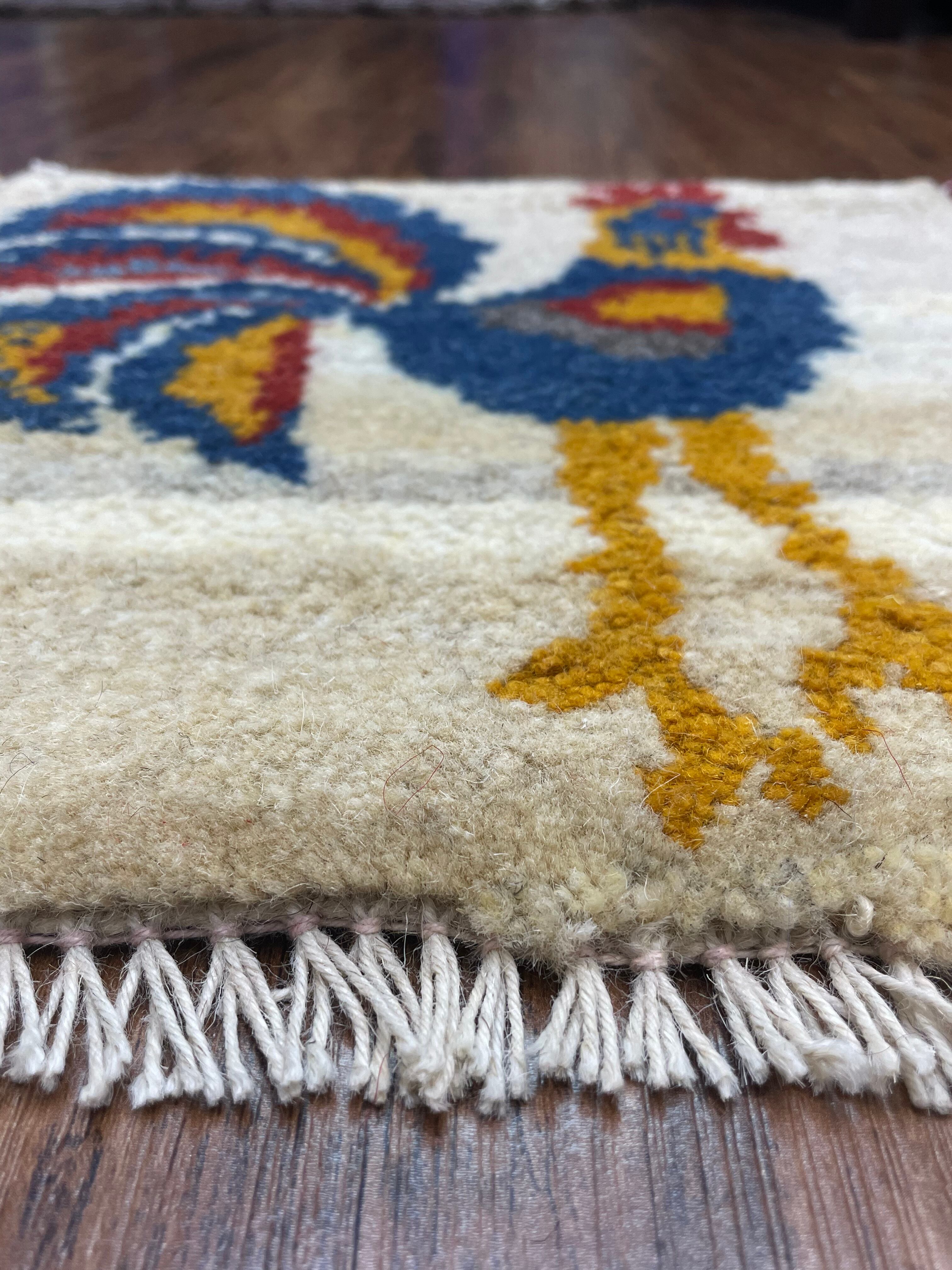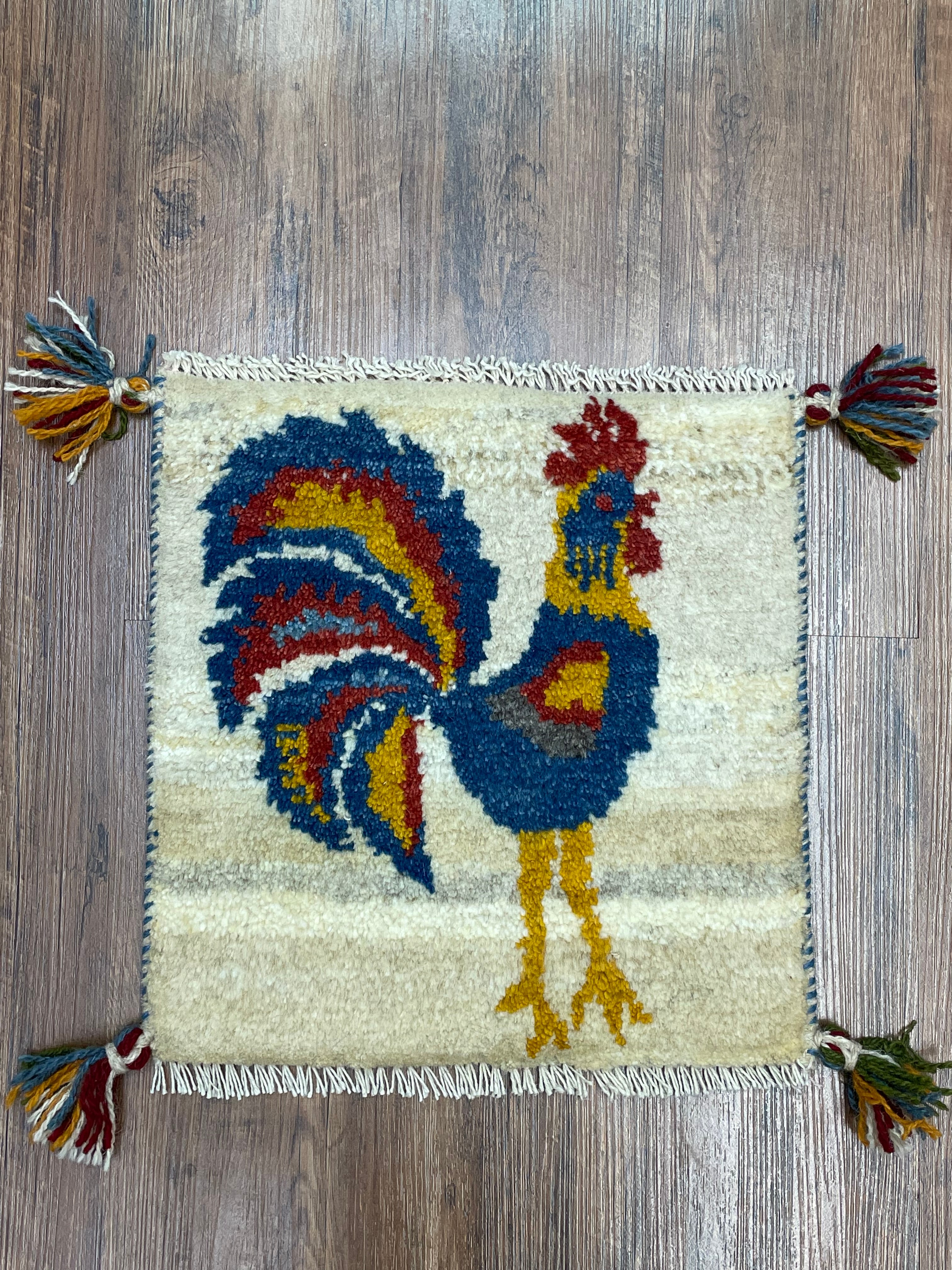 新品 ペルシャ絨毯 手織り ギャッベ 38×38cm ナチュラル 鶏 座布団サイズ