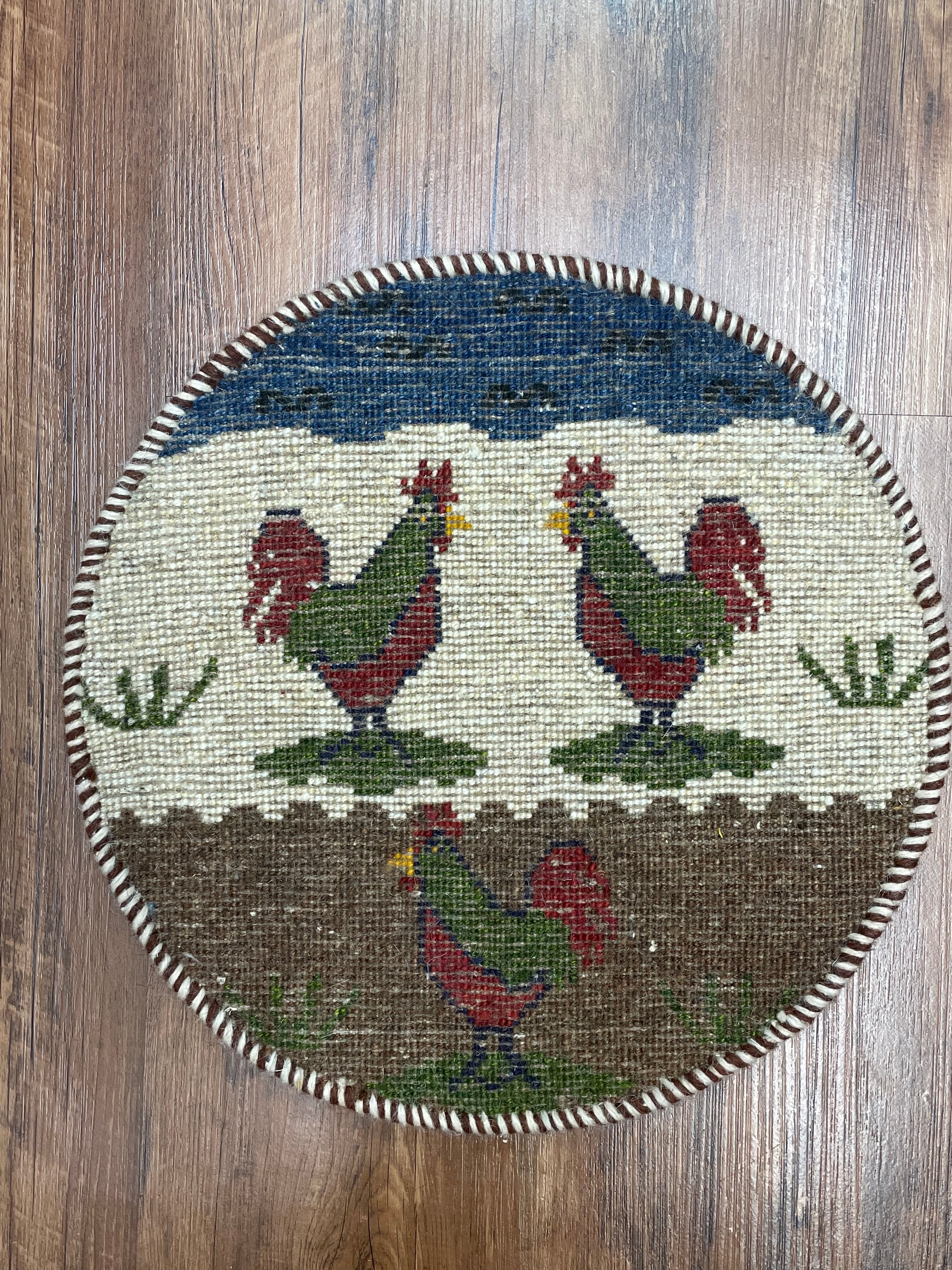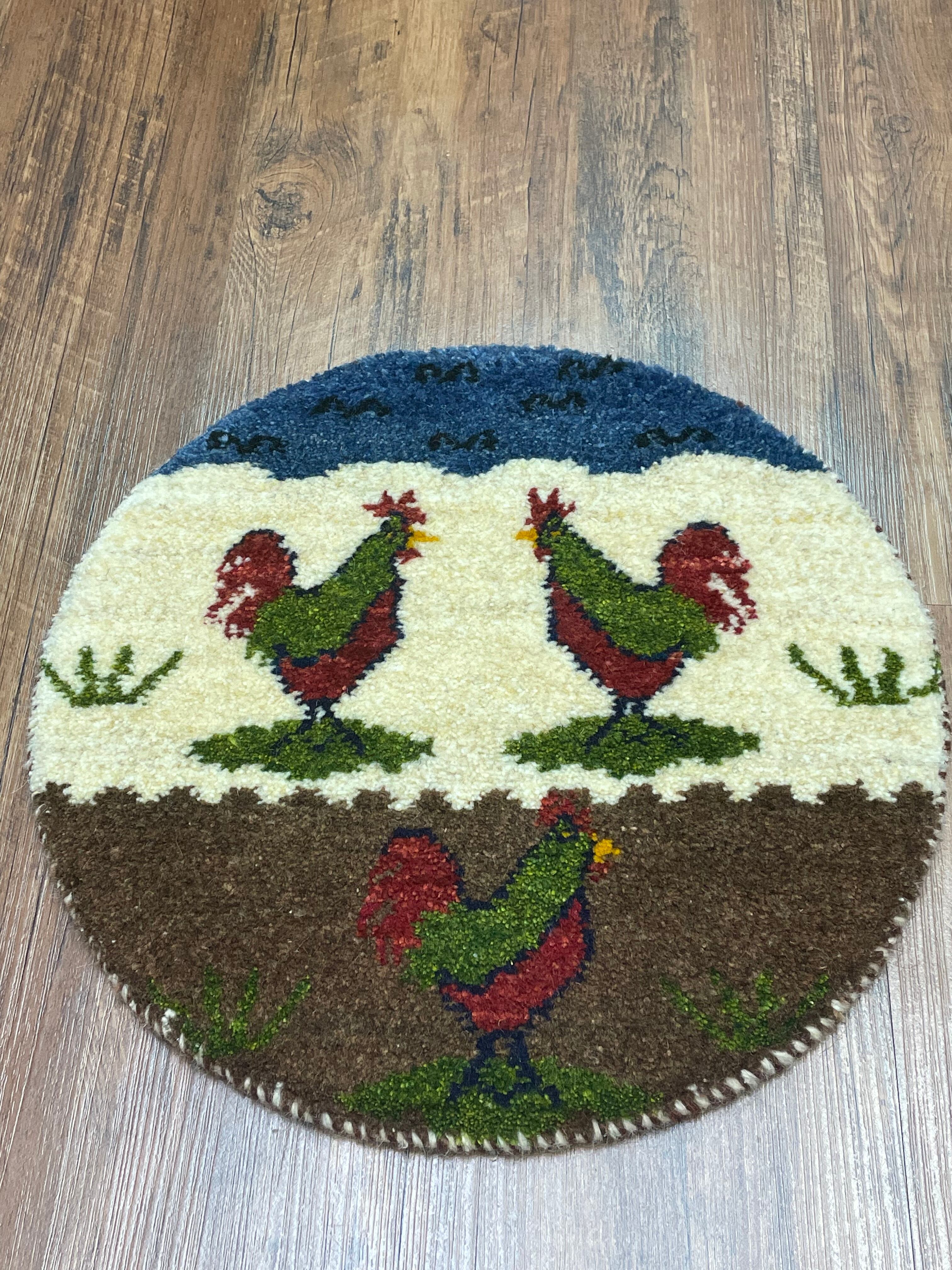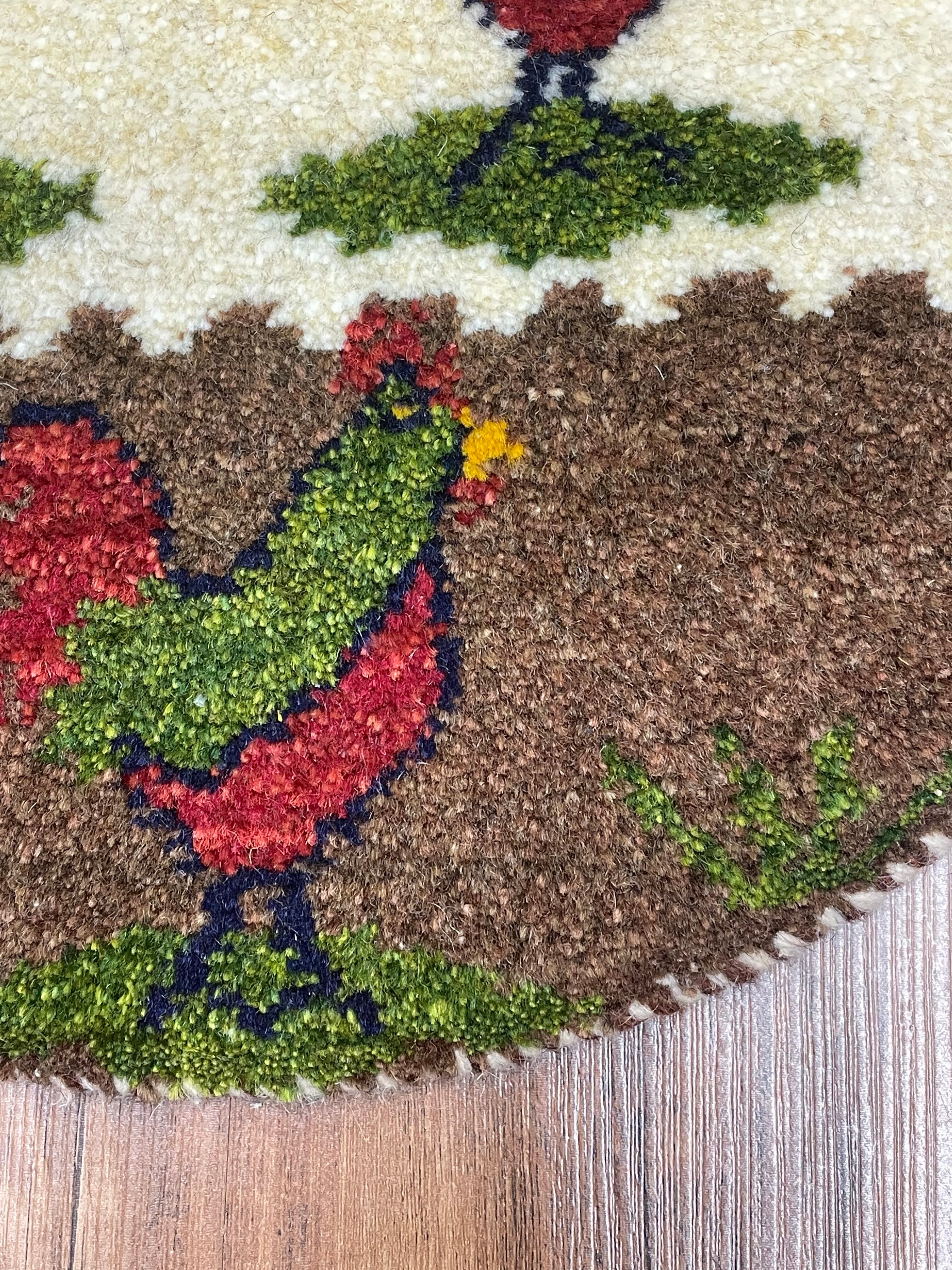 新品 ペルシャ絨毯 手織り ギャッベ 円形 39cm ニワトリ 風景