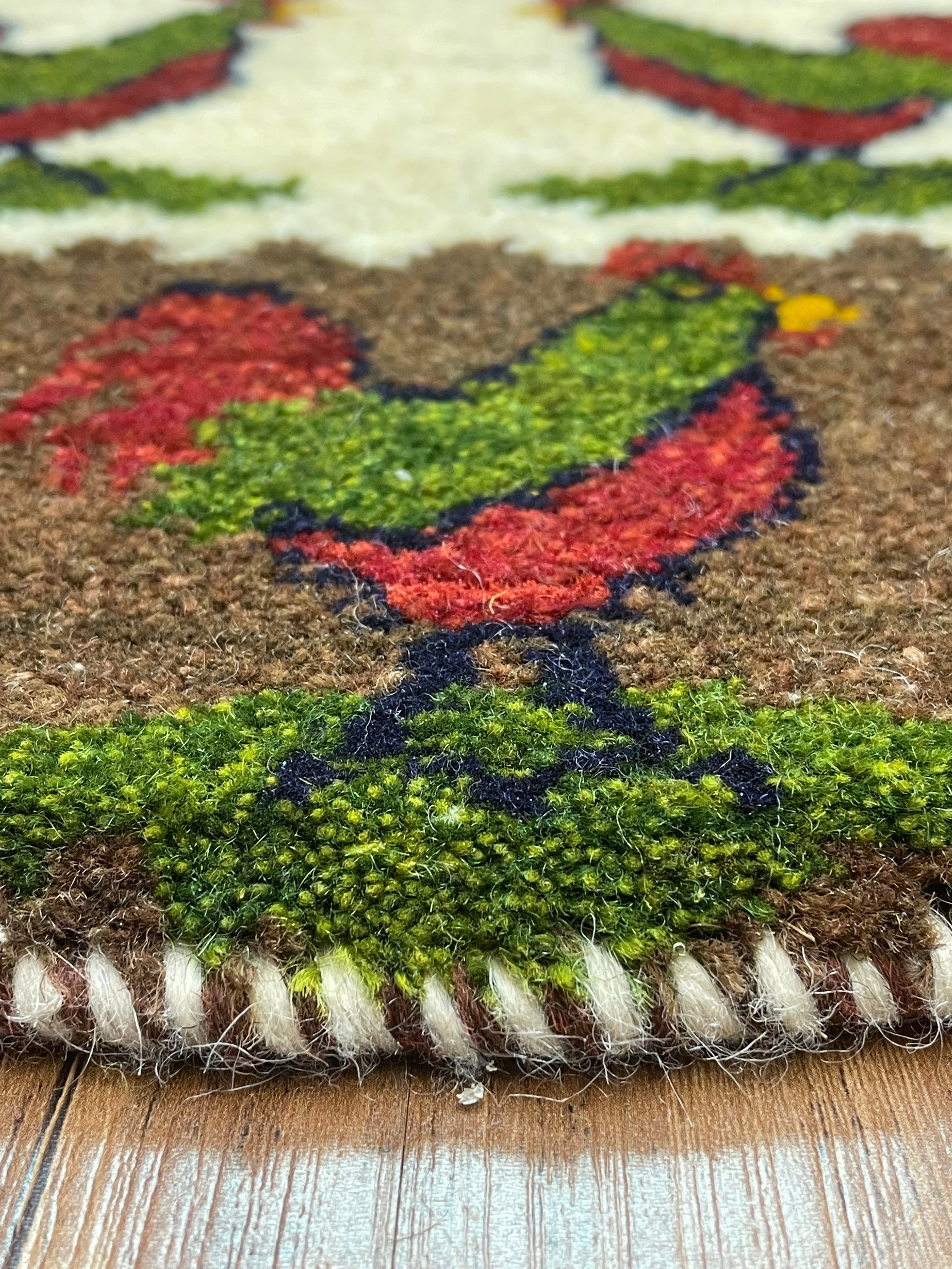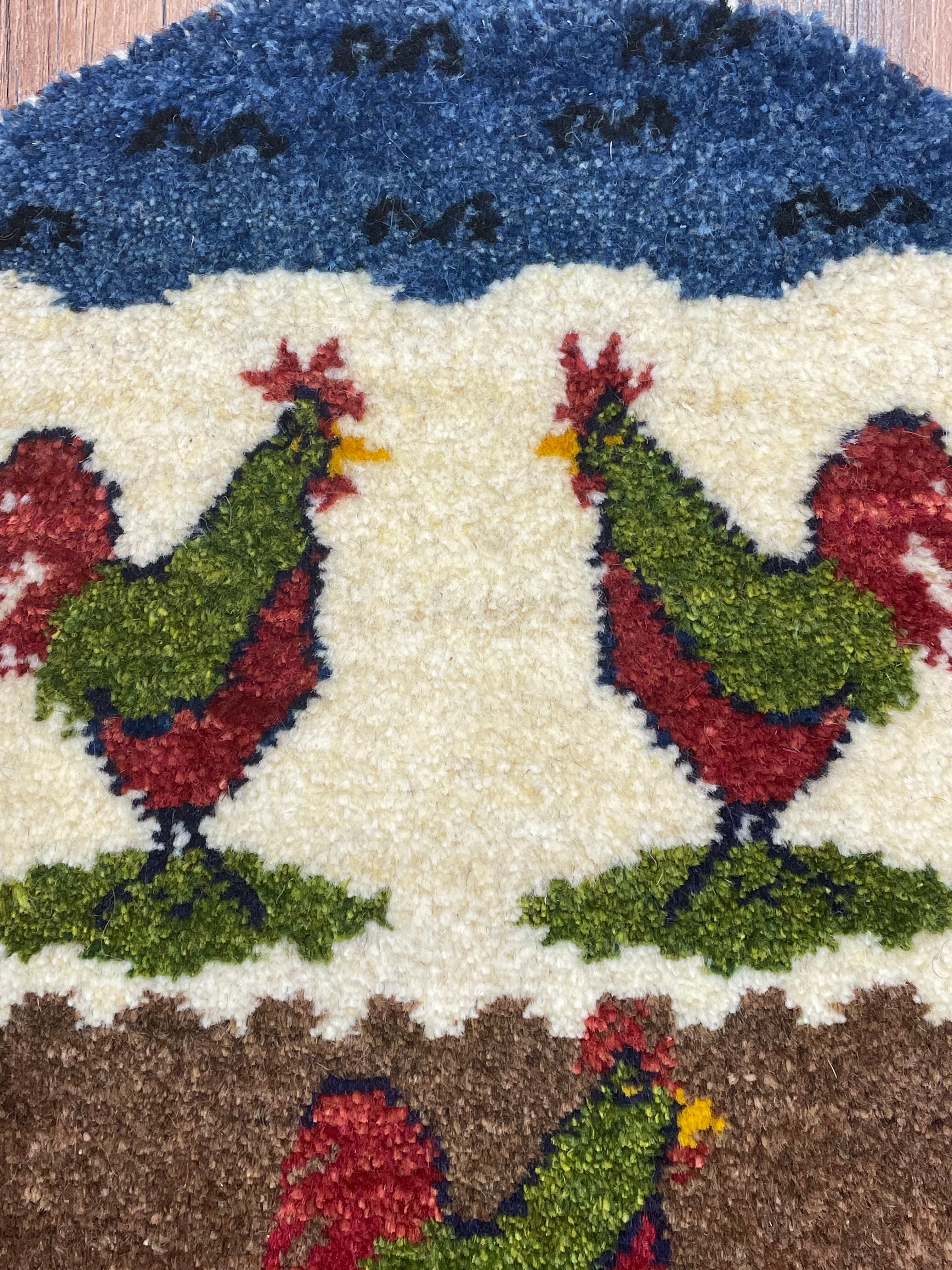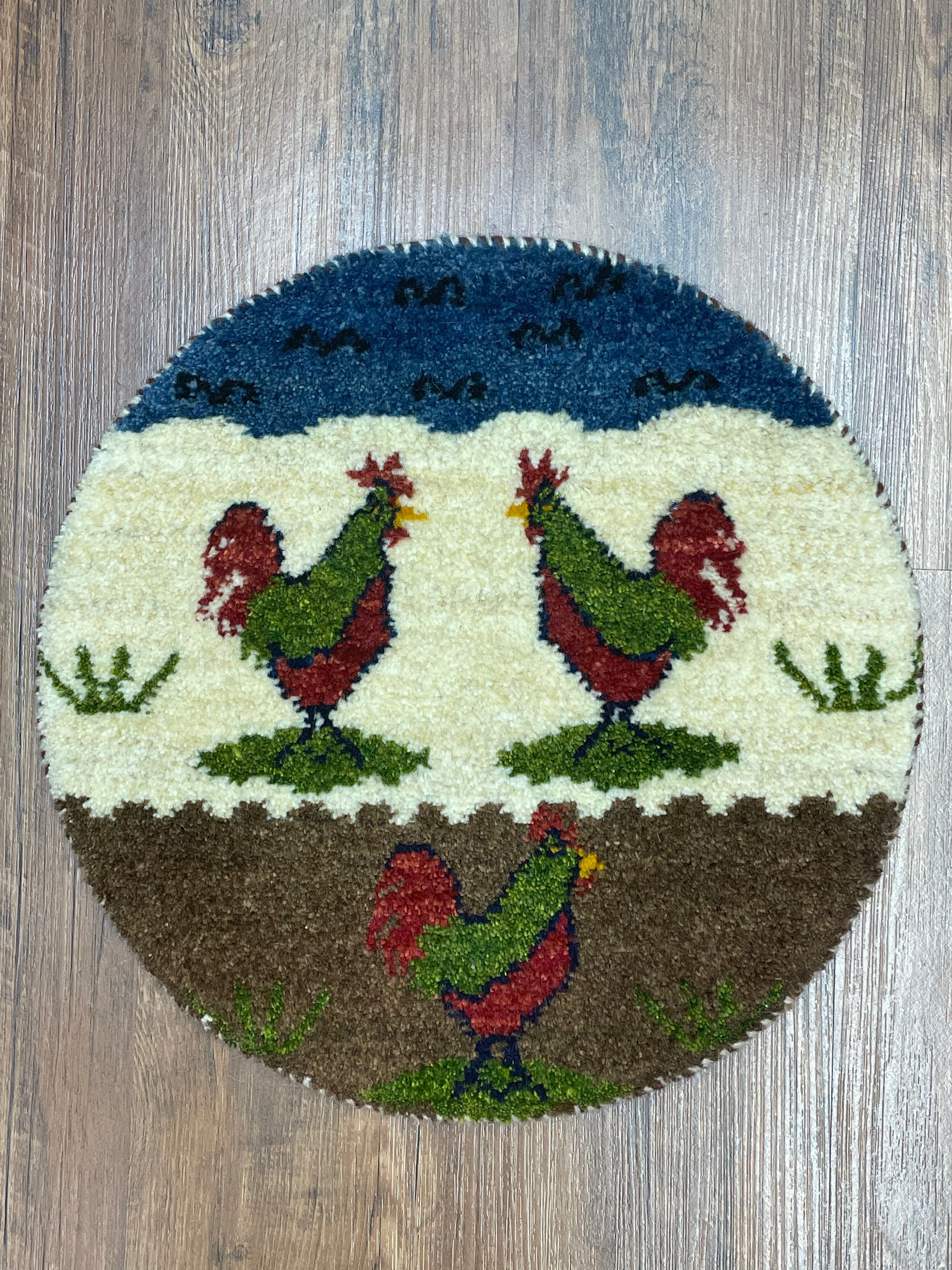 新品 ペルシャ絨毯 手織り ギャッベ 円形 39cm ニワトリ 風景