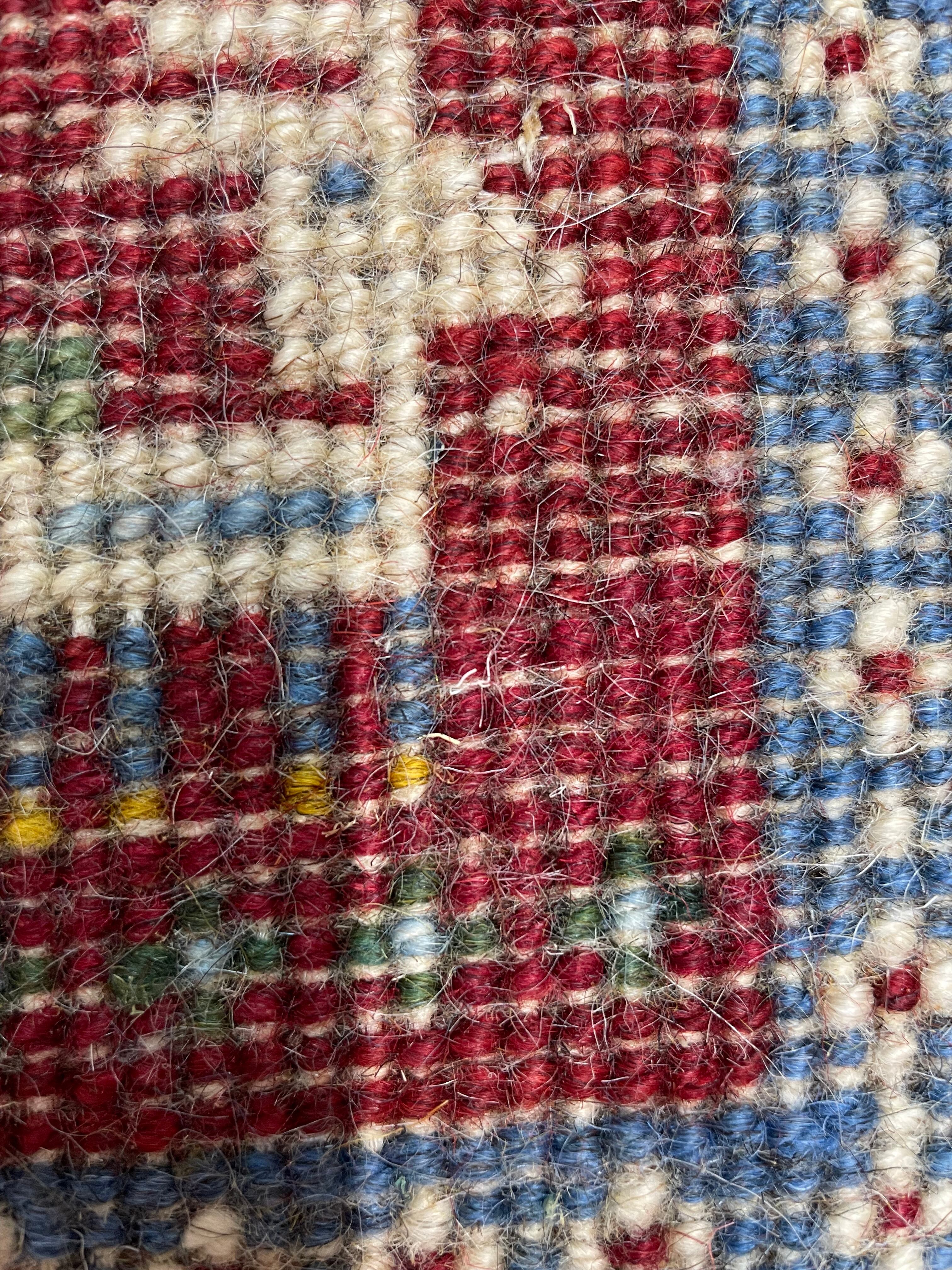 イランのギャッべの特徴は遊牧民の暮らしている地域は夏冬の温度差が大きい事に加え乾燥地帯であるため昼夜の温度差も大きい環境で育った羊の毛を刈り紡いで使っているので良質なウールで出来ていて手触りが良いです。