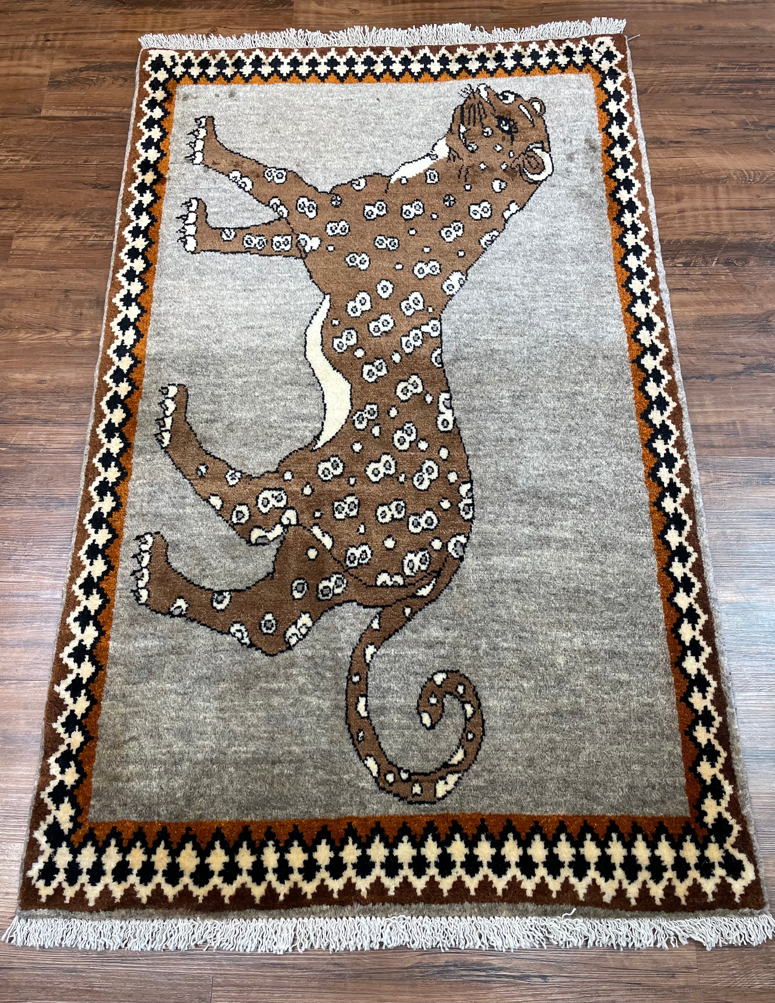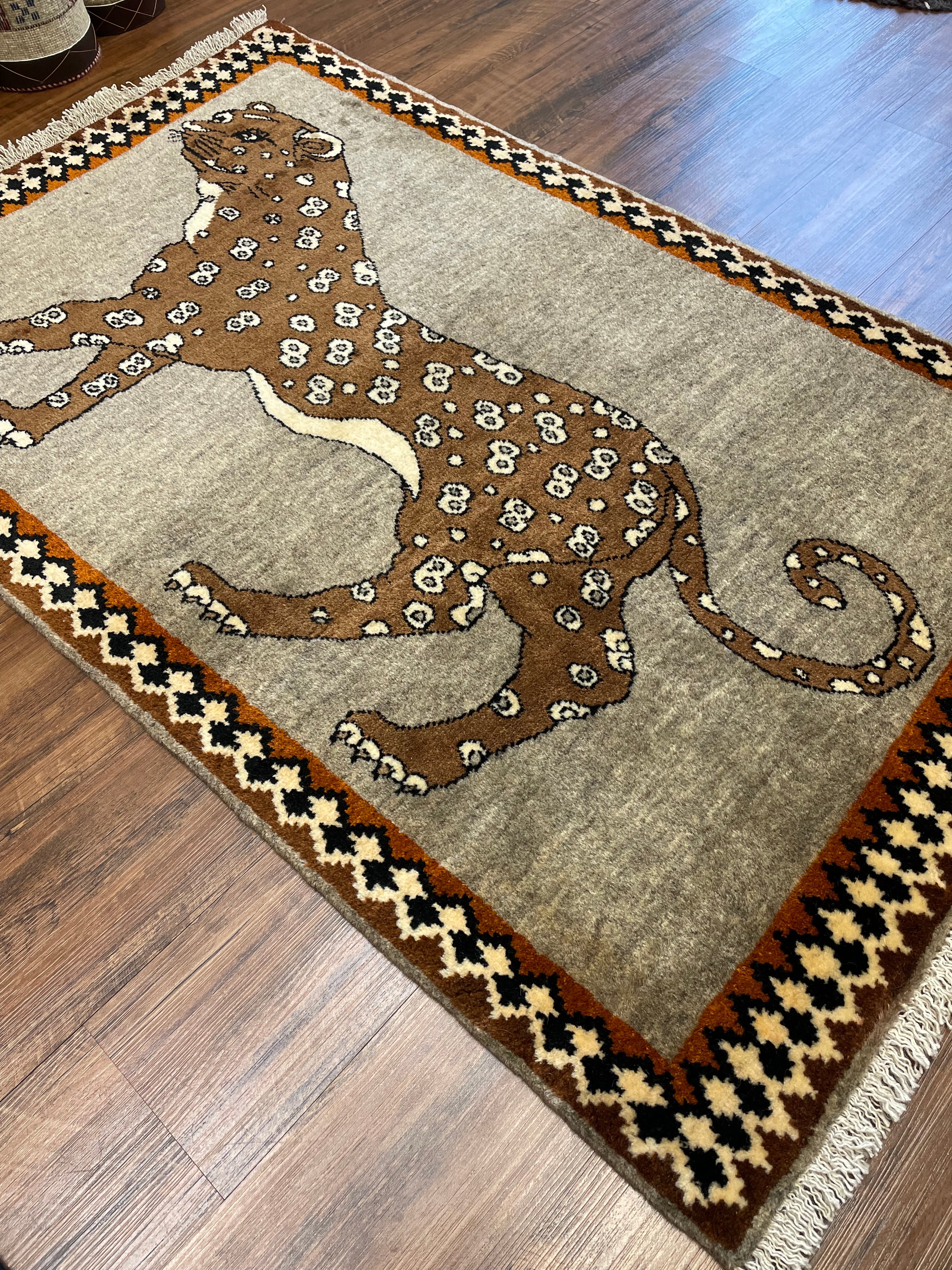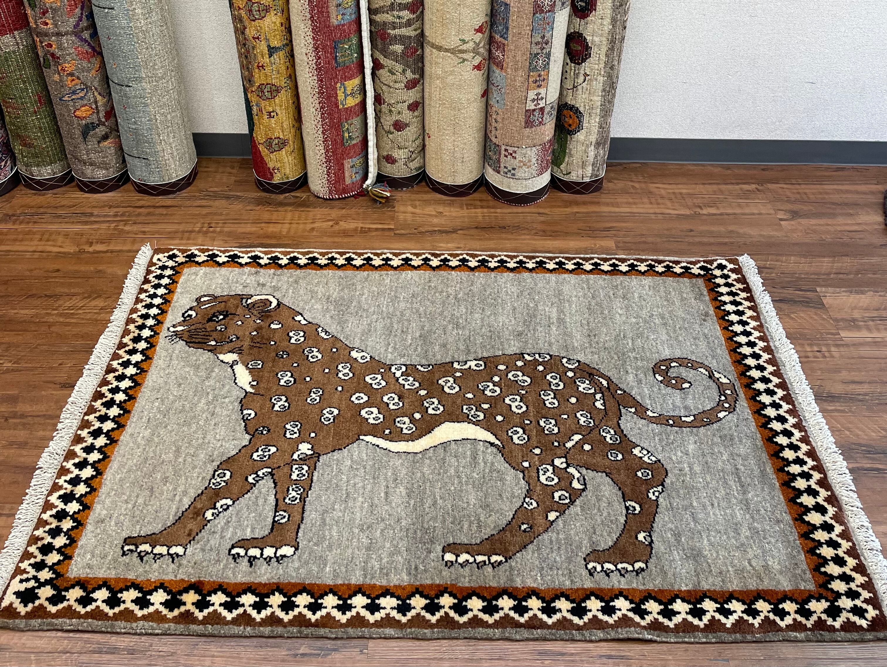 新品 ペルシャ絨毯 手織り ヤラメ ヒョウ柄 130×82cm ウール
