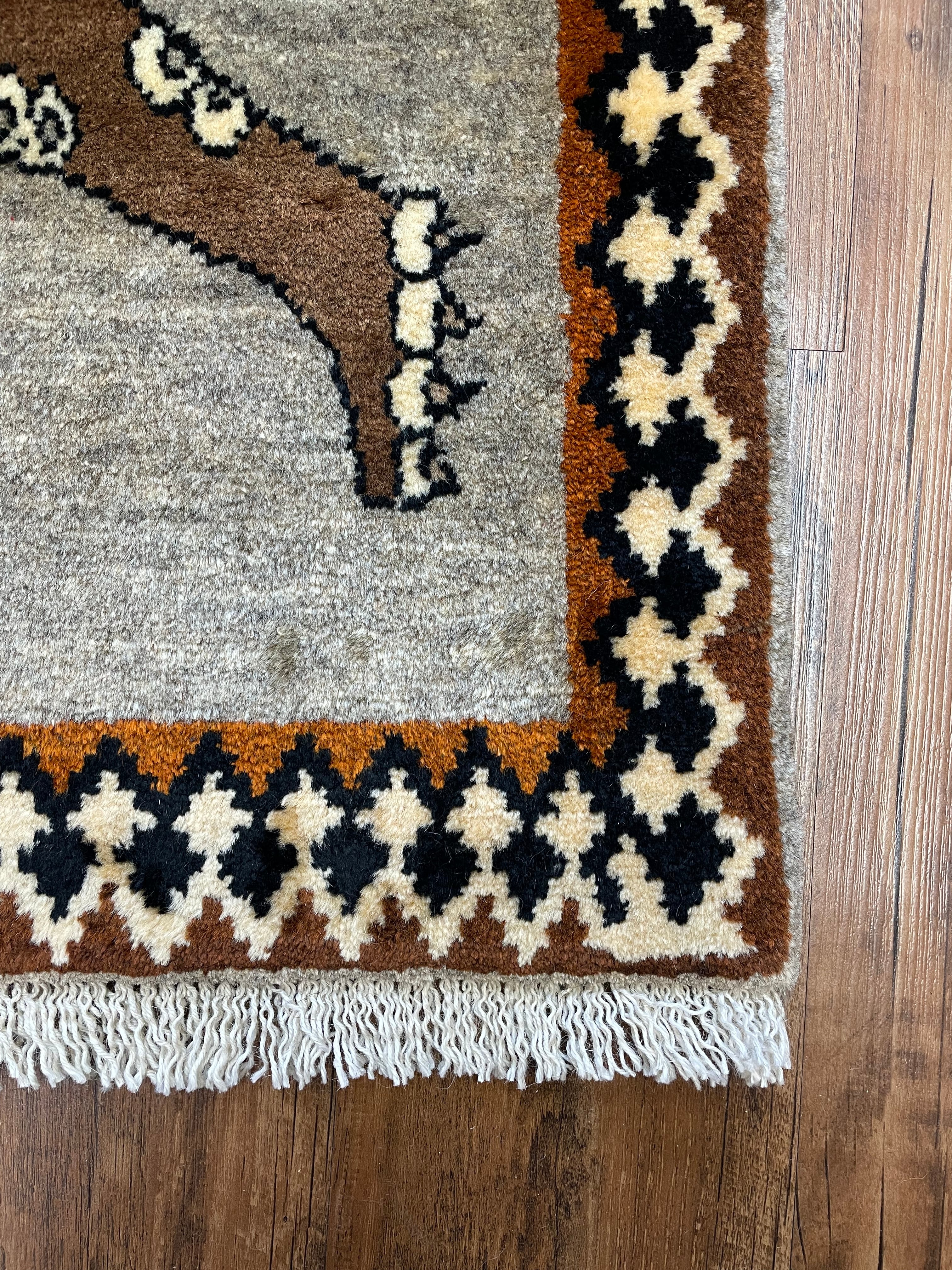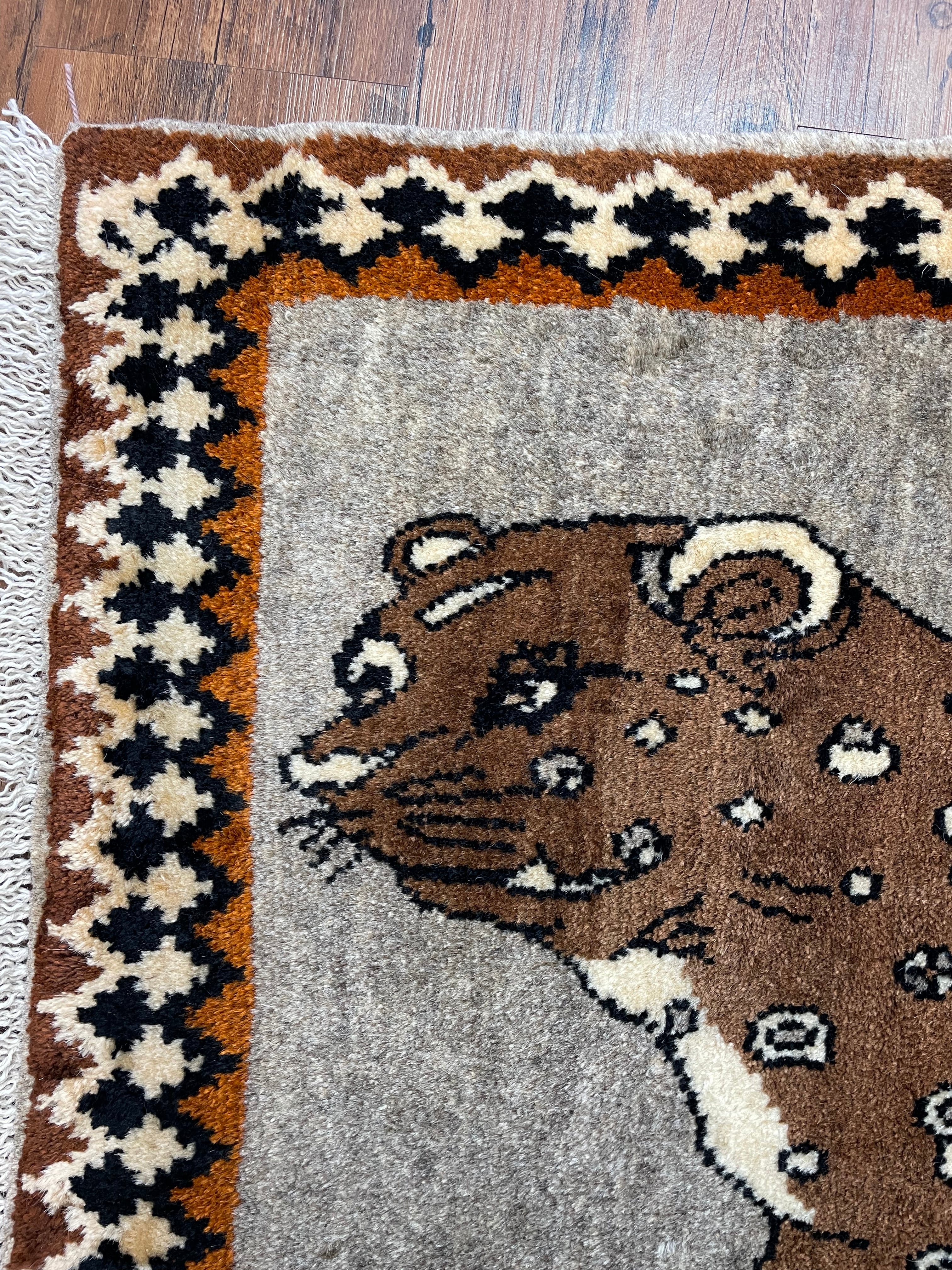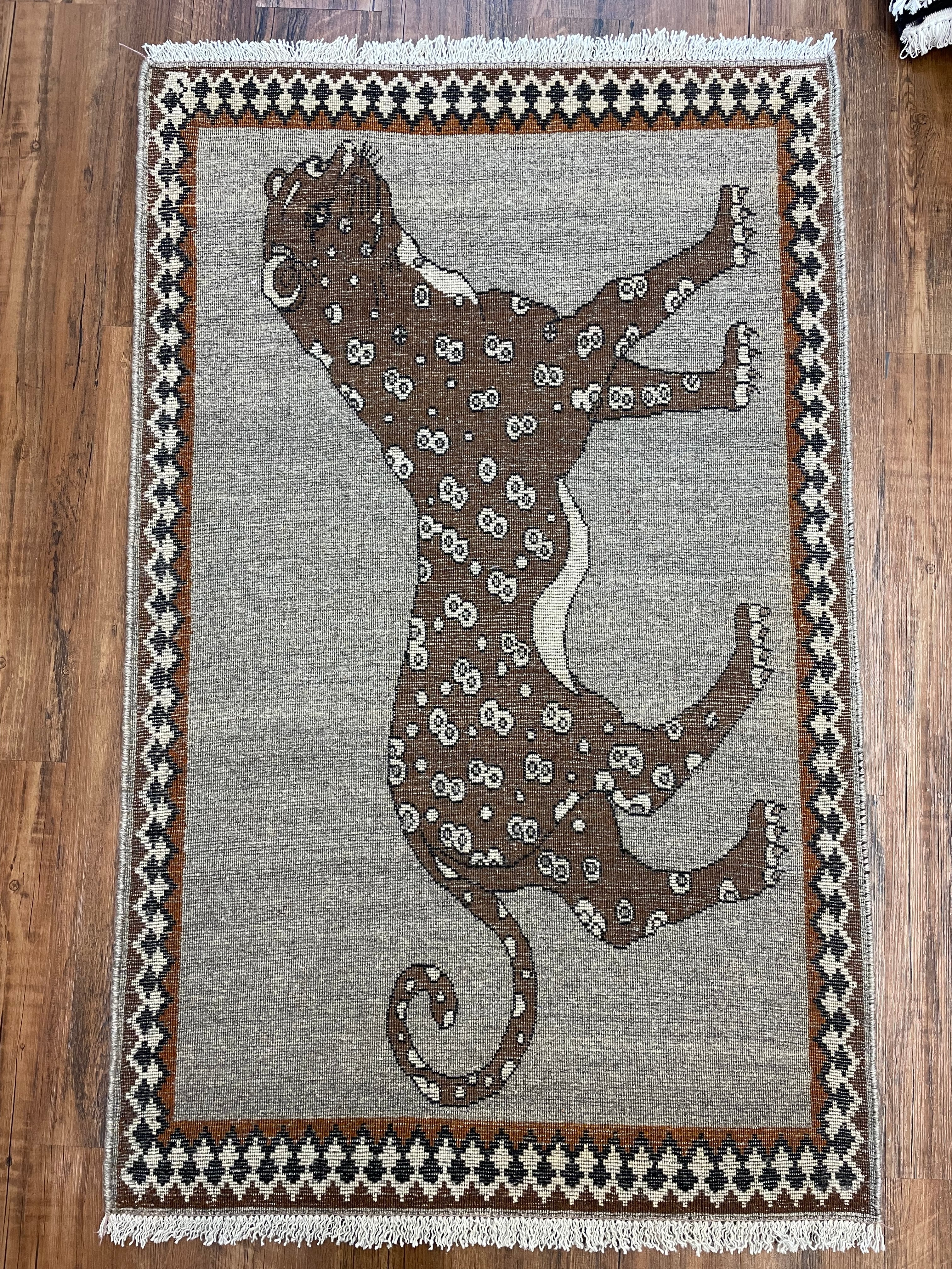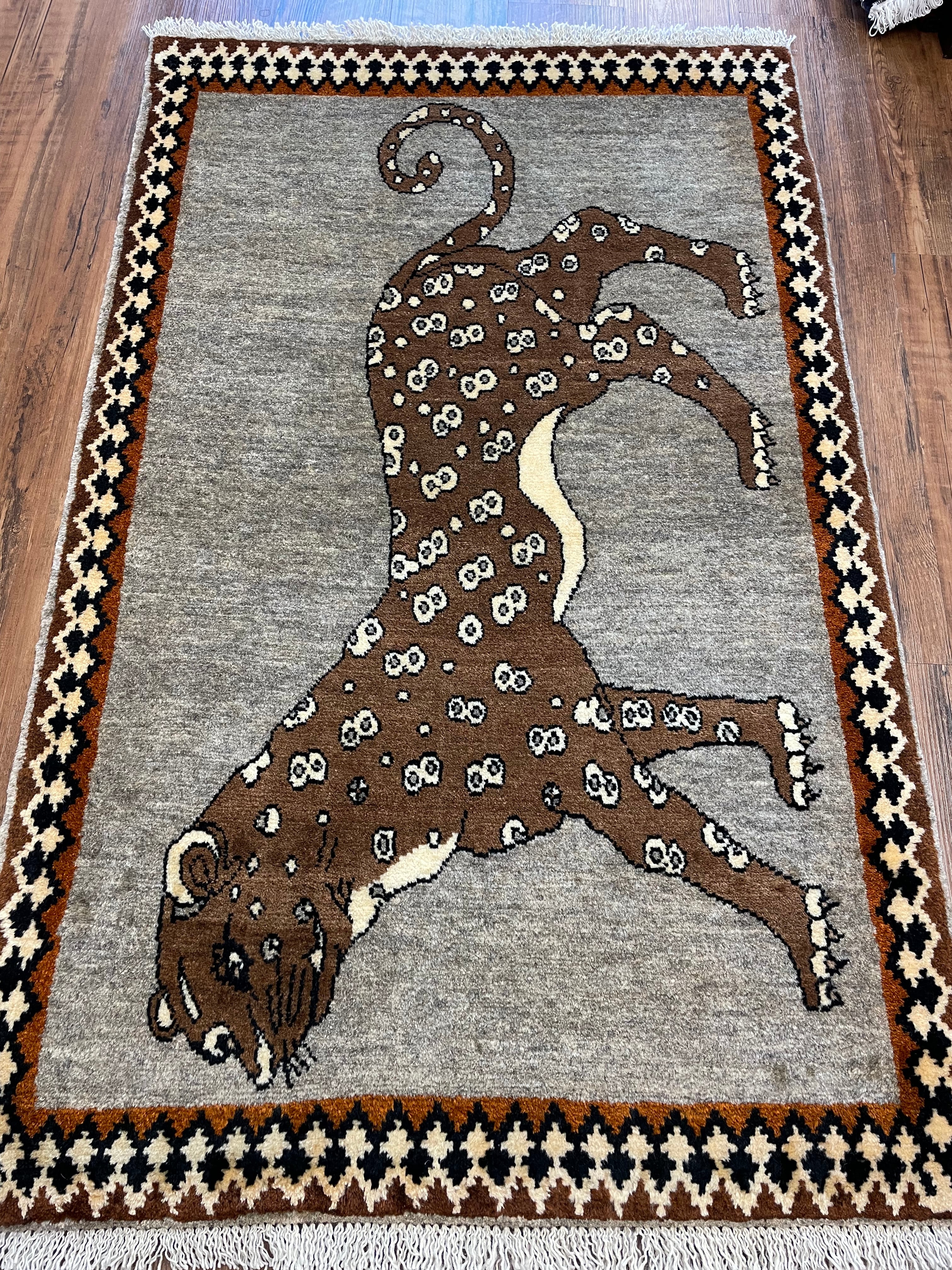 新品 ペルシャ絨毯 手織り ヤラメ ヒョウ柄 130×82cm ウール